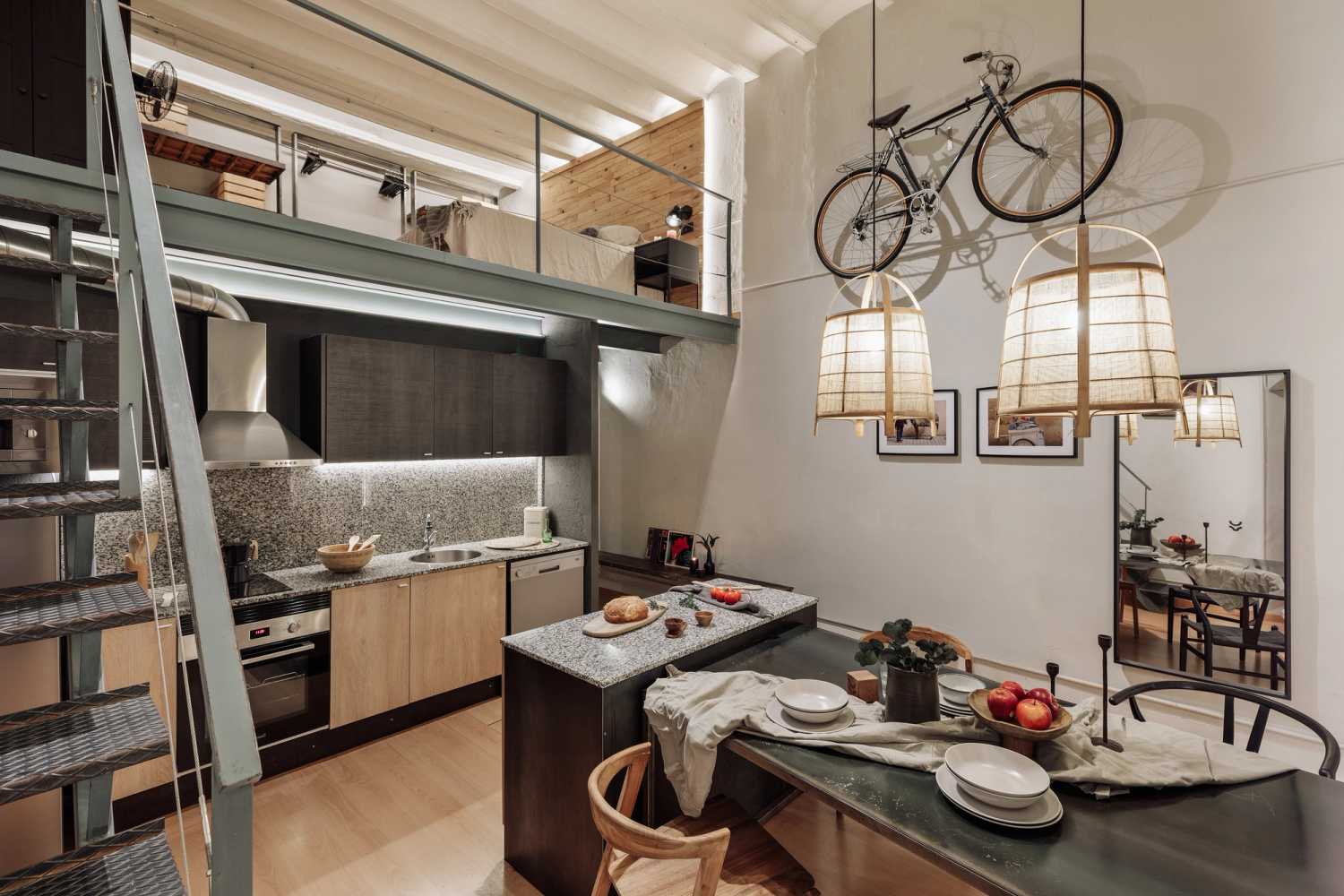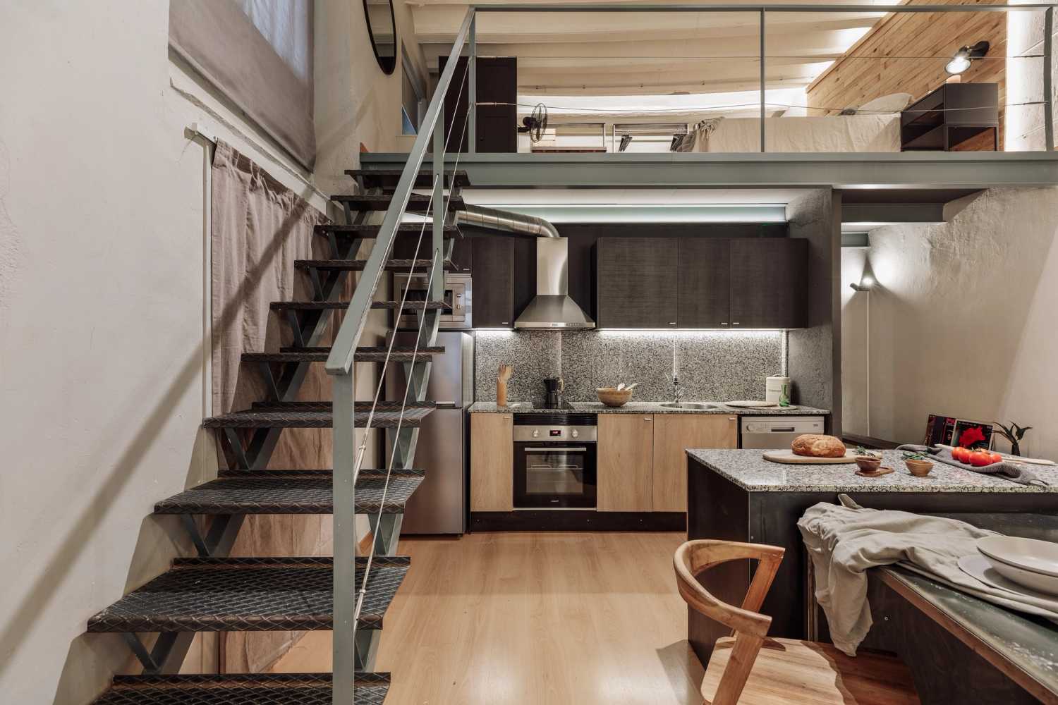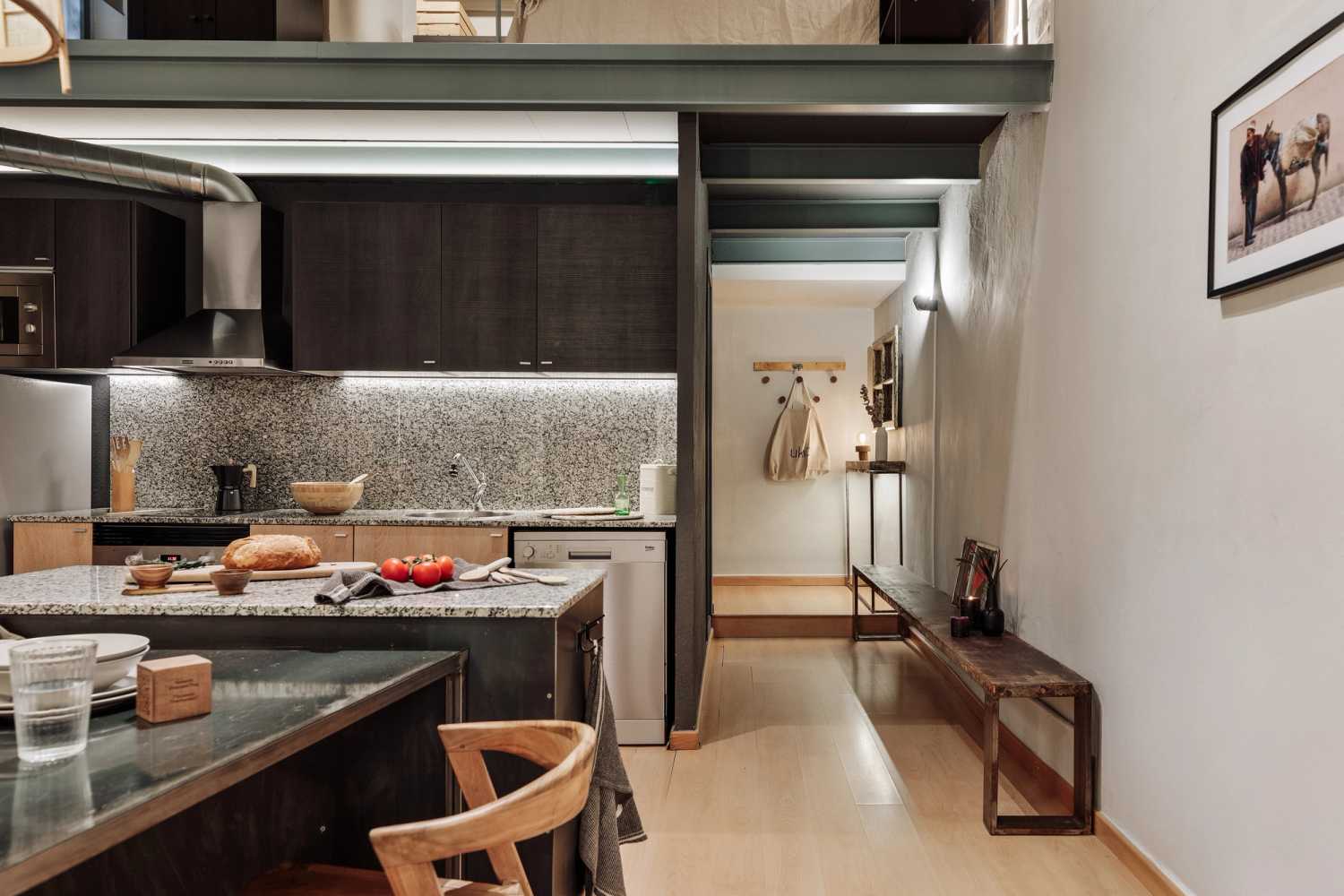 Al entrar en el apartamento encontrará una cocina recién renovada, totalmente equipada y con todos los electrodomesticos modernos. La cocina de planta abierta junto con los techos altos se suma a la grandiosidad del espacio. El salón está diseñado para poder relajarse con iluminación ambiental y un pequeño balcón exterior ofrece aire fresco y viene con una pequeña mesa. La bicicleta colgante y los acabados metálicos logran un diseño más industrial, yuxtapuesto con la vitalidad de las plantas.