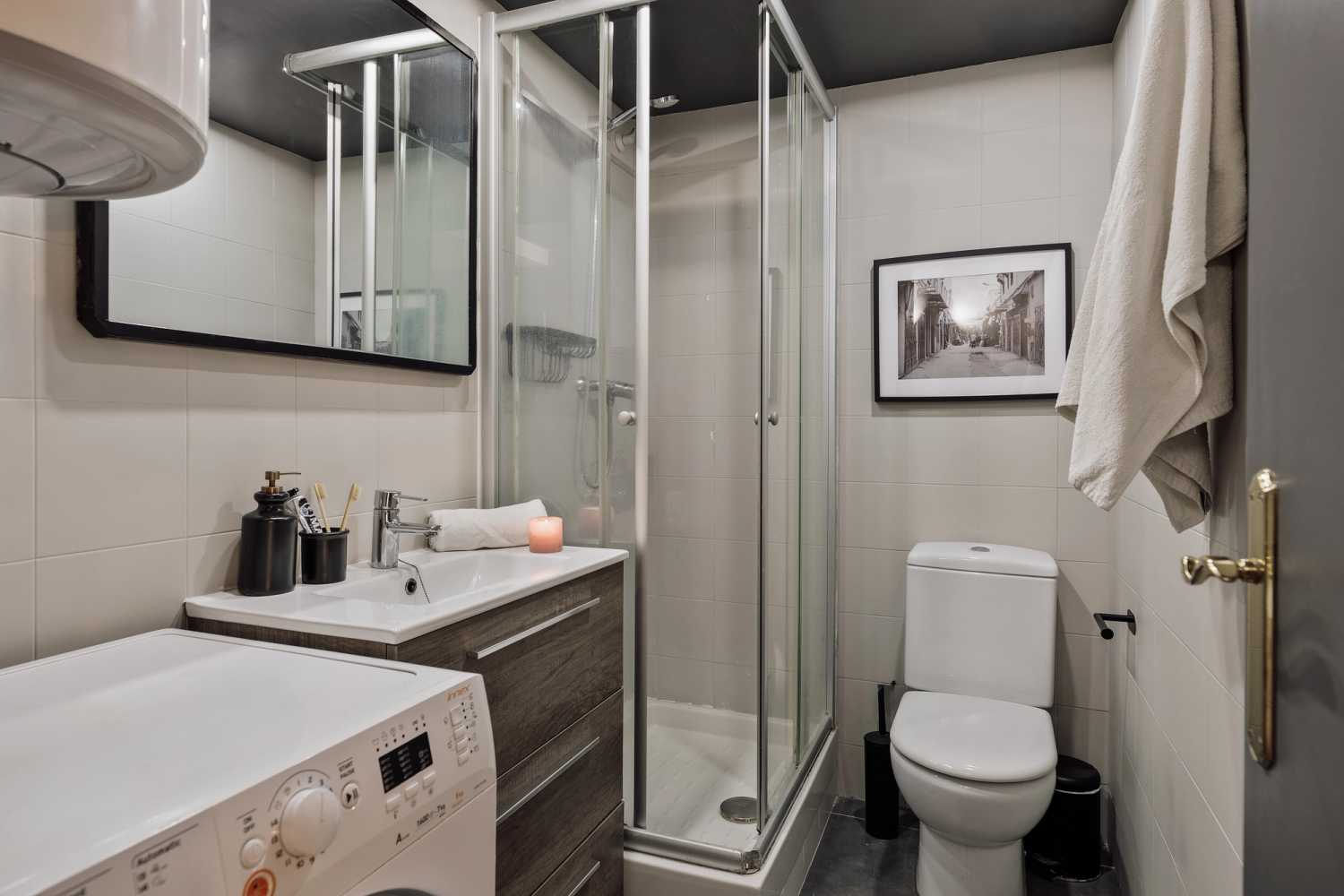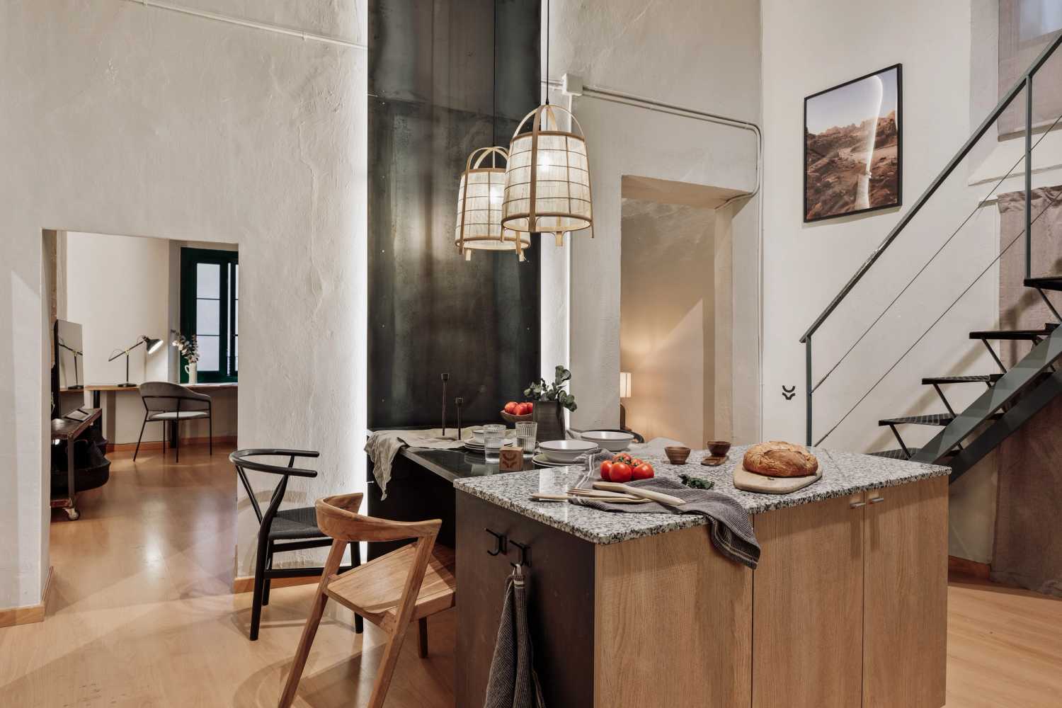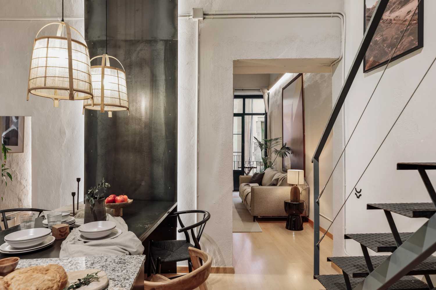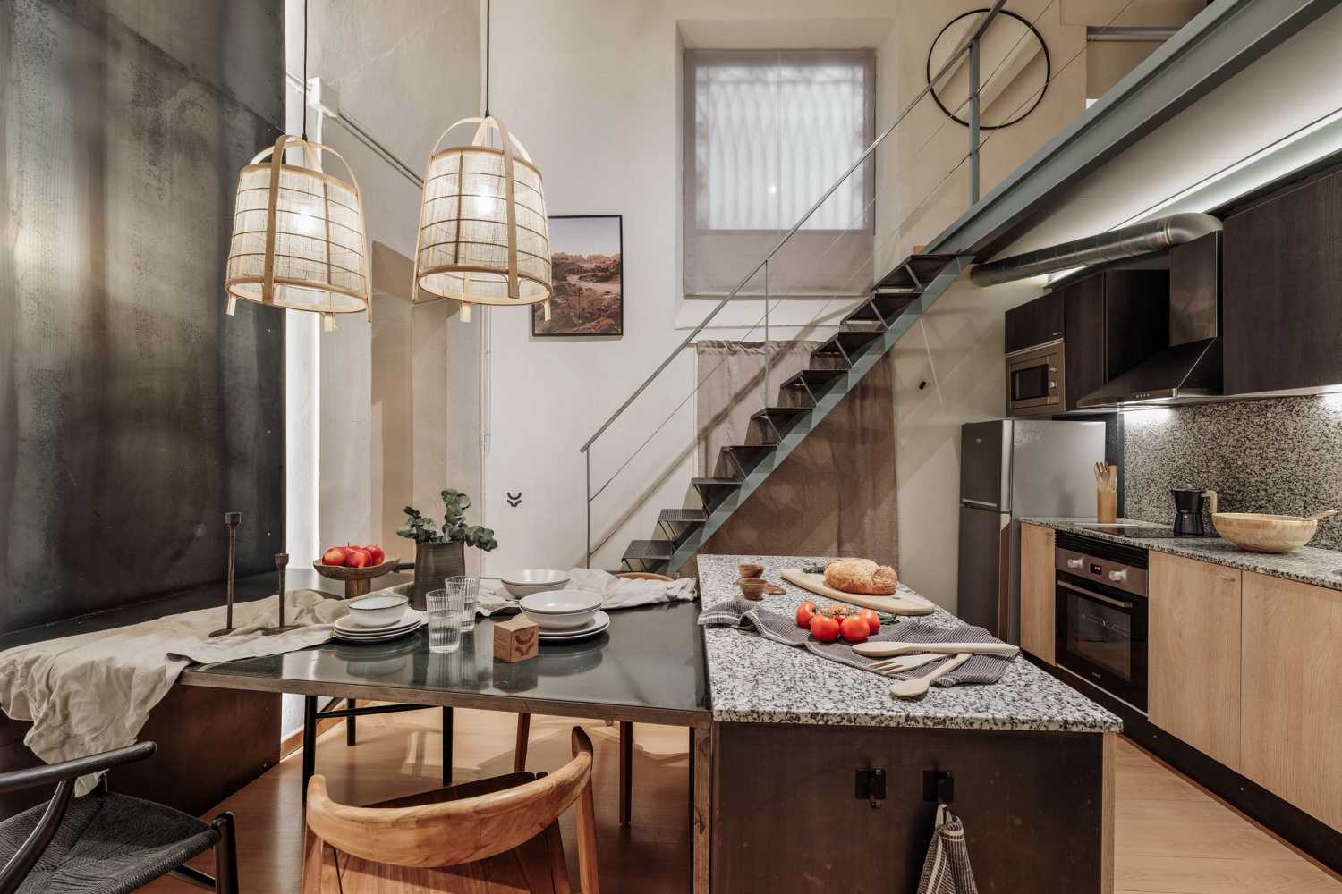 Al entrar en el apartamento encontrará una cocina recién renovada, totalmente equipada y con todos los electrodomesticos modernos. La cocina de planta abierta junto con los techos altos se suma a la grandiosidad del espacio. El salón está diseñado para poder relajarse con iluminación ambiental y un pequeño balcón exterior ofrece aire fresco y viene con una pequeña mesa. La bicicleta colgante y los acabados metálicos logran un diseño más industrial, yuxtapuesto con la vitalidad de las plantas.