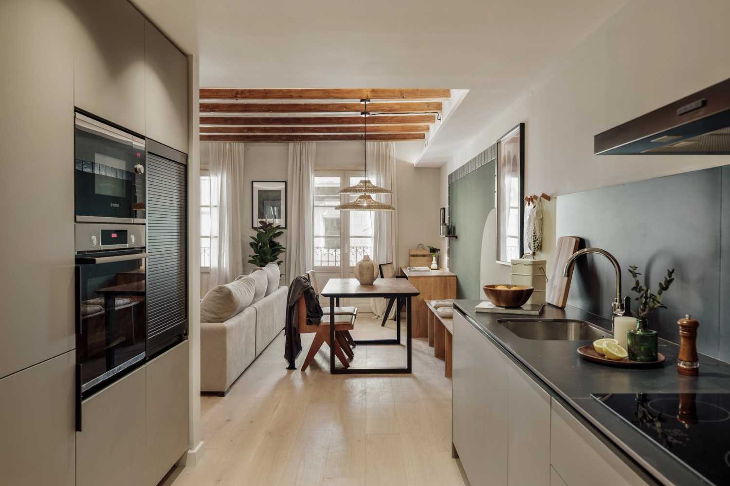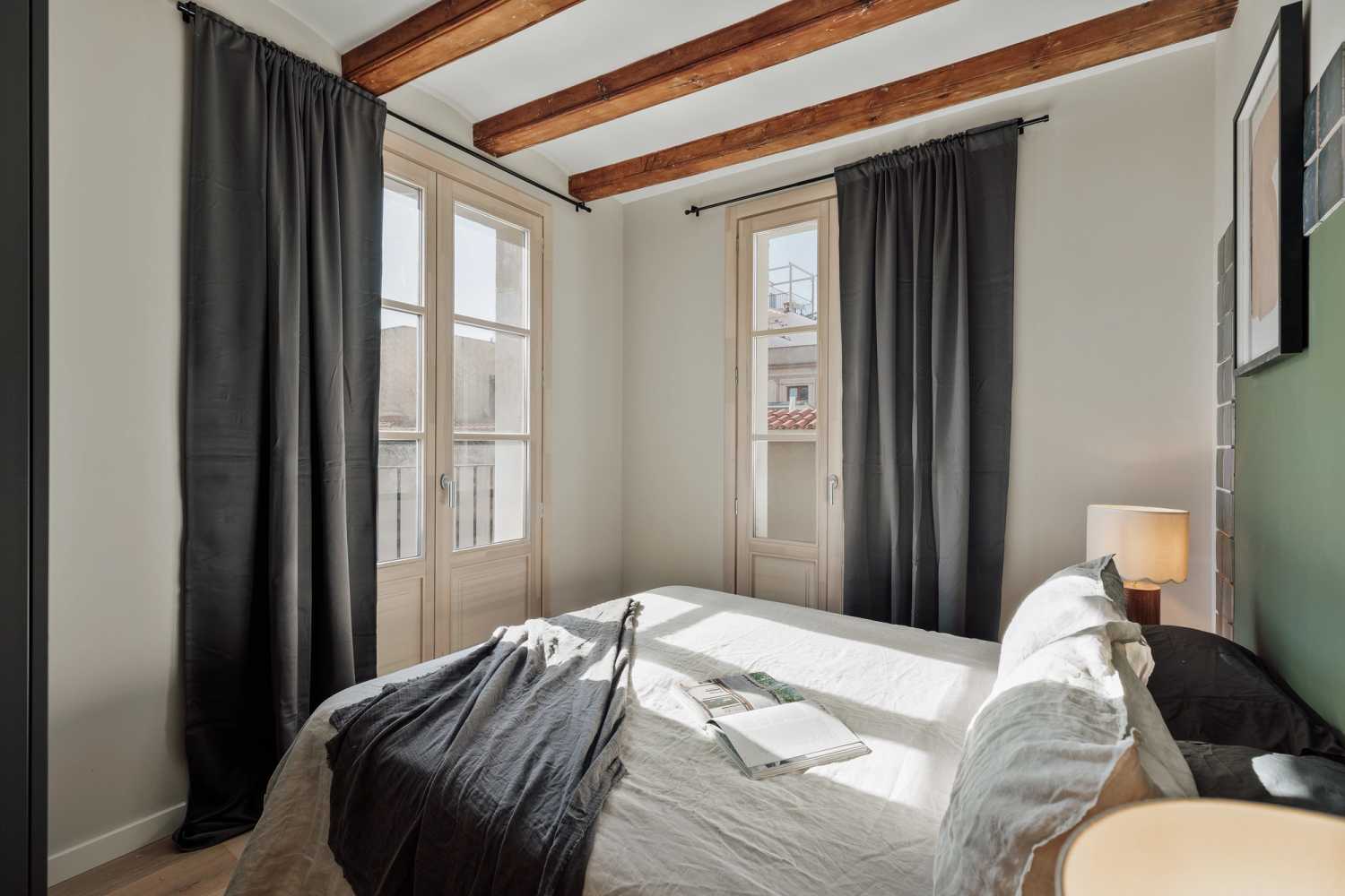 Espectacular apartamento en la calle Portal Nou, con 2 dormitorios y 2 baños. La cocina está equipada con electrodomésticos y menaje. Las camas están equipadas con ropa de cama suave, ideal para un buen descanso nocturno. El apartamento dispone de 2 baños equipados con ducha completa y toallas. Además, el apartamento está equipado con WiFi de alta velocidad y SmartTV. El apartamento dispone de lavadora, lavavajillas y aire acondicionado para su máximo confort.