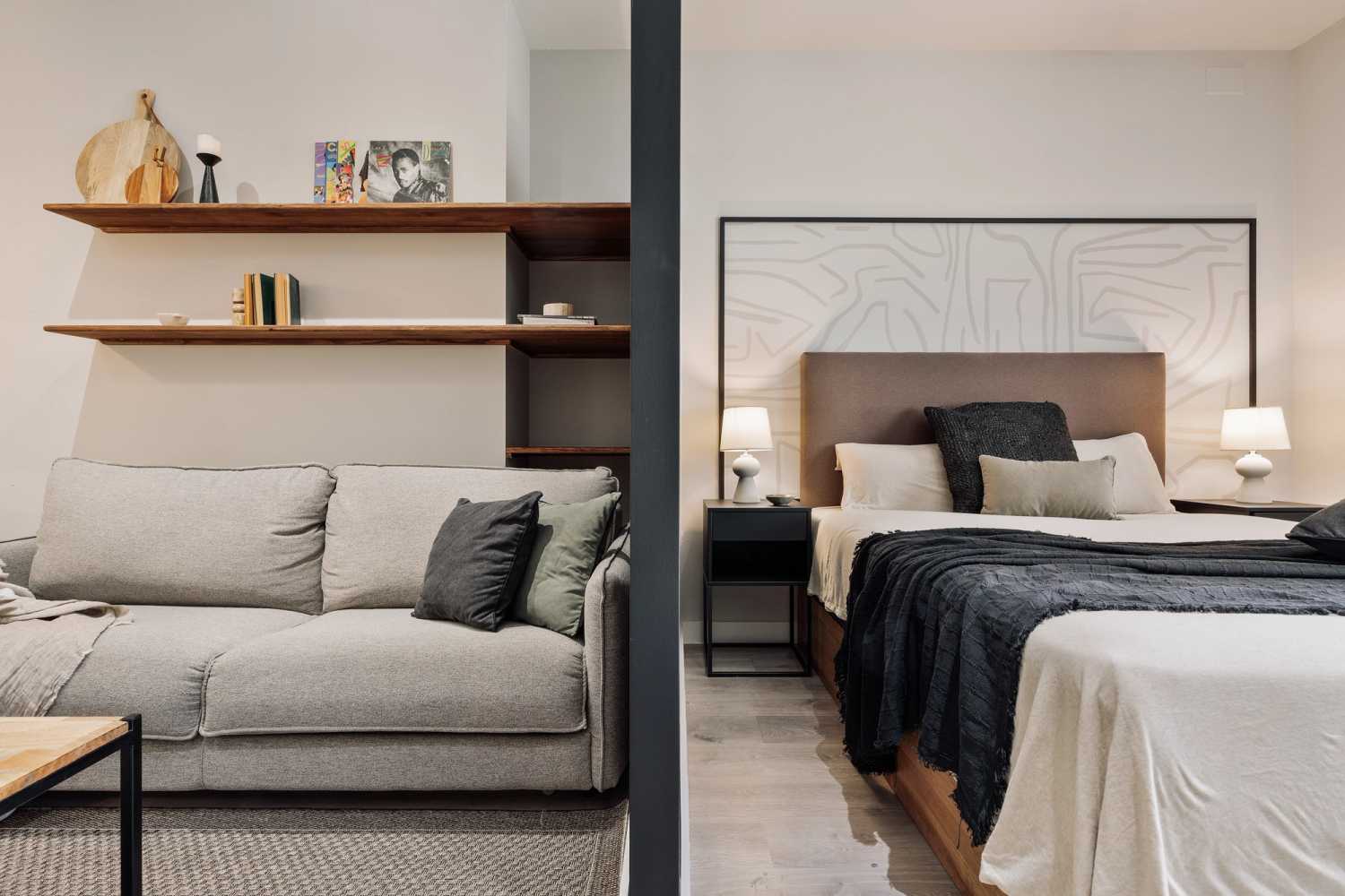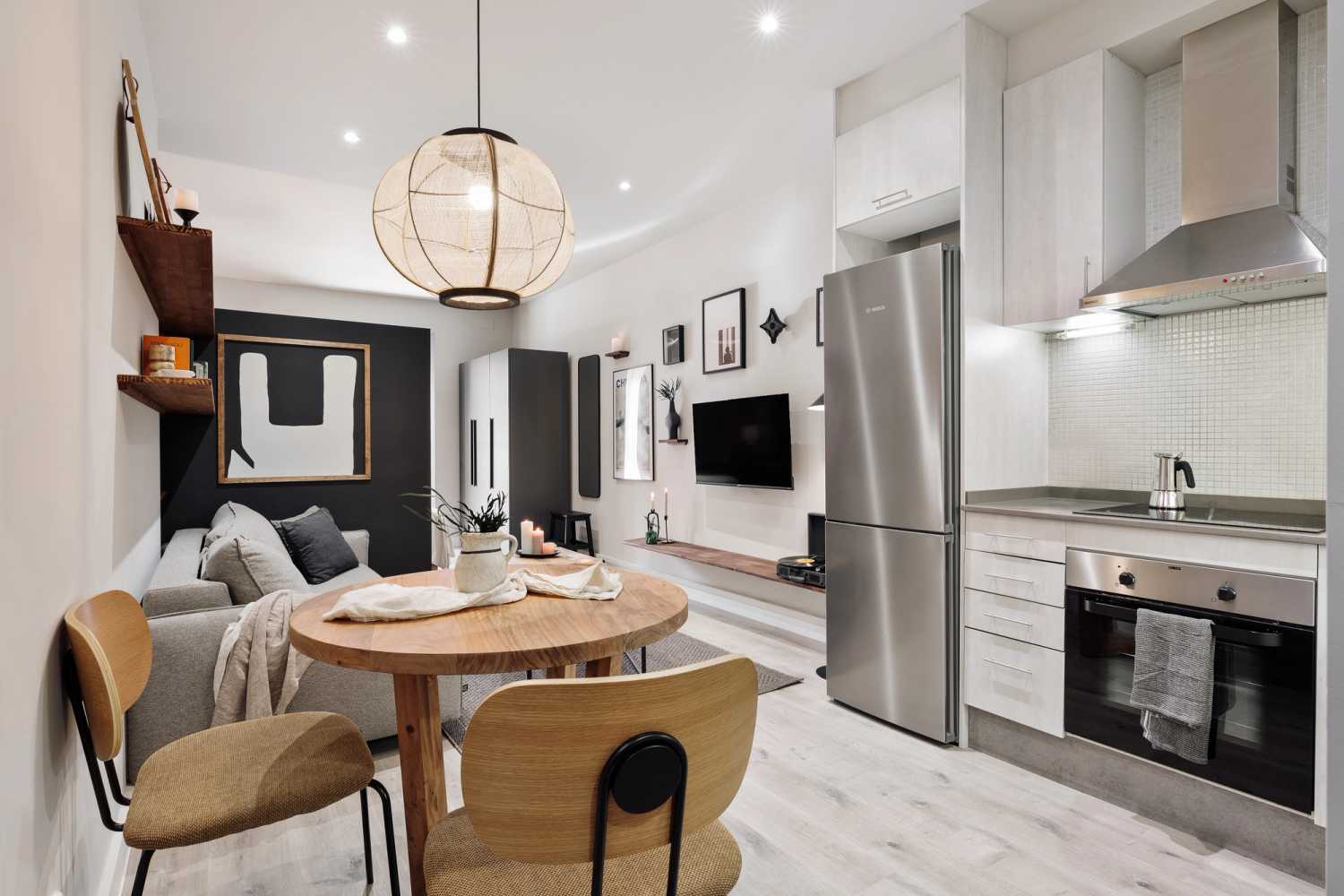 *Nuestro equipo de diseño interno selecciona de forma experta todos los muebles y la decoración de los apartamentos para garantizar el máximo nivel de calidad y comodidad. Como parte del mantenimiento constante de la casa, las mejoras de diseño y la puesta en escena fotográfica, puede haber pequeñas diferencias entre el mobiliario que se ve en las fotos y el que encontrará en el apartamento. Consulte con un agente de ventas para cualquier pregunta o duda.