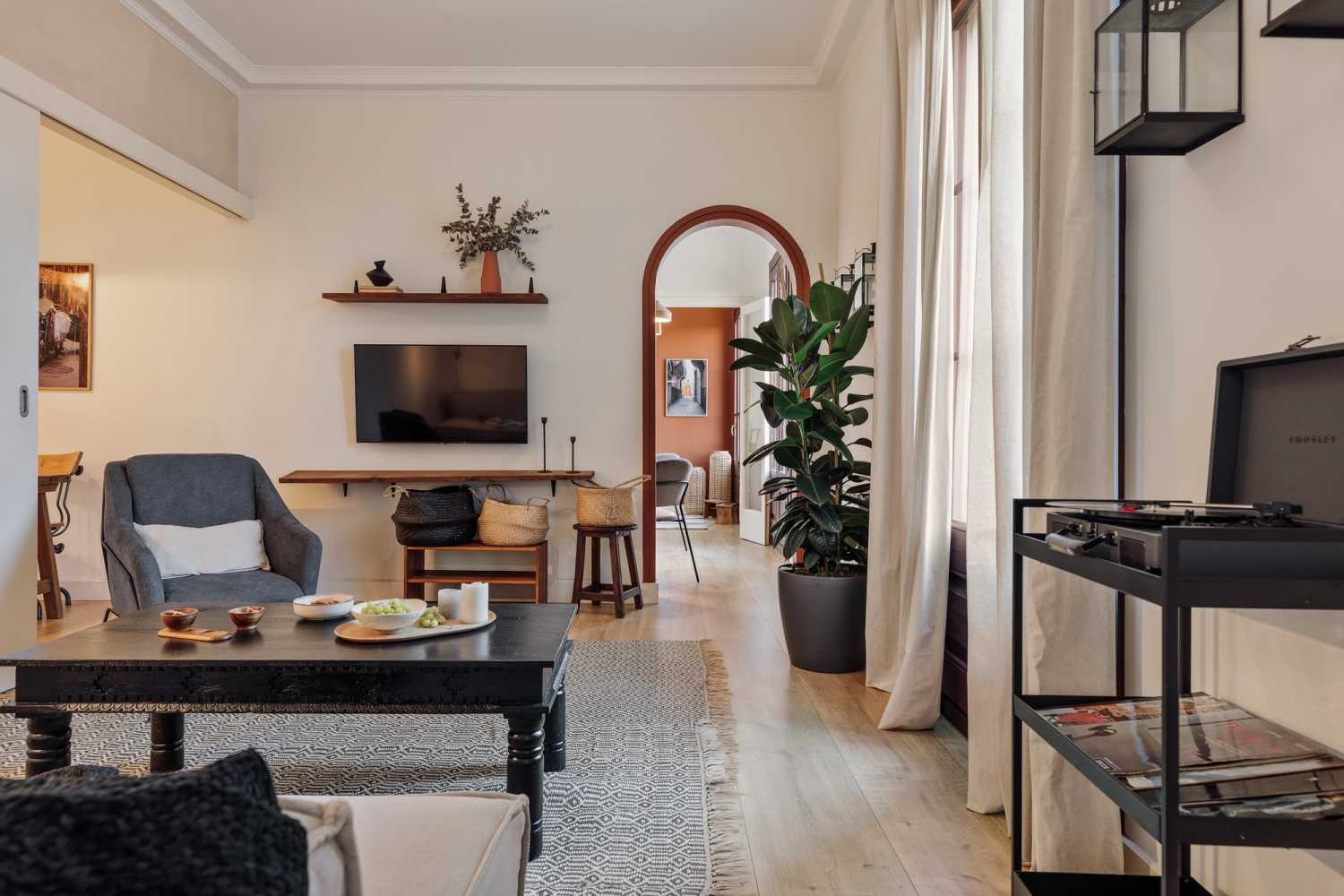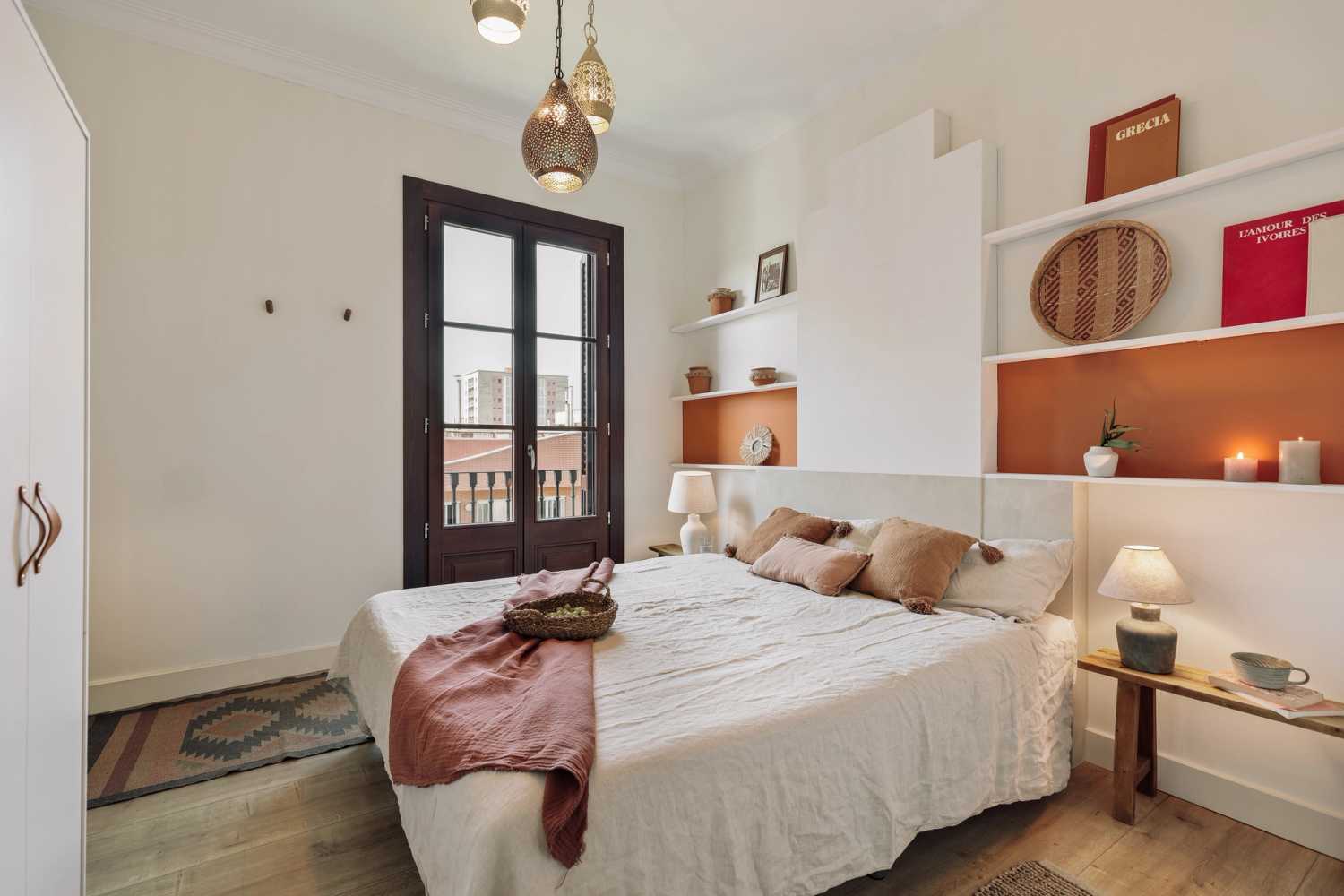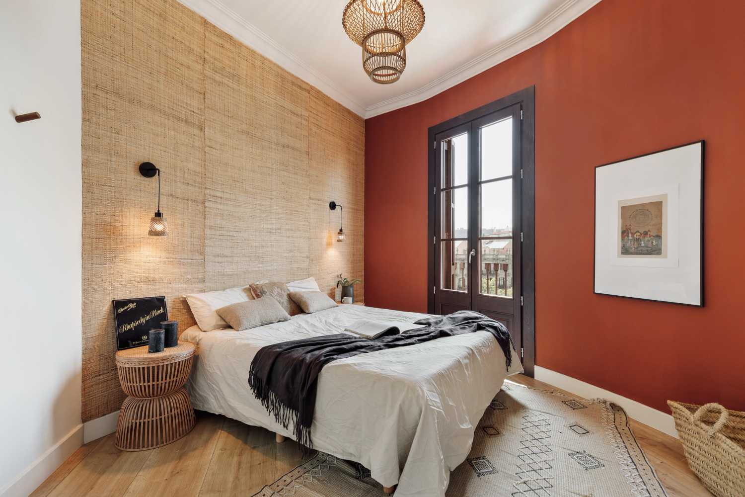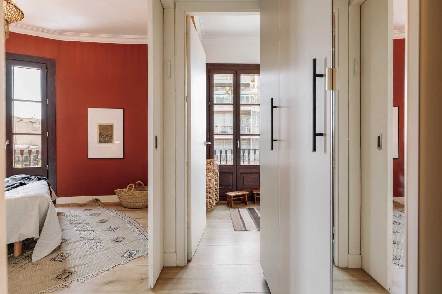 Este piso de dos dormitorios y dos cuartos de baño, ubicado en Eixample Dreta, destaca por sus colores fuertes y la decoración en madera de sus paredes. Adéntrese en él y diríjase a su izquierda para encontrar un primer dormitorio con cama de matrimonio y cuarto de baño ensuite con ducha completa y juego de toallas nuevas. Dispone de un pequeño balcón donde poder tomar su café de la mañana.
