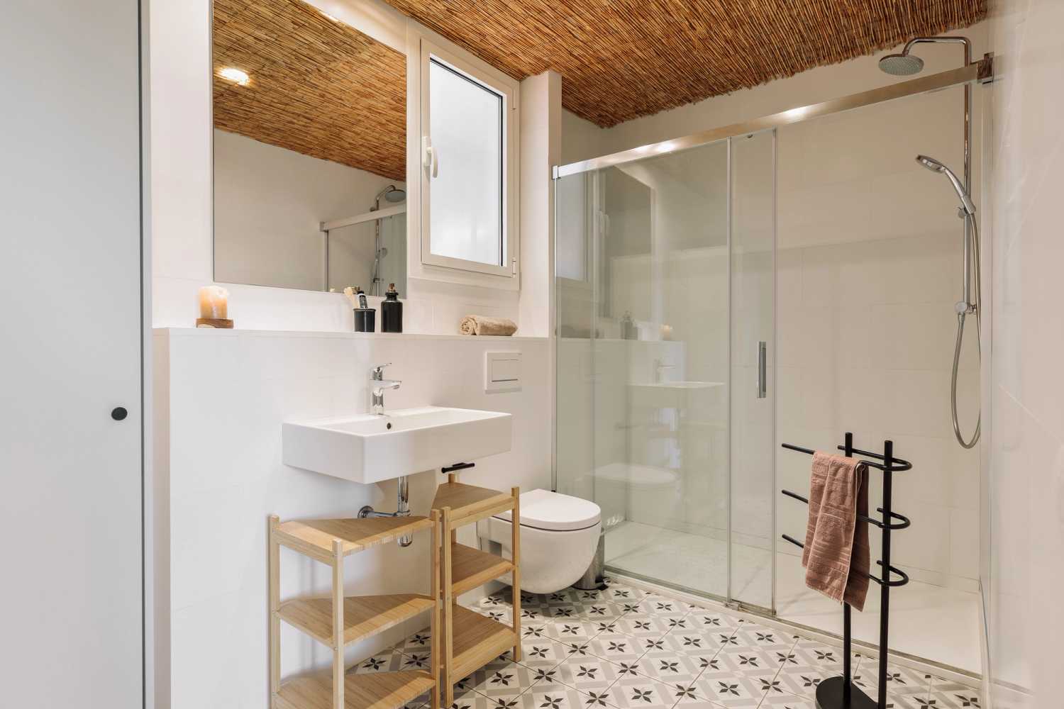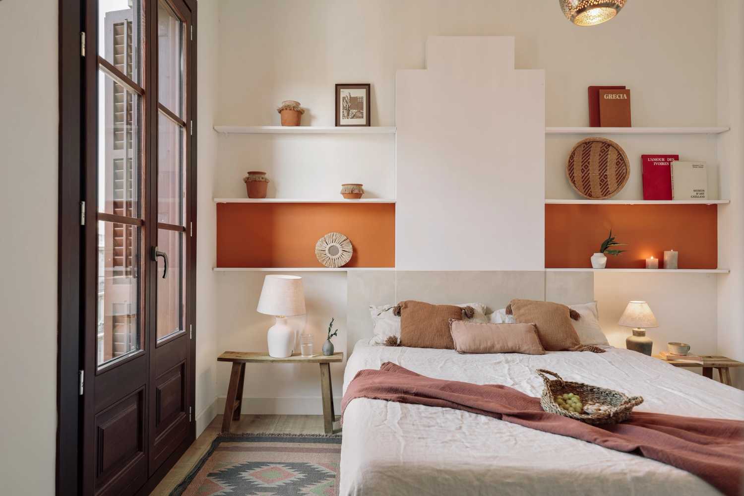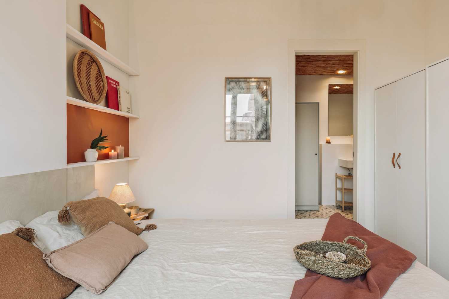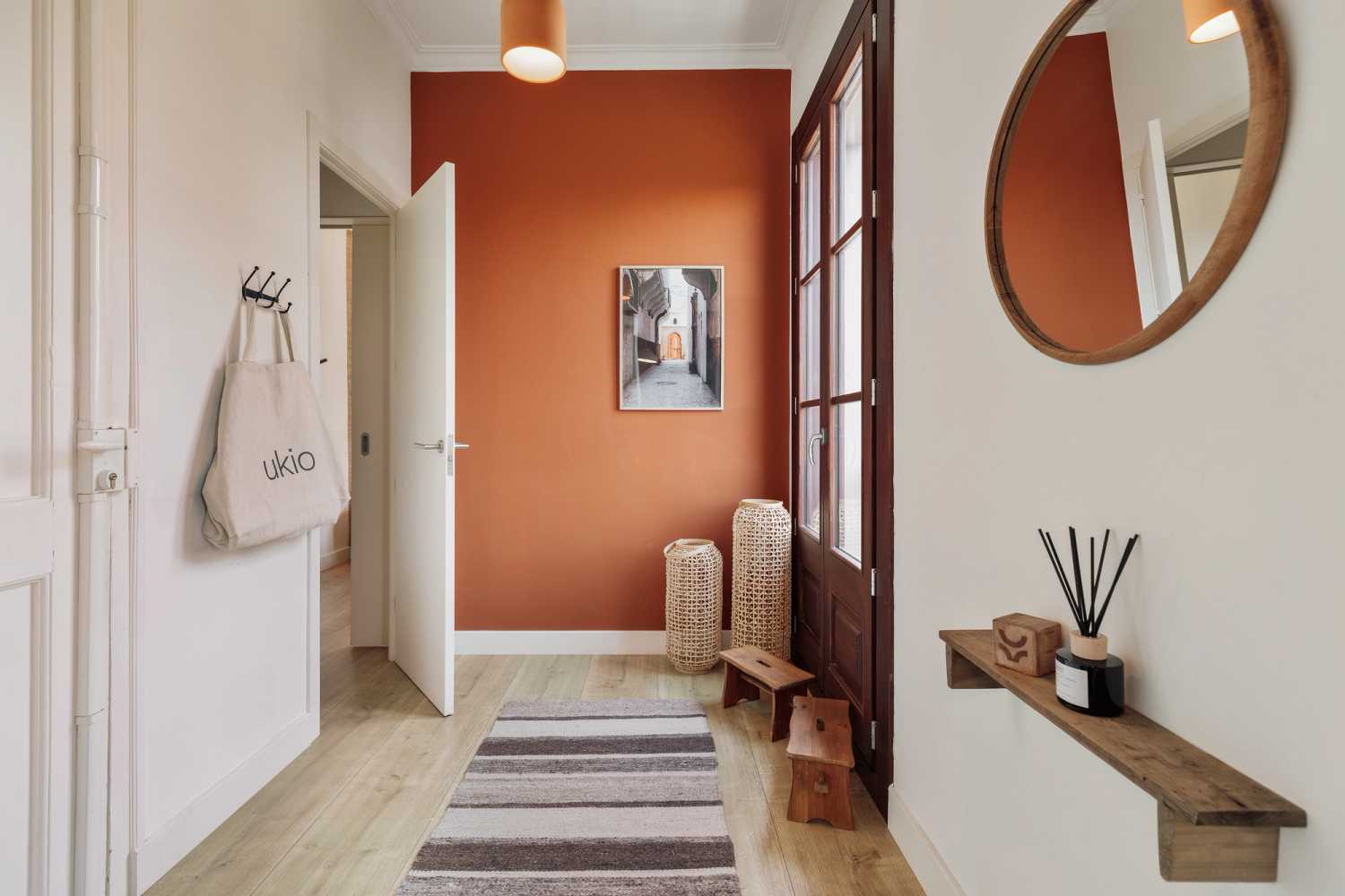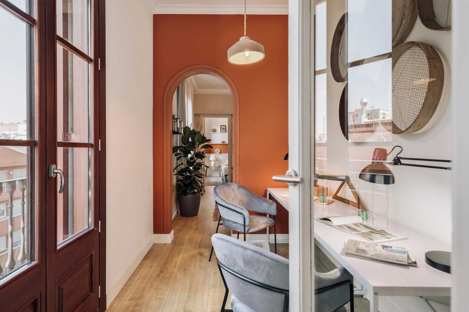 Este piso de dos dormitorios y dos cuartos de baño, ubicado en Eixample Dreta, destaca por sus colores fuertes y la decoración en madera de sus paredes. Adéntrese en él y diríjase a su izquierda para encontrar un primer dormitorio con cama de matrimonio y cuarto de baño ensuite con ducha completa y juego de toallas nuevas. Dispone de un pequeño balcón donde poder tomar su café de la mañana.