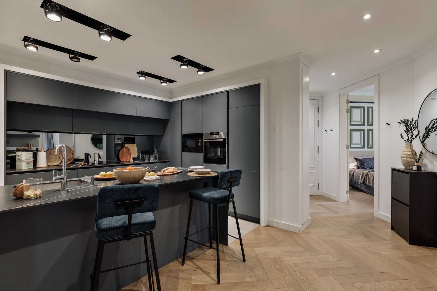 *Nuestro equipo de diseño interno selecciona de forma experta todos los muebles y la decoración de los apartamentos para garantizar el máximo nivel de calidad y comodidad. Como parte del mantenimiento constante de la casa, las mejoras de diseño y la puesta en escena fotográfica, puede haber pequeñas diferencias entre el mobiliario que se ve en las fotos y el que encontrará en el apartamento. Consulte con un agente de ventas para cualquier pregunta o duda.
