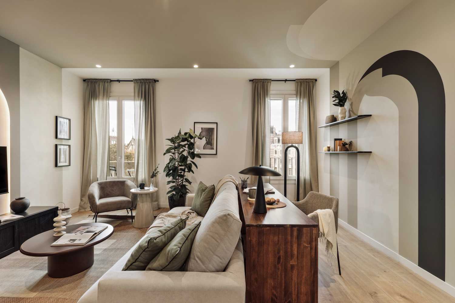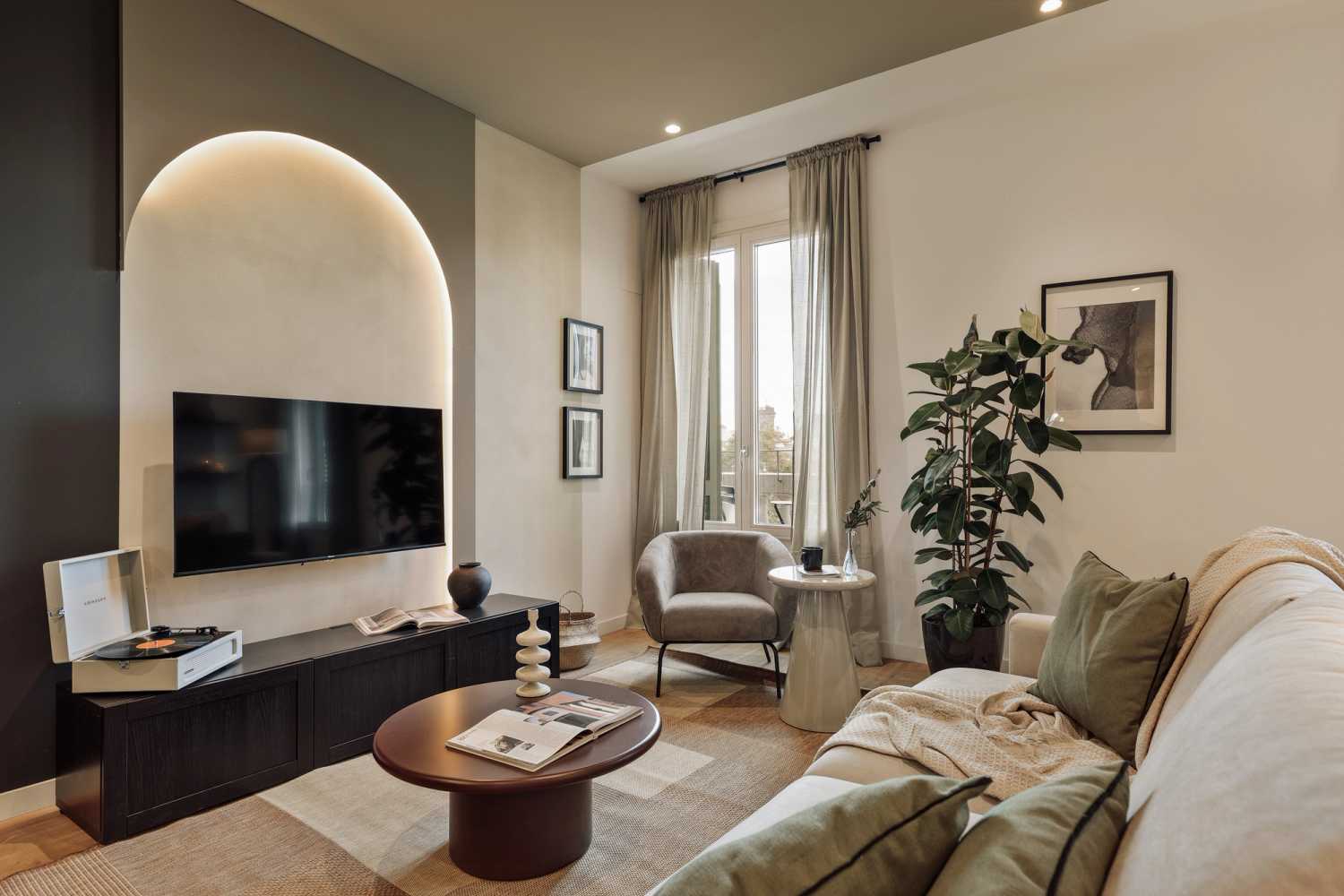 *Nuestro equipo de diseño interno selecciona cuidadosamente todos los muebles y la decoración de los apartamentos para garantizar el máximo nivel de calidad y comodidad. Como parte del mantenimiento constante de las viviendas, las mejoras de diseño y la puesta en escena fotográfica, puede haber pequeñas diferencias entre el mobiliario que se ve en las fotos y el que se encuentra en el apartamento. Si tiene alguna pregunta o duda, consulte con un agente de ventas.