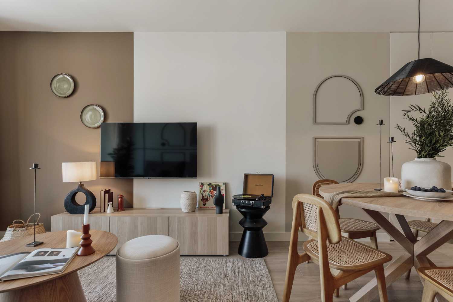 *Nuestro equipo de diseño interno selecciona de forma experta todos los muebles y la decoración de los apartamentos para garantizar el máximo nivel de calidad y comodidad. Como parte del mantenimiento constante de la casa, las mejoras de diseño y la puesta en escena fotográfica, puede haber pequeñas diferencias entre el mobiliario que se ve en las fotos y el que encontrará en el apartamento. Consulte con un agente de ventas para cualquier pregunta o duda.