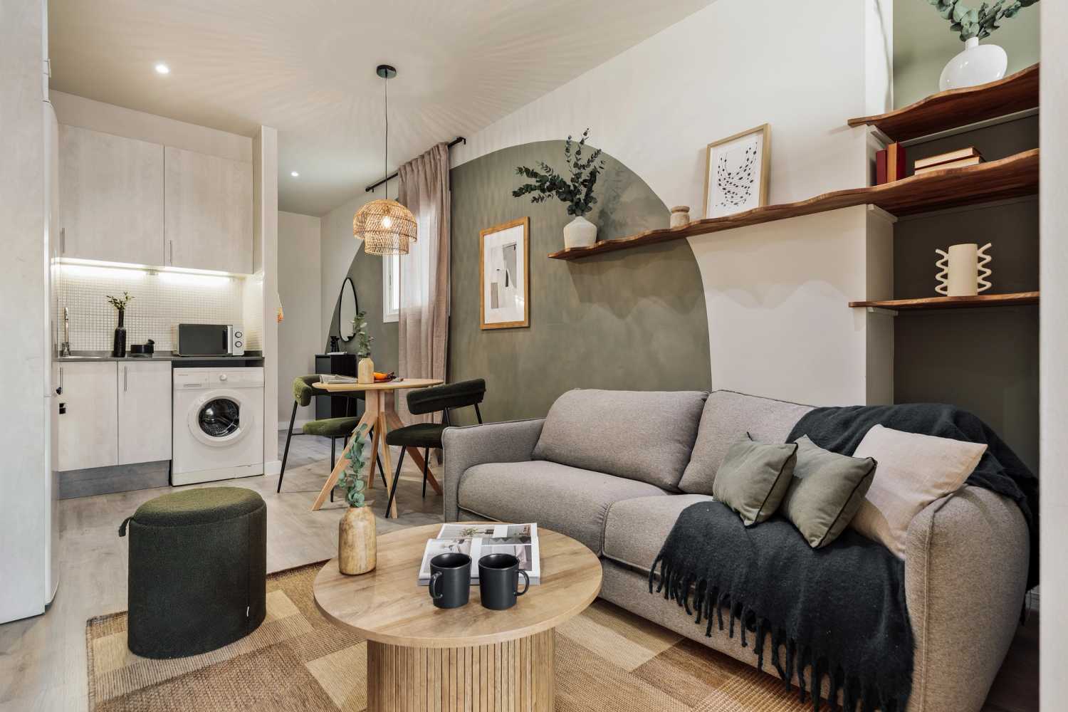 Espectacular estudio en la calle Comte Borrell, con salón con sofá cama y 1 baño. La cocina está equipada con electrodomésticos y menaje. Las camas están equipadas con ropa de cama suave, ideal para un buen descanso nocturno. El apartamento dispone de 1 baño equipado con ducha completa y toallas. Además, el apartamento está equipado con WiFi de alta velocidad y SmartTV. El apartamento dispone de lavadora y aire acondicionado para su máximo confort.