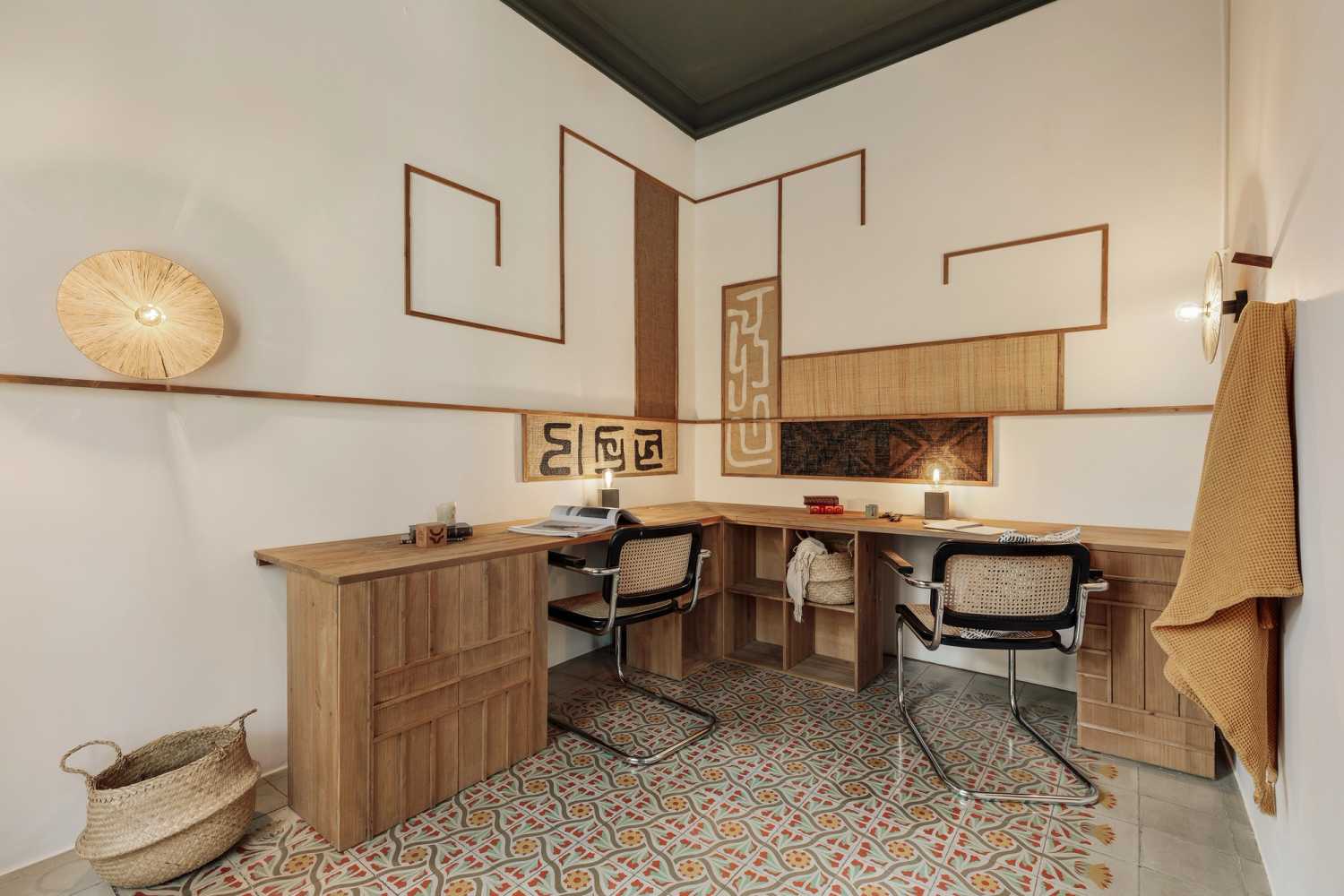 Justo después de la sala de estar se encuentra la oficina con dos puestos de trabajo.