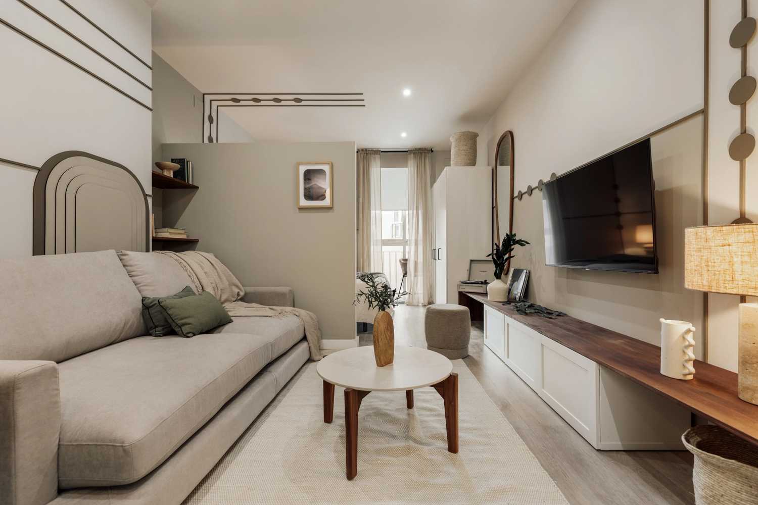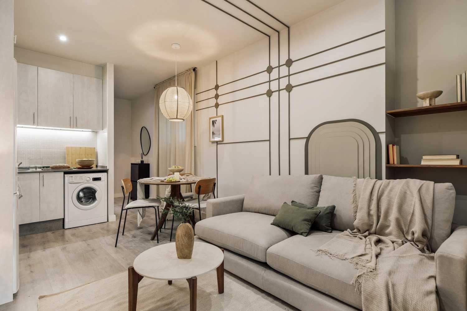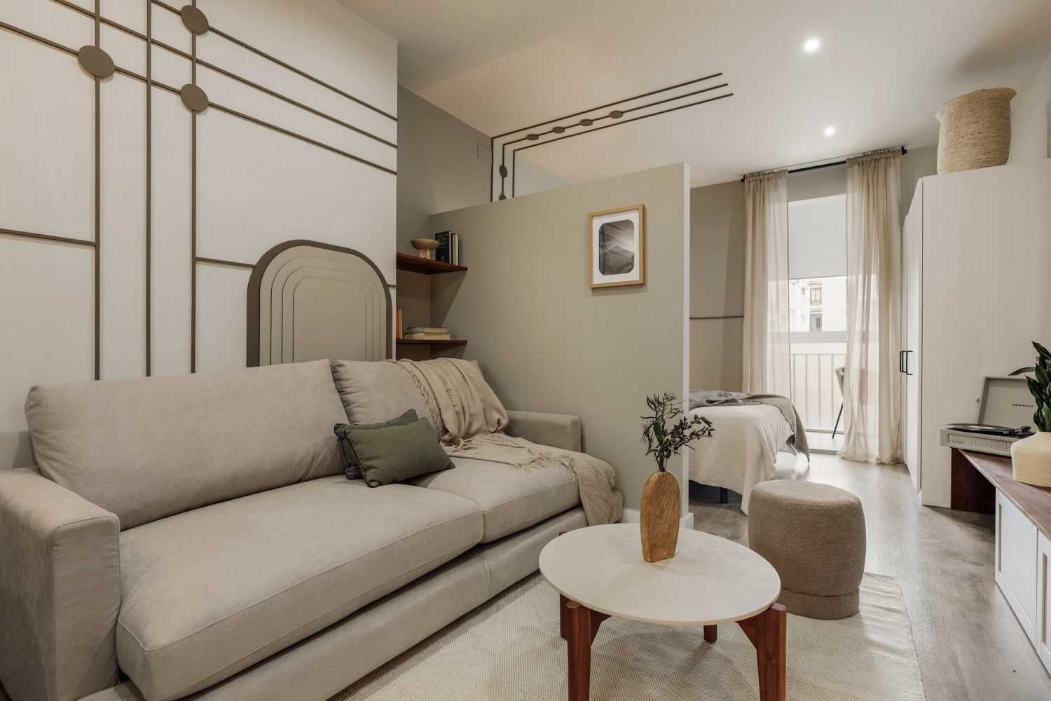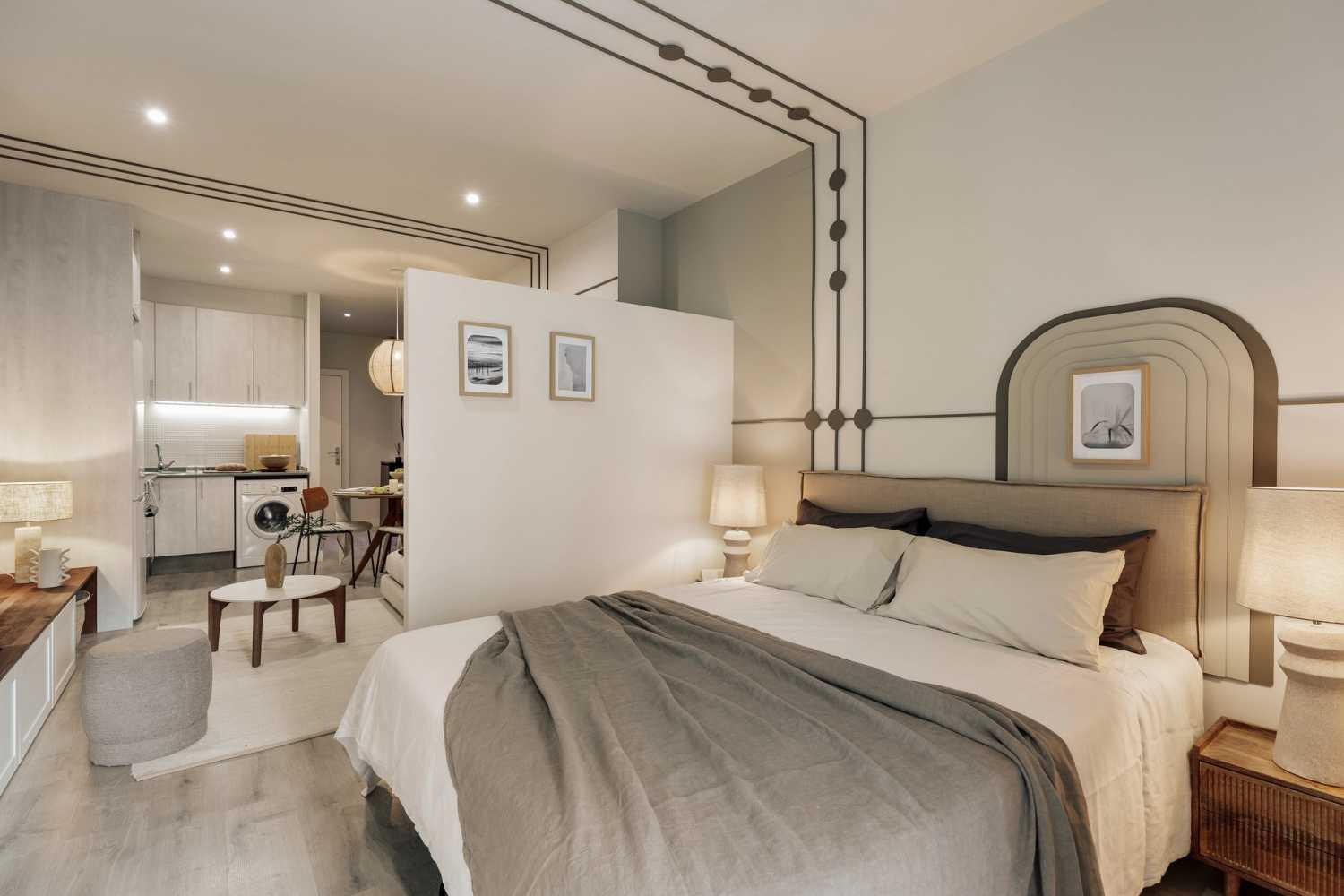 *Nuestro equipo de diseño interno selecciona de forma experta todos los muebles y la decoración de los apartamentos para garantizar el máximo nivel de cadad y comodidad. Como parte del mantenimiento constante de la casa, las mejoras de diseño y la puesta en escena fotográfica, puede haber pequeñas diferencias entre el mobiliario que se ve en las fotos y el que encontrará en el apartliamento. Consulte con un agente de ventas para cualquier pregunta o duda.
