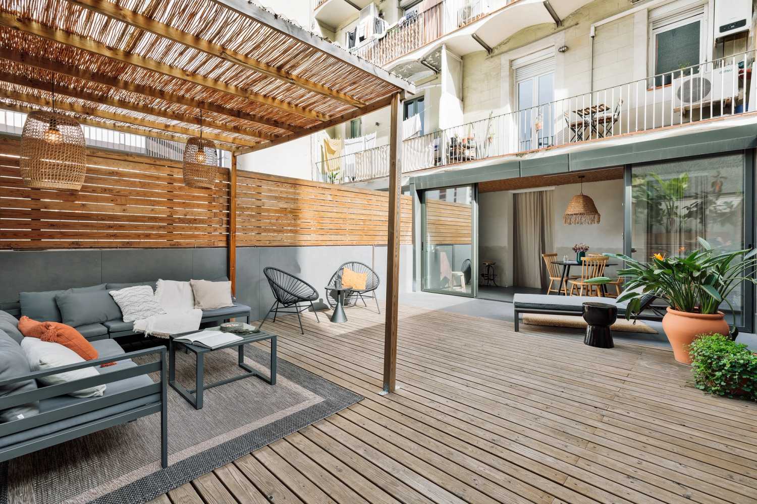 Este elegante apartamento redecorado cuenta con una gran terraza interior que le permitirá desconectar de las calles de la ciudad. Este amplio espacio, con un área estilo *lounge* y una zona de tumbonas está completamente oculta de los vecinos para su total privacidad.