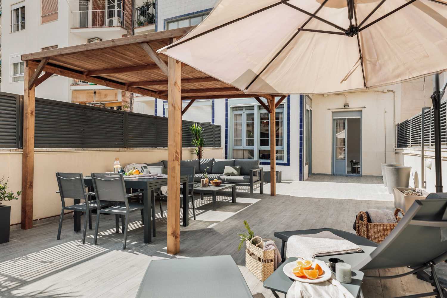 Espectacular apartamento en la calle Còrsega, con 2 dormitorios, un despacho, un aseo y 1 baño. La cocina está equipada con electrodomésticos y menaje. Las camas están equipadas con ropa de cama suave, ideal para un buen descanso nocturno. El apartamento dispone de 1 baño equipado con ducha completa y toallas. El apartamento tiene una terraza de 60 m2. Además, el apartamento está equipado con WiFi de alta velocidad y SmartTV.