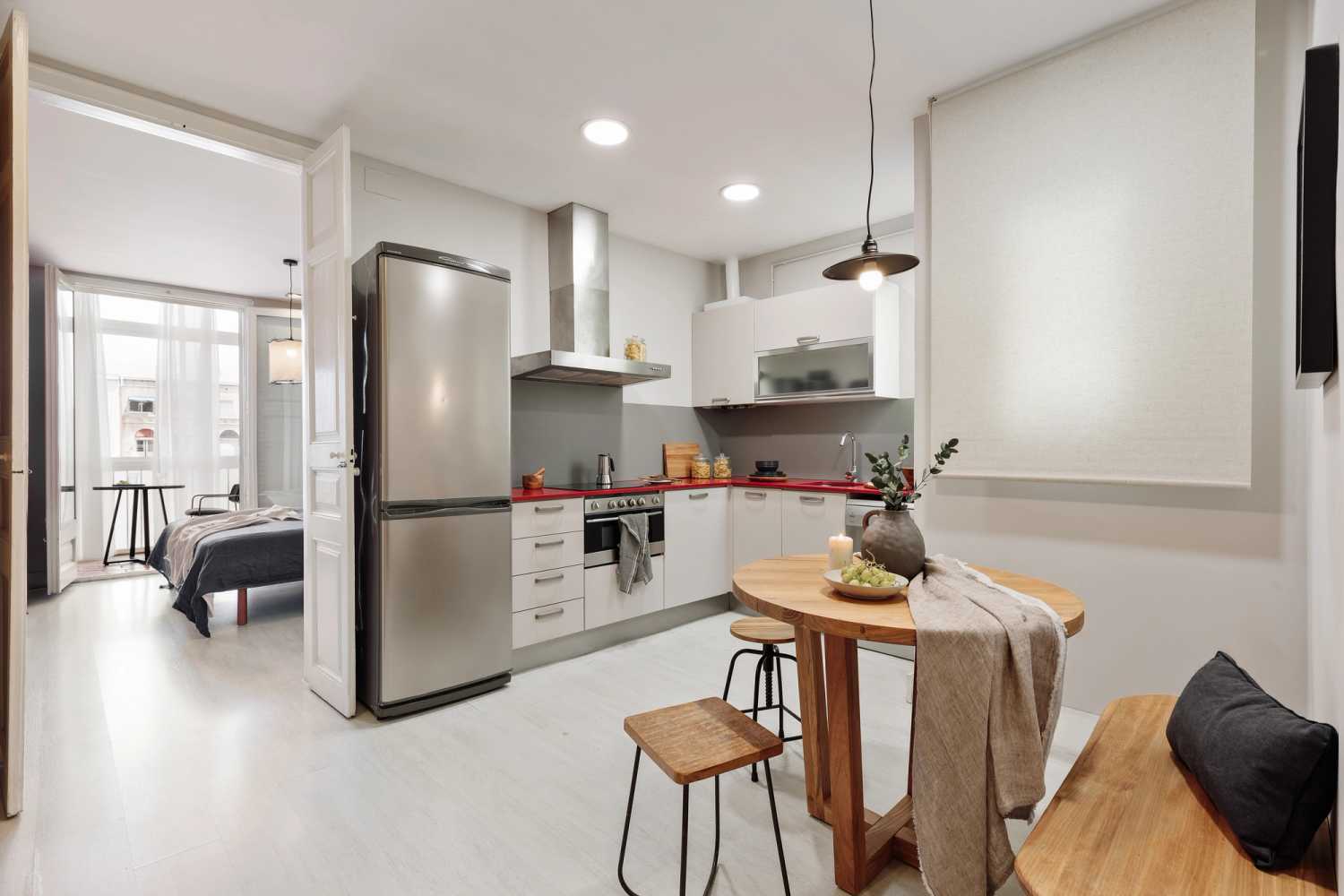 Espectacular piso en Comte Urgell, con 3 dormitorios y 1 baño. La cocina está equipada con electrodomésticos y menaje de última generación. Las camas están equipadas con ropa de cama suave, ideal para un buen descanso nocturno. El apartamento dispone de 1 baño equipado con ducha completa y toallas. Además, el apartamento está equipado con WiFi de alta velocidad y SmartTV.