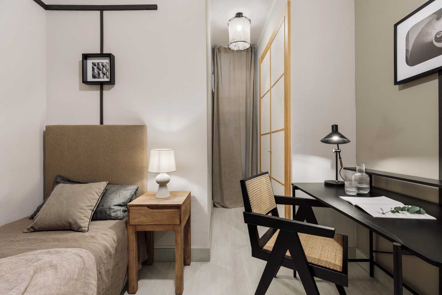 *Nuestro equipo de diseño interno selecciona de forma experta todos los muebles y la decoración de los apartamentos para garantizar el máximo nivel de calidad y comodidad. Como parte del mantenimiento constante de la casa, las mejoras de diseño y la puesta en escena fotográfica, puede haber pequeñas diferencias entre el mobiliario que se ve en las fotos y el que encontrará en el apartamento. Consulte con un agente de ventas para cualquier pregunta o duda.