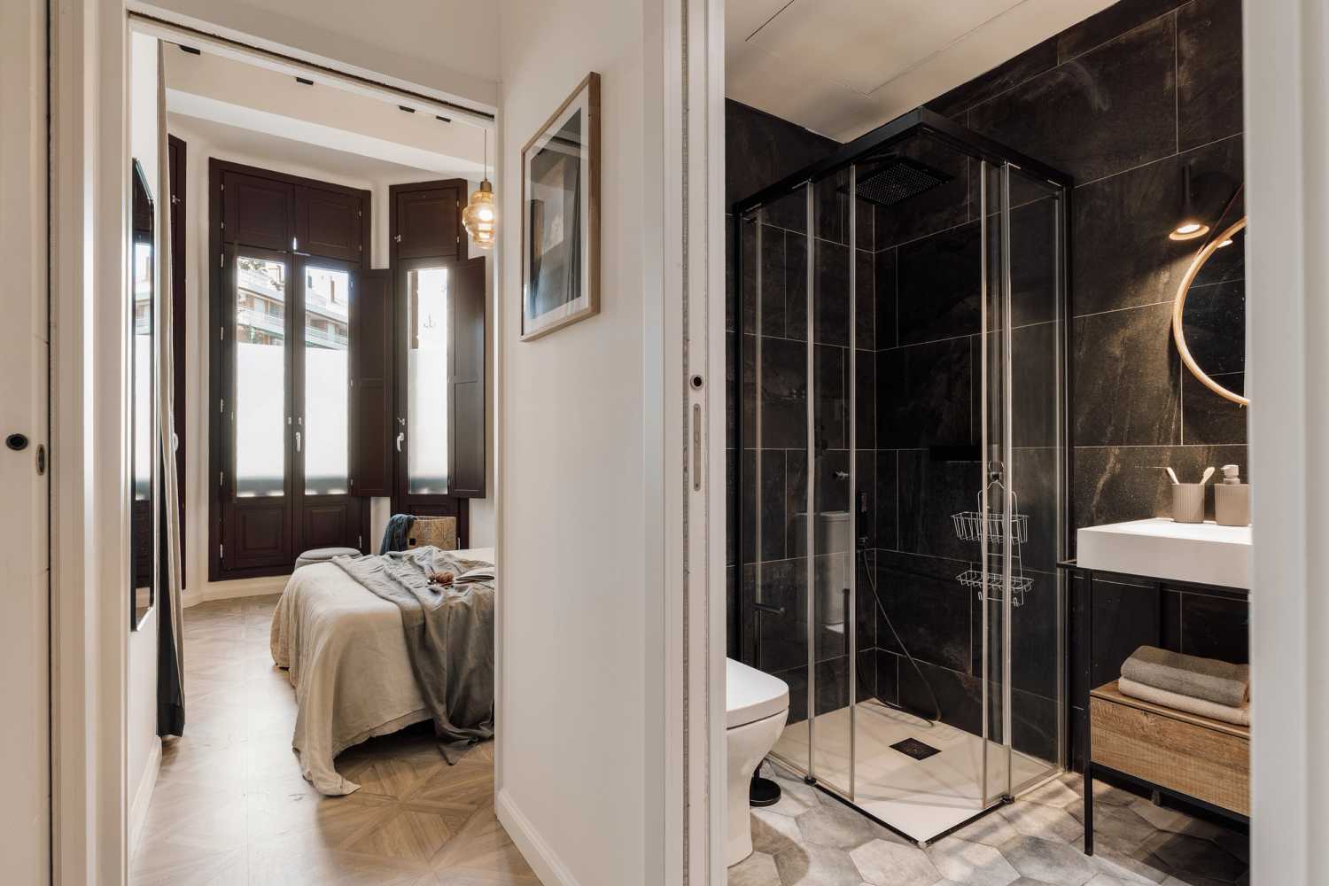 Espectacular apartamento en la calle Ronda Sant Antoni, con 1 dormitorio y 1 cuarto de baño. La cocina está equipada con electrodomésticos y menaje. Las camas cuentan con ropa de cama mullida, ideal para un buen descanso nocturno. El apartamento dispone de 1 cuarto de baño equipado con ducha completa y toallas. Además, el apartamento cuenta con wifi de alta velocidad y Smart TV.