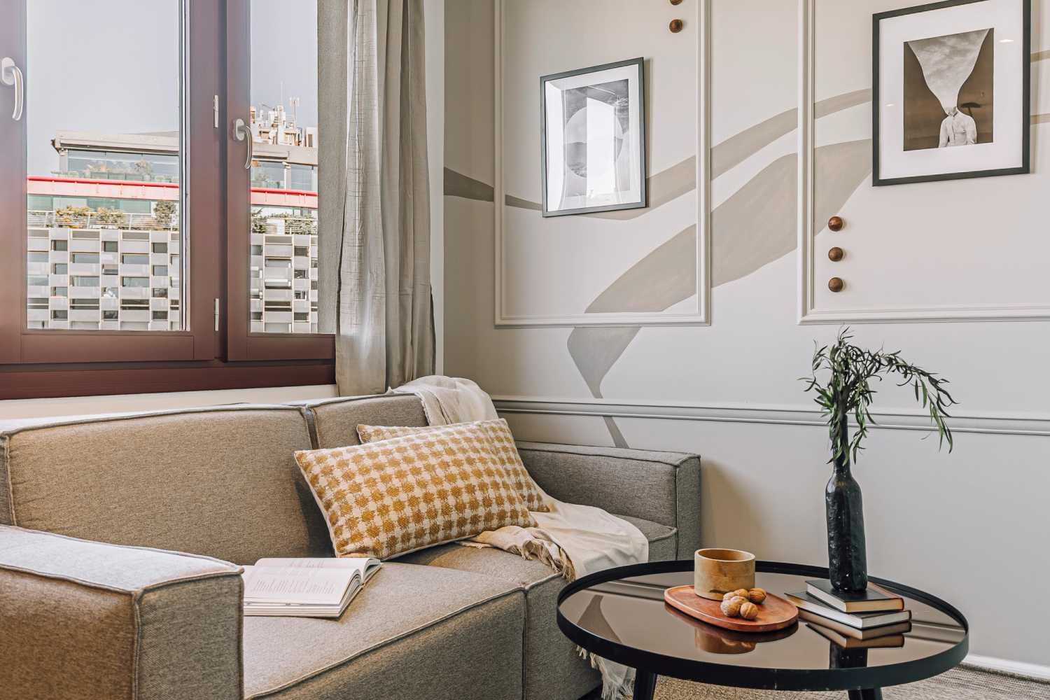 *Nuestro equipo de diseño interno selecciona cuidadosamente todos los muebles y la decoración de los apartamentos para garantizar el máximo nivel de calidad y comodidad. Como parte del mantenimiento constante de las viviendas, las mejoras de diseño y la puesta en escena fotográfica, puede haber pequeñas diferencias entre el mobiliario que se ve en las fotos y el que se encuentra en el apartamento. Si tiene alguna pregunta o duda, consulte con un agente de ventas.