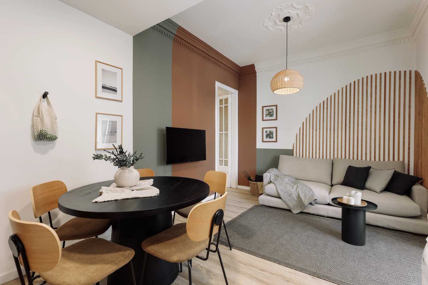 Espectacular piso en el Rosselló, con 3 habitaciones y 1 baño. La cocina está equipada con electrodomésticos y menaje de última generación. Las camas están equipadas con ropa de cama suave, ideal para un buen descanso nocturno. El apartamento dispone de 1 baño equipado con ducha completa y toallas. Además, el apartamento está equipado con WiFi de alta velocidad y SmartTV. El apartamento cuenta con lavadora, lavavajillas y aire acondicionado para su máximo confort.