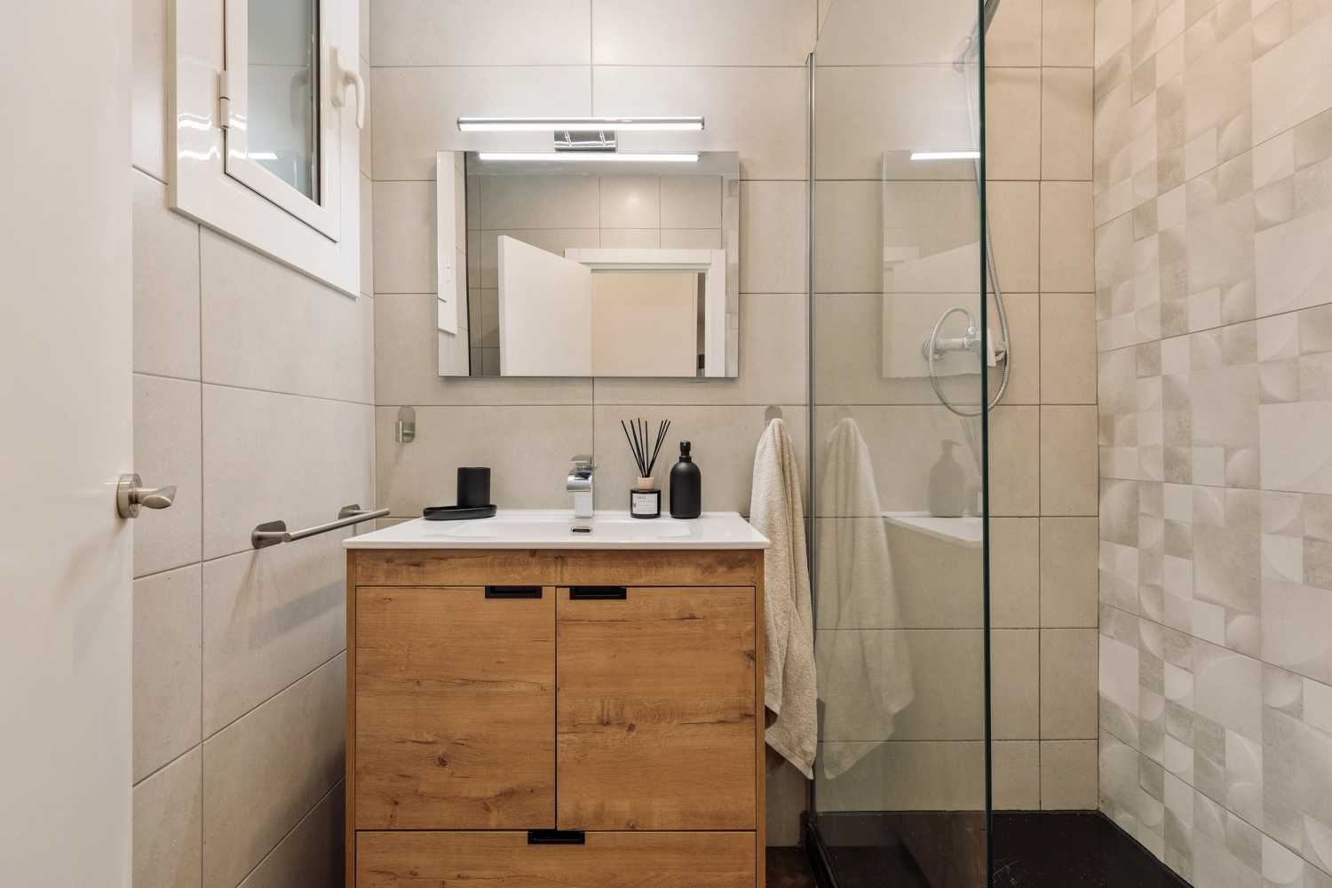 Espectacular apartamento en la calle Aulestia i Pijoan, con 3 dormitorios, un despacho y 2 baños. La cocina está equipada con electrodomésticos y menaje de última generación. Las camas están equipadas con ropa de cama suave, ideal para un buen descanso nocturno. El apartamento dispone de 2 cuartos de baño equipados con ducha completa y toallas. Además, el apartamento está equipado con WiFi de alta velocidad y SmartTV.