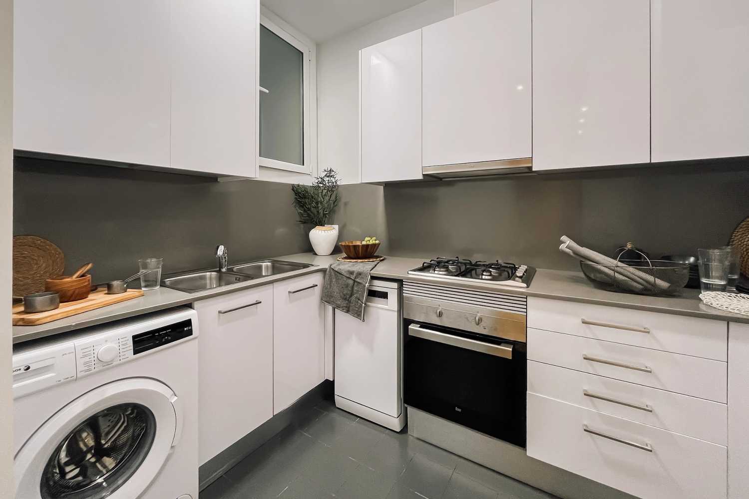O apartamento tem uma máquina de lavar roupa, máquina de lavar louça e ar condicionado para o seu máximo conforto.
