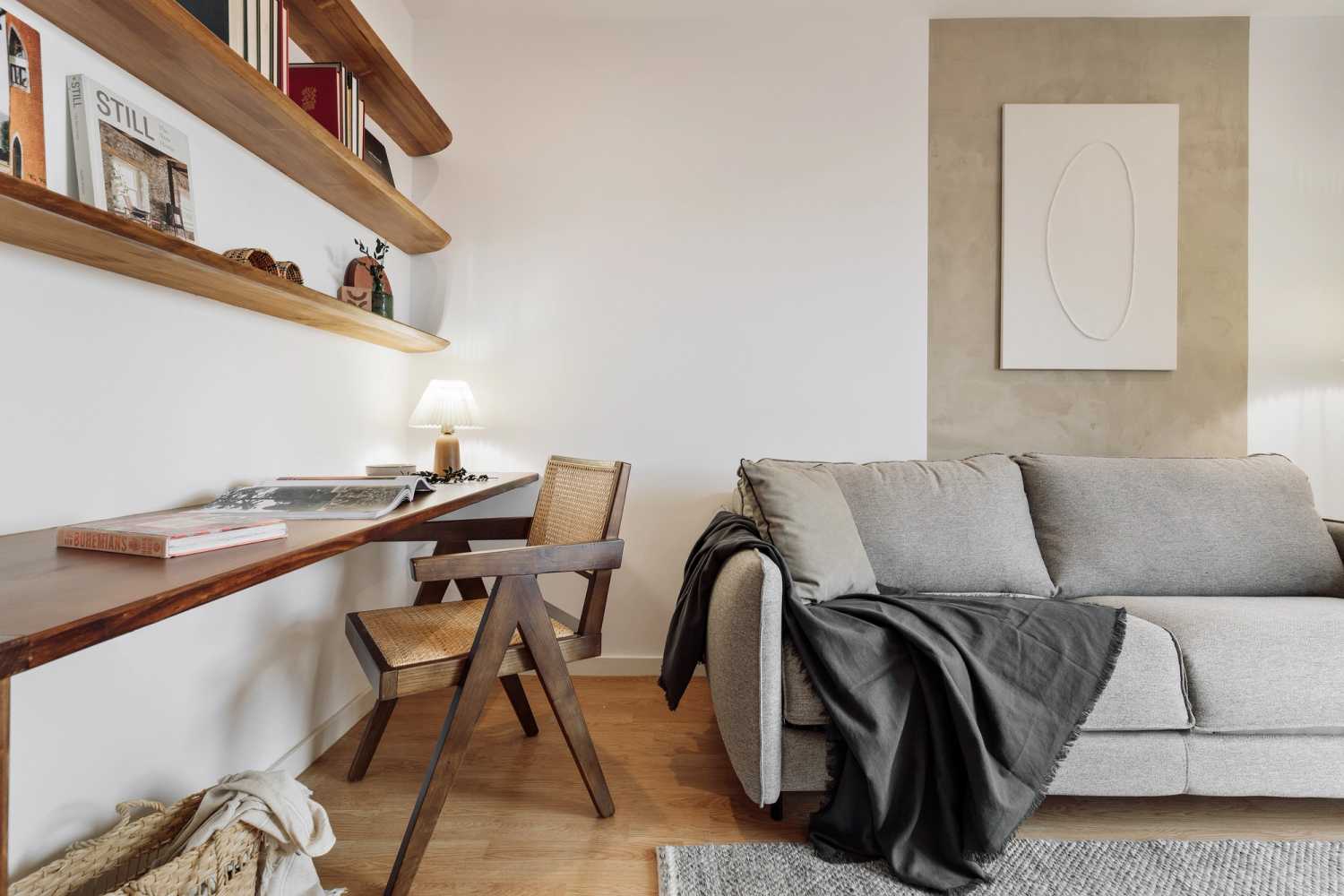 *Nuestro equipo de diseño interno selecciona de forma experta todos los muebles y la decoración de los apartamentos para garantizar el máximo nivel de calidad y comodidad. Como parte del mantenimiento constante de la casa, las mejoras de diseño y la puesta en escena fotográfica, puede haber pequeñas diferencias entre el mobiliario que se ve en las fotos y el que encontrará en el apartamento. Consulte con un agente de ventas para cualquier pregunta o duda.