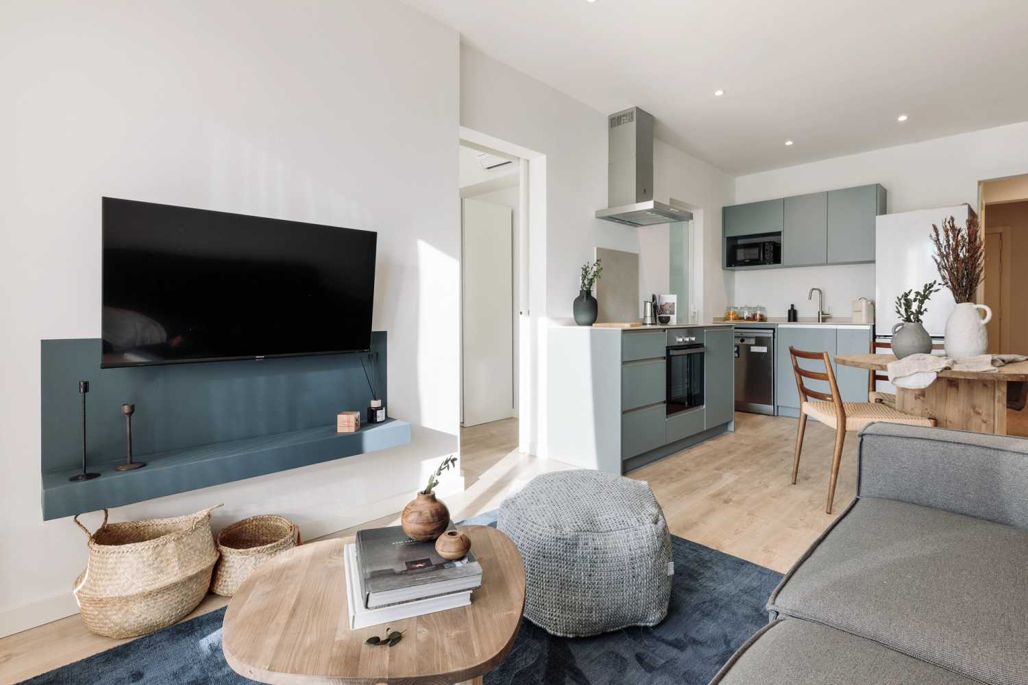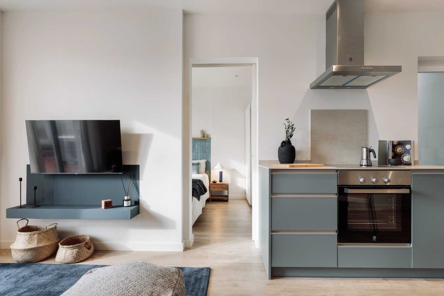 *Nuestro equipo de diseño interno selecciona de forma experta todos los muebles y la decoración de los apartamentos para garantizar el máximo nivel de calidad y comodidad. Como parte del mantenimiento constante de la casa, las mejoras de diseño y la puesta en escena fotográfica, puede haber pequeñas diferencias entre el mobiliario que se ve en las fotos y el que encontrará en el apartamento. Consulte con un agente de ventas para cualquier pregunta o duda.
