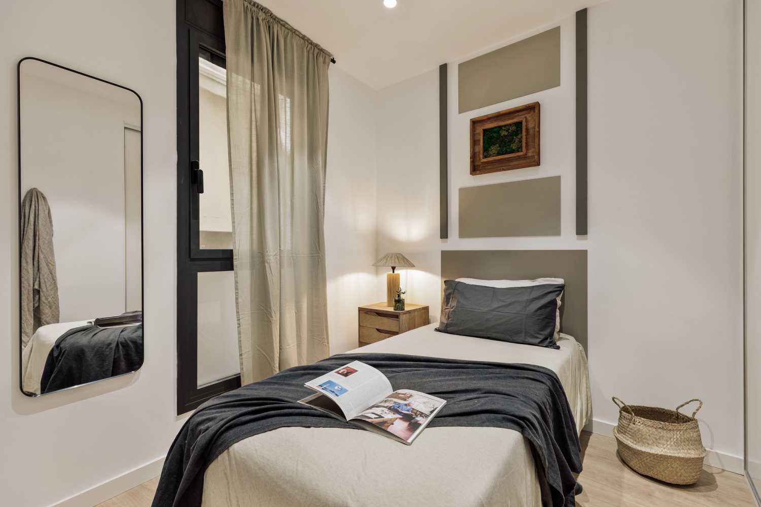 *Nuestro equipo de diseño interno selecciona de forma experta todos los muebles y la decoración de los apartamentos para garantizar el máximo nivel de calidad y comodidad. Como parte del mantenimiento constante de la casa, las mejoras de diseño y la puesta en escena fotográfica, puede haber pequeñas diferencias entre el mobiliario que se ve en las fotos y el que encontrará en el apartamento. Consulte con un agente de ventas para cualquier pregunta o duda.