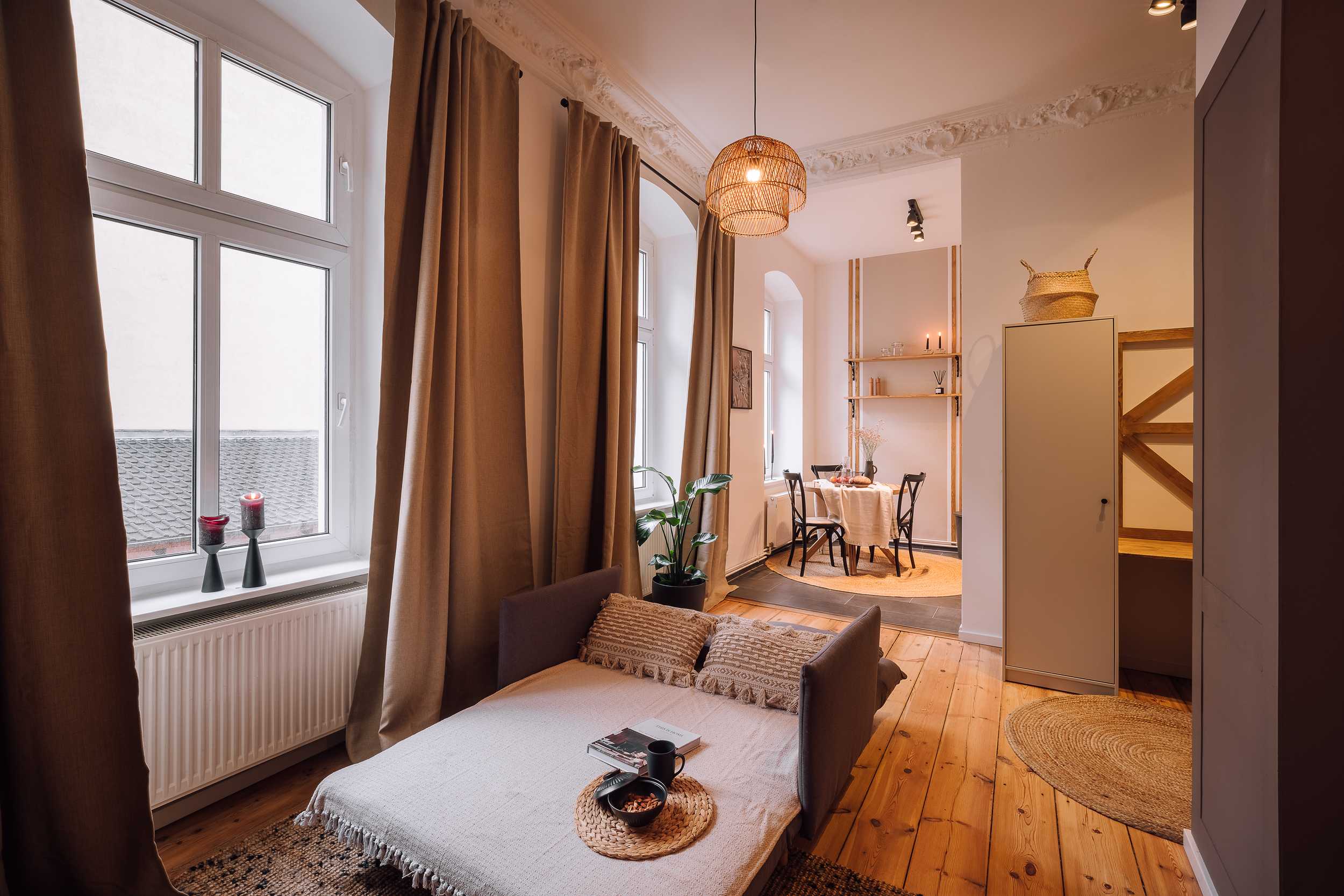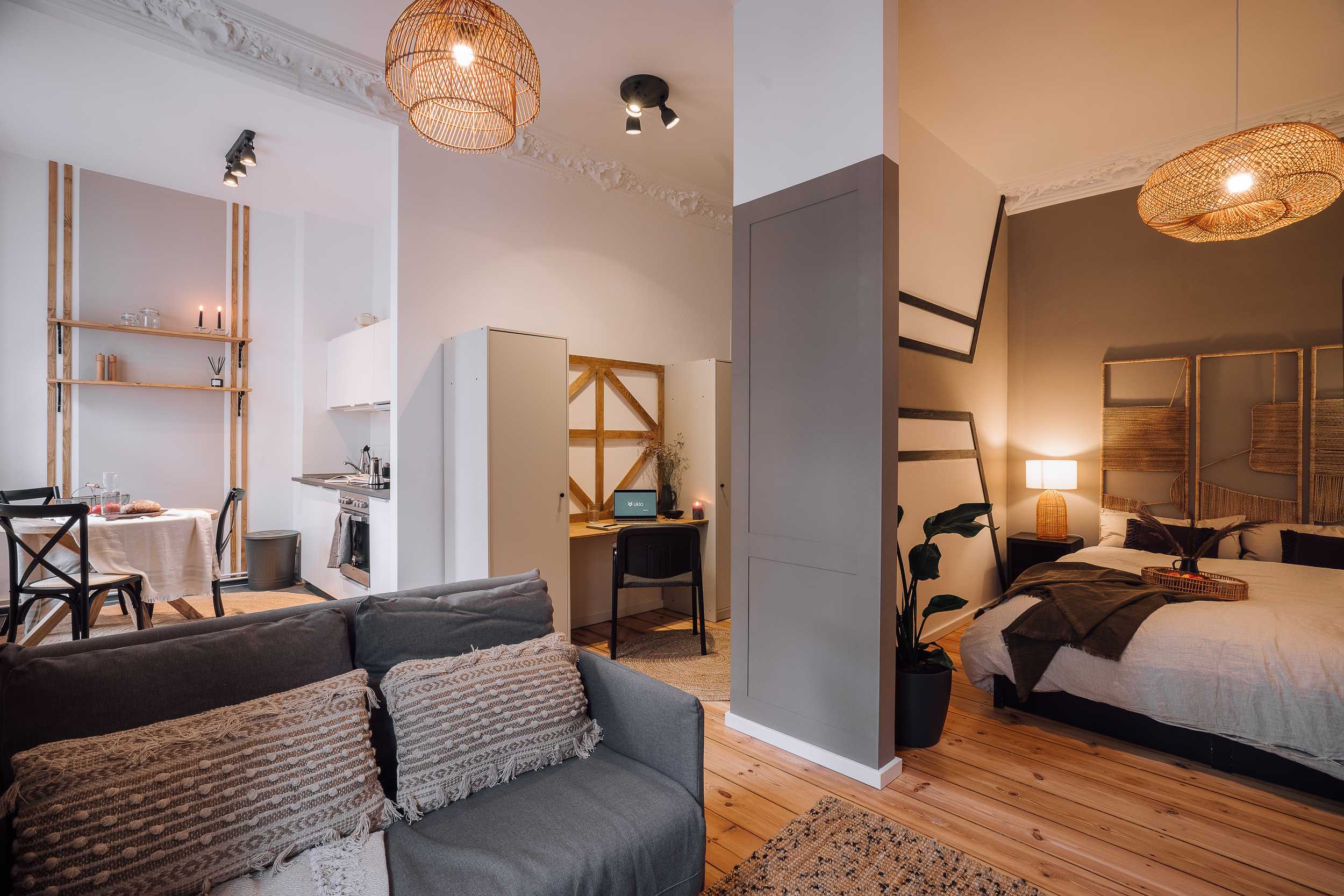 Jun combina materiales rústicos con acabados modernos para crear un espectacular diseño de pradera en este estudio de 42 metros cuadrados. Para saborear el Berlín hipster, Jun es tu respuesta. Salga a la calle y encontrará bulliciosos cafés, restaurantes y espacios multiculturales. Inspirado en el encanto tradicional y al mismo tiempo cautivadoramente contemporáneo, Jun es el lugar al que volver a casa.