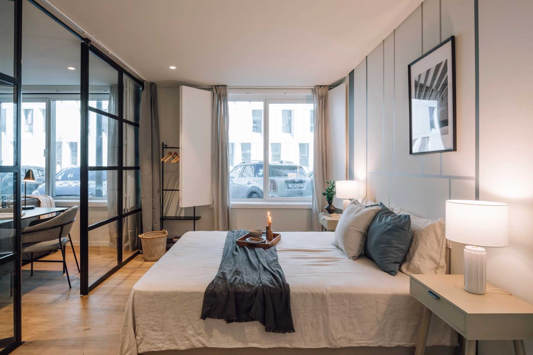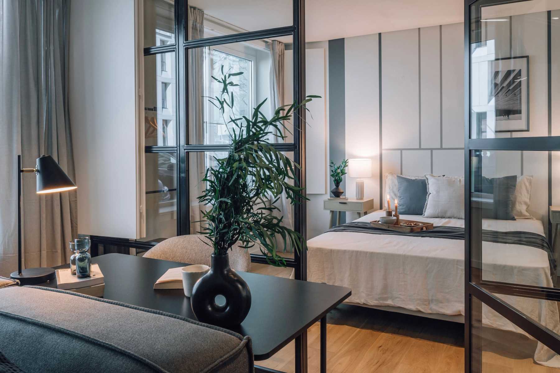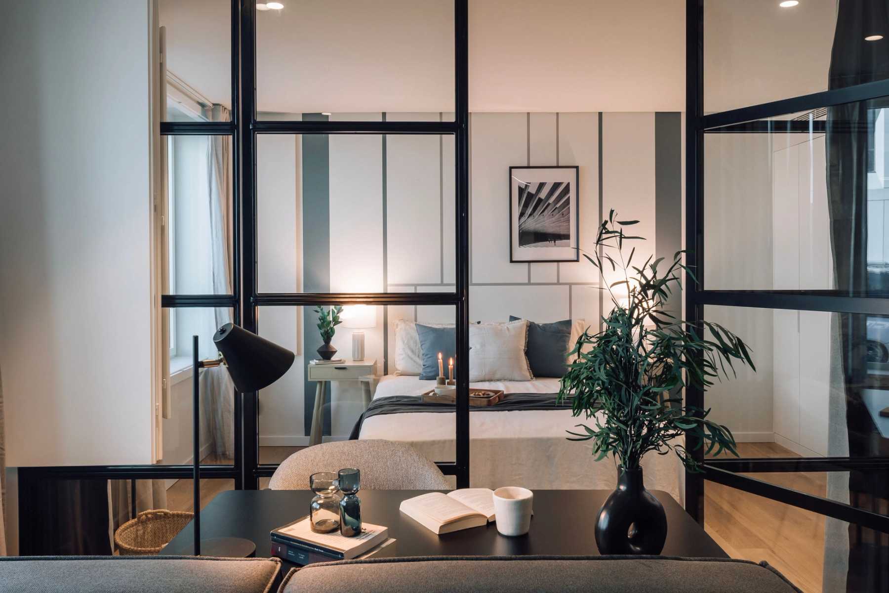 *Nuestro equipo de diseño interno selecciona de forma experta todos los muebles y la decoración de los apartamentos para garantizar el máximo nivel de calidad y comodidad. Como parte del mantenimiento constante de la casa, las mejoras de diseño y la puesta en escena fotográfica, puede haber pequeñas diferencias entre el mobiliario que se ve en las fotos y el que encontrará en el apartamento. Consulte con un agente de ventas para cualquier pregunta o duda.