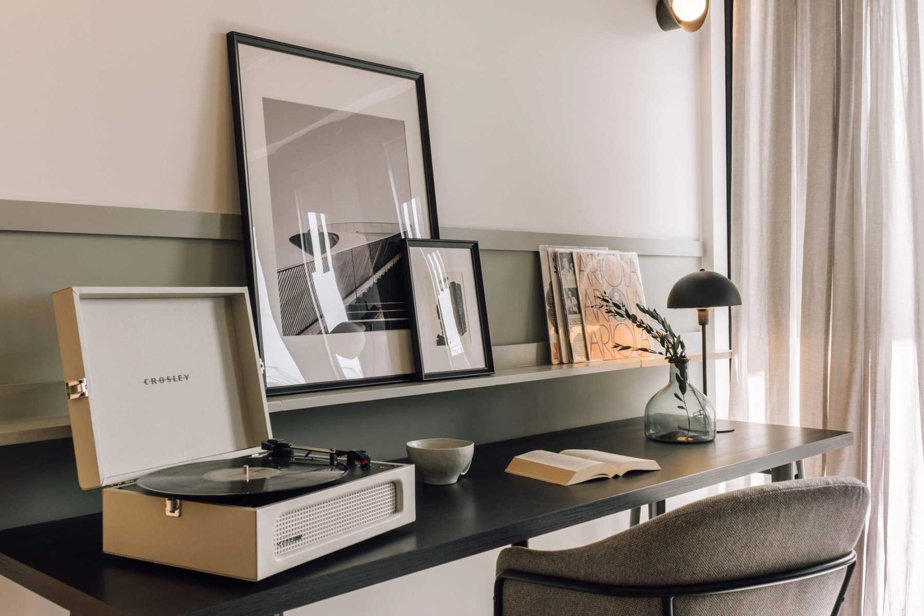 *Nuestro equipo de diseño interno selecciona de forma experta todos los muebles y la decoración de los apartamentos para garantizar el máximo nivel de calidad y comodidad. Como parte del mantenimiento constante de la casa, las mejoras de diseño y la puesta en escena fotográfica, puede haber pequeñas diferencias entre el mobiliario que se ve en las fotos y el que encontrará en el apartamento. Consulte con un agente de ventas para cualquier pregunta o duda.