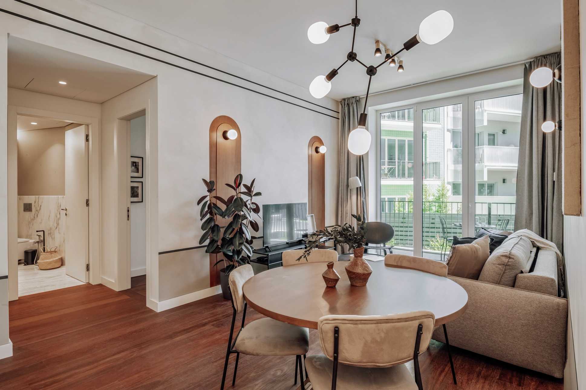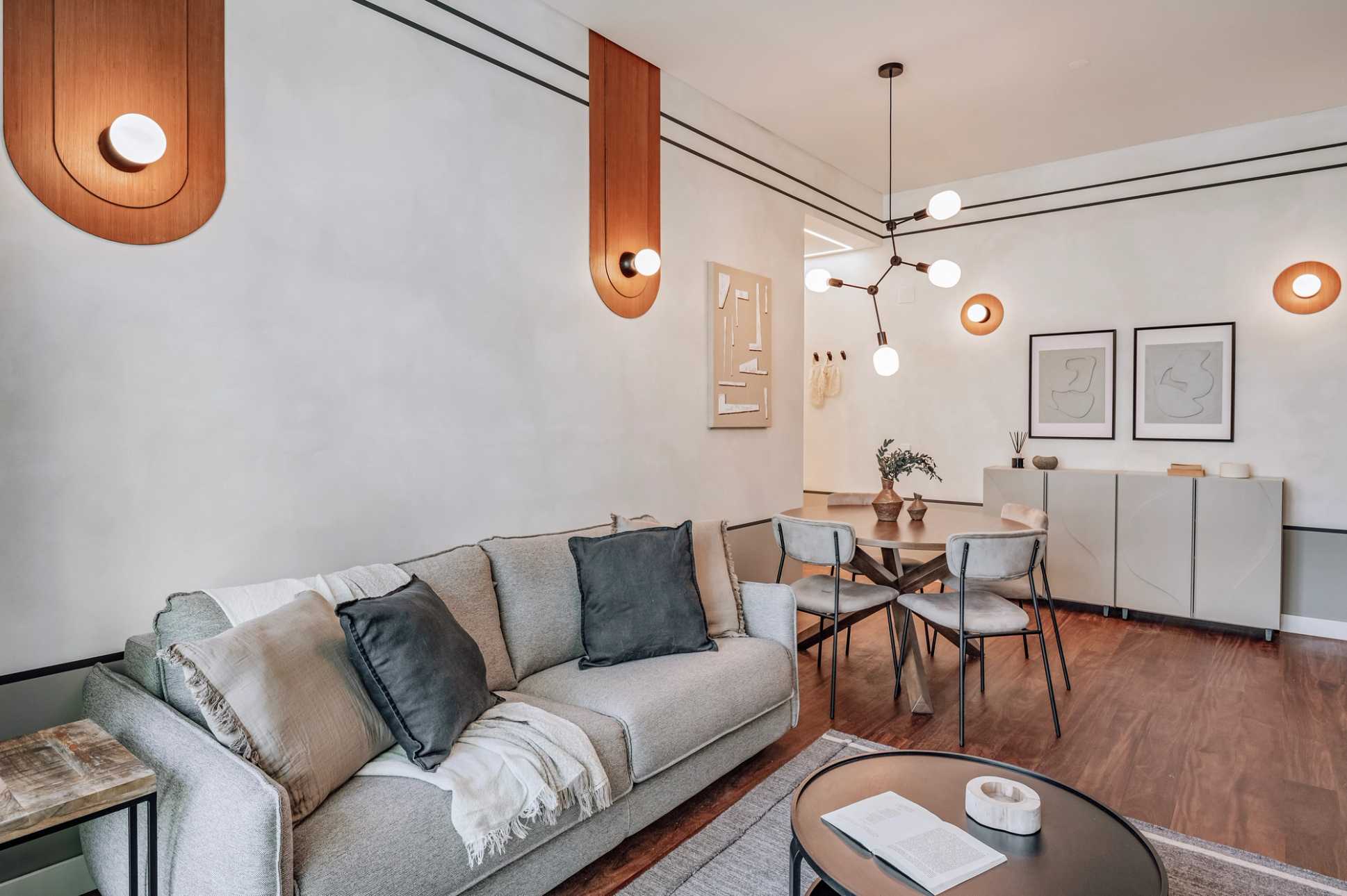 *Nuestro equipo de diseño interno selecciona de forma experta todos los muebles y la decoración de los apartamentos para garantizar el máximo nivel de calidad y comodidad. Como parte del mantenimiento constante de la casa, las mejoras de diseño y la puesta en escena fotográfica, puede haber pequeñas diferencias entre el mobiliario que se ve en las fotos y el que encontrará en el apartamento. Consulte con un agente de ventas para cualquier pregunta o duda.