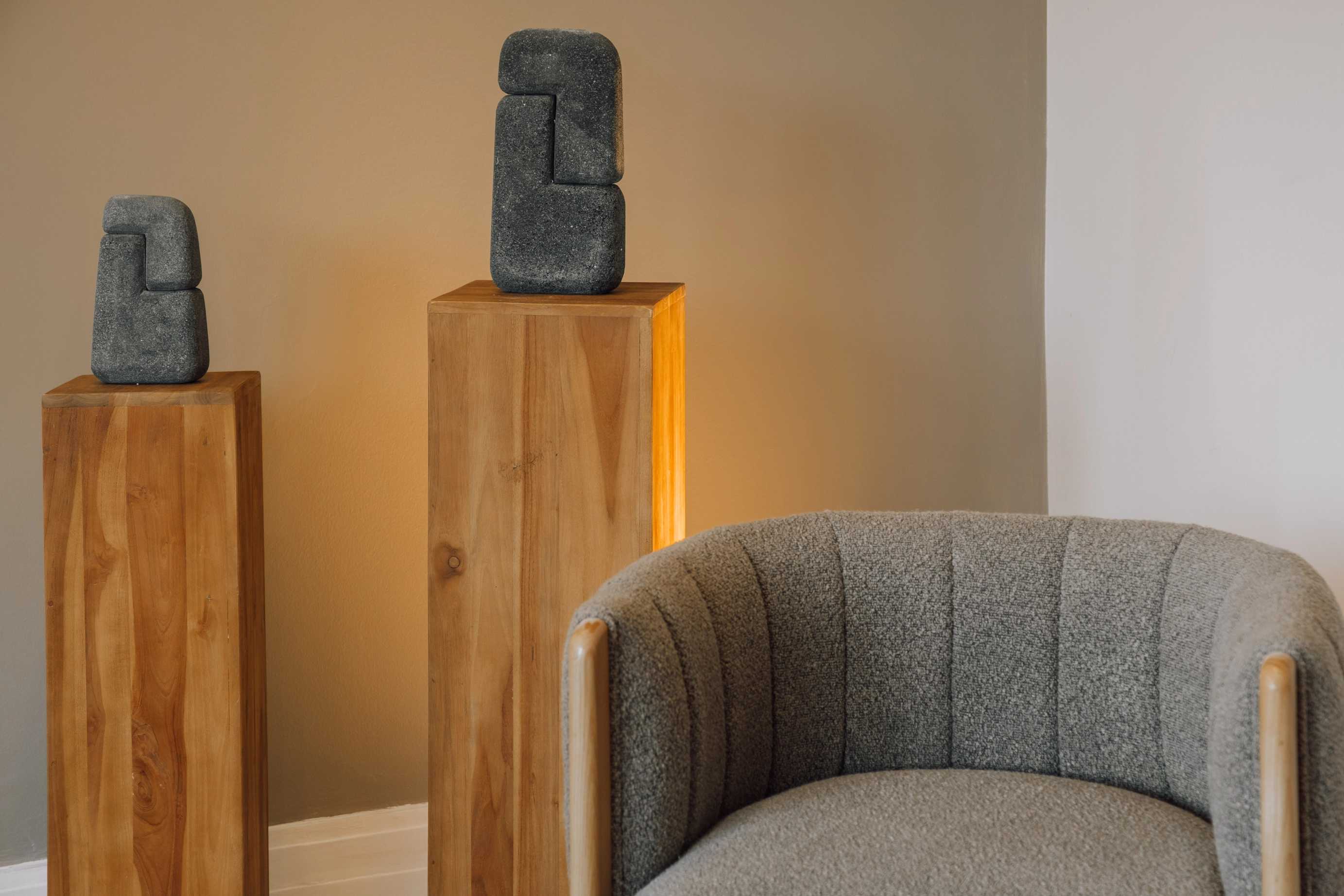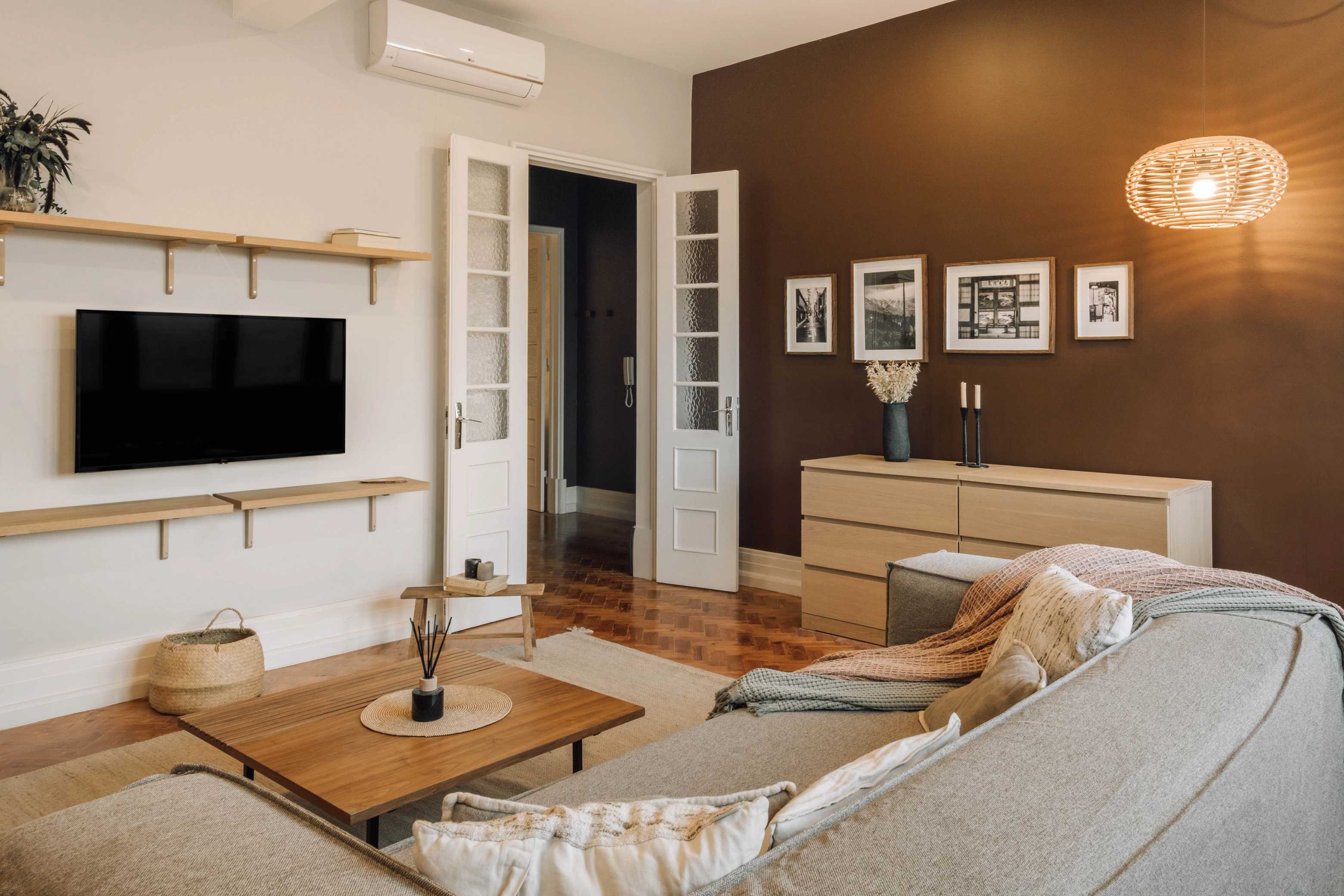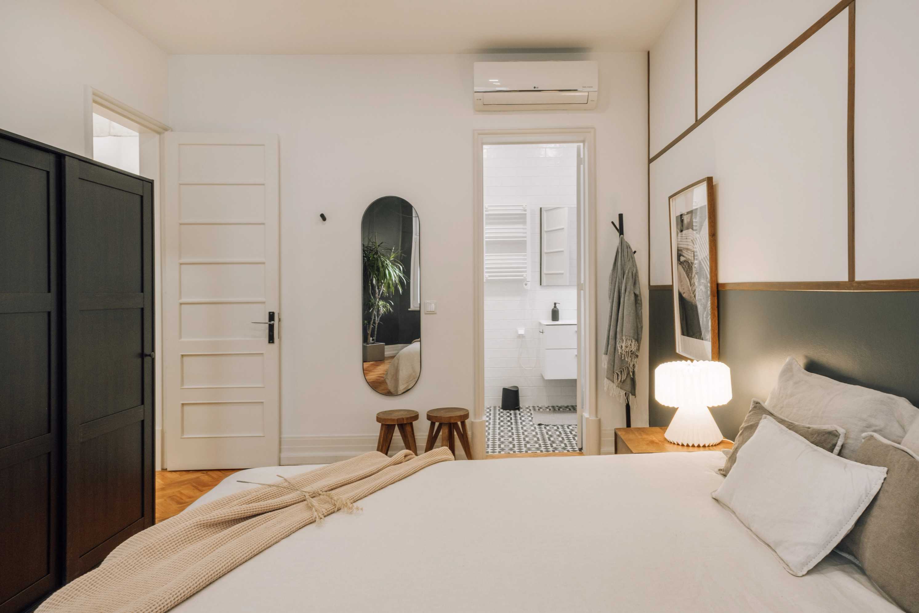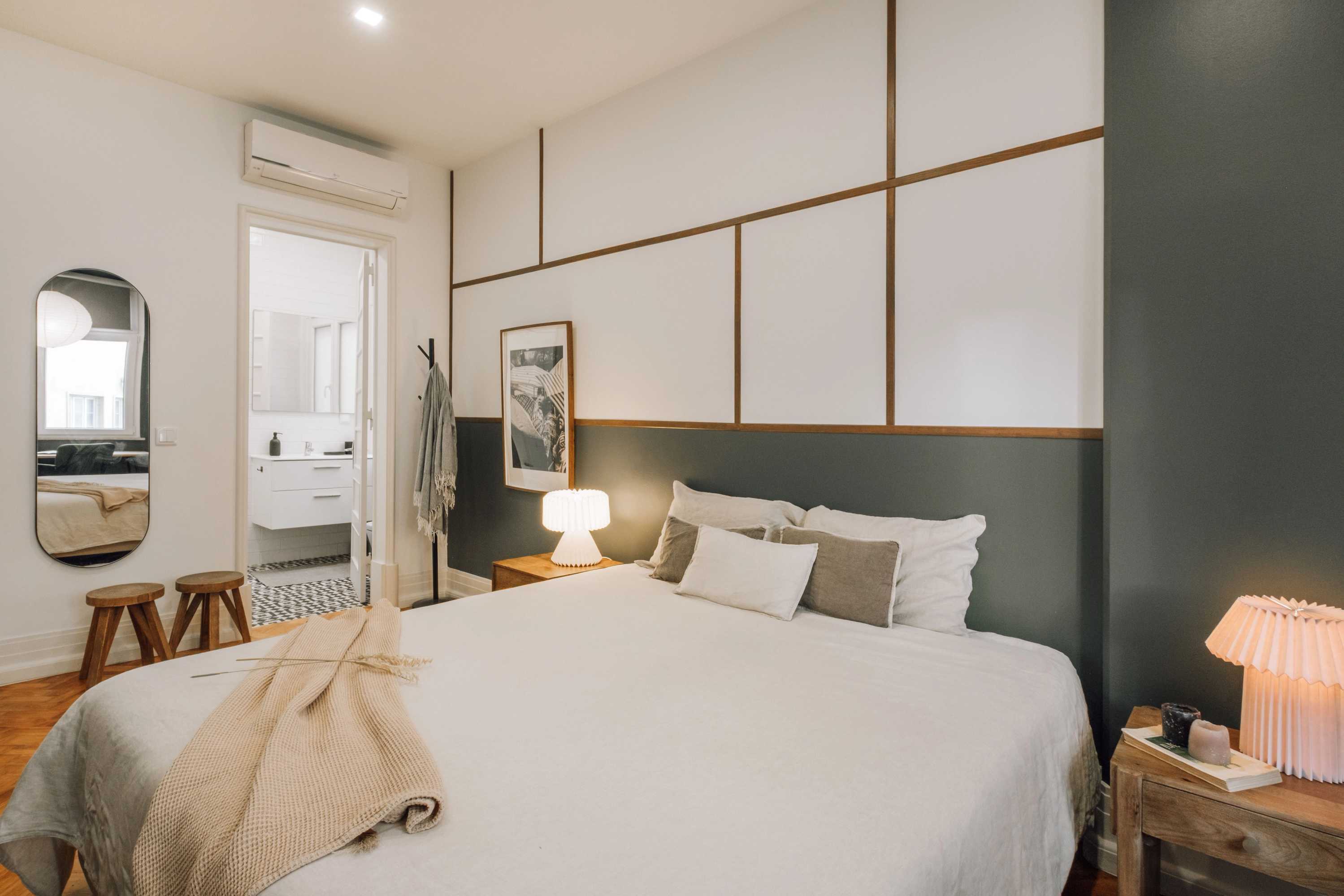 Kiso es un apartamento ubicado en el barrio lisboeta de Marquês de Pombal que, en un área de 100 metros cuadrados, ofrece dos dormitorios, dos cuartos de baño y un cuarto de aseo. Se caracteriza por la presencia de colores elegantes y con personalidad, además de detalles únicos, logrando así un ambiente equilibrado y tranquilo. Al ingresar en él, a la izquierda, se ubica el comedor, con detalles de madera en las paredes. El salón, adyacente a él, se inspira en la estética japonesa y presume de jardín nipón con piedras junto a la zona de estar. Está equipado con un cómodo sofá y pufs, situados frente al televisor inteligente, este último escoltado por estanterías producidas a medida. Los ventanales de la pared del fondo permiten la entrada y el aprovechamiento de la luz natural en todo el espacio.