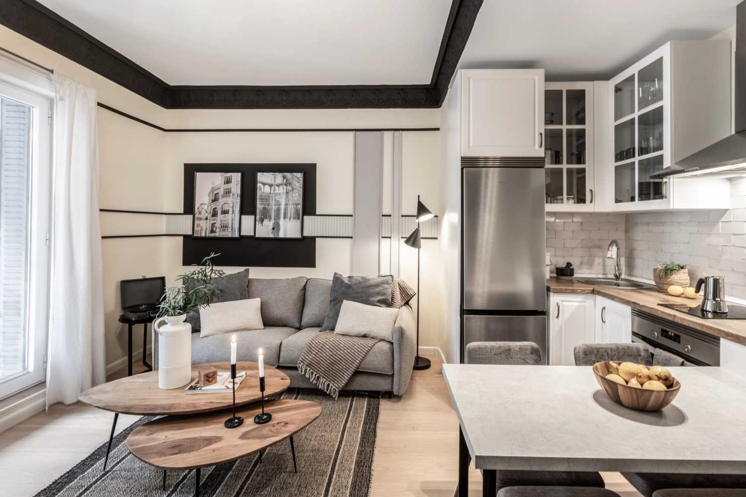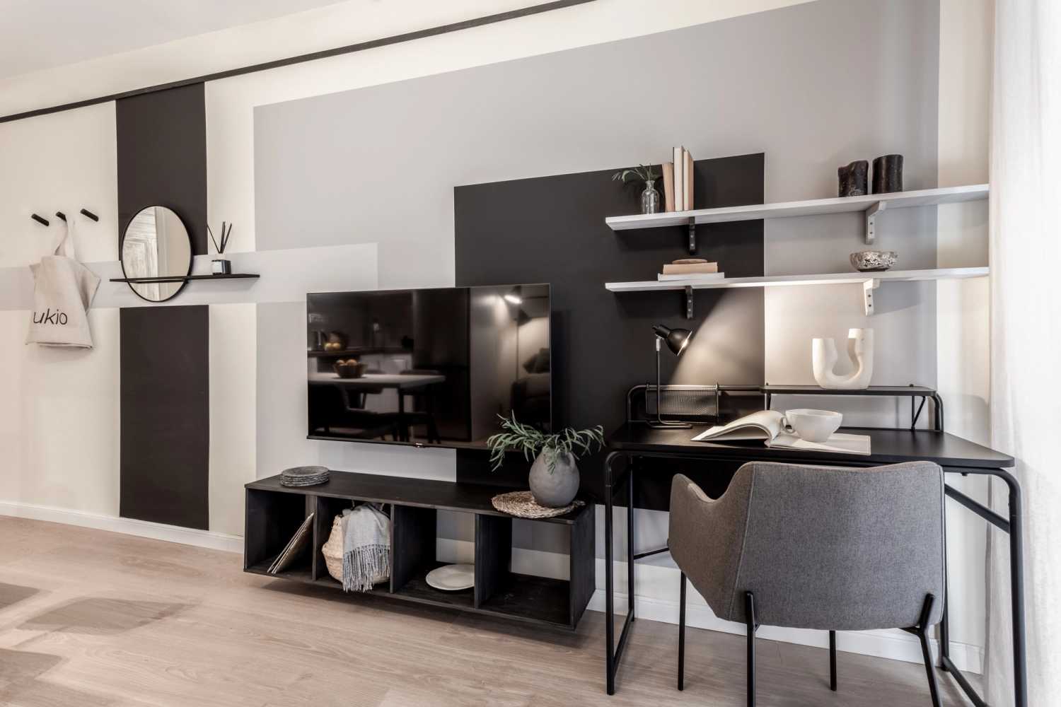 *Nuestro equipo de diseño interno selecciona de forma experta todos los muebles y la decoración de los apartamentos para garantizar el máximo nivel de calidad y comodidad. Como parte del mantenimiento constante de la casa, las mejoras de diseño y la puesta en escena fotográfica, puede haber pequeñas diferencias entre el mobiliario que se ve en las fotos y el que encontrará en el apartamento. Consulte con un agente de ventas para cualquier pregunta o duda.