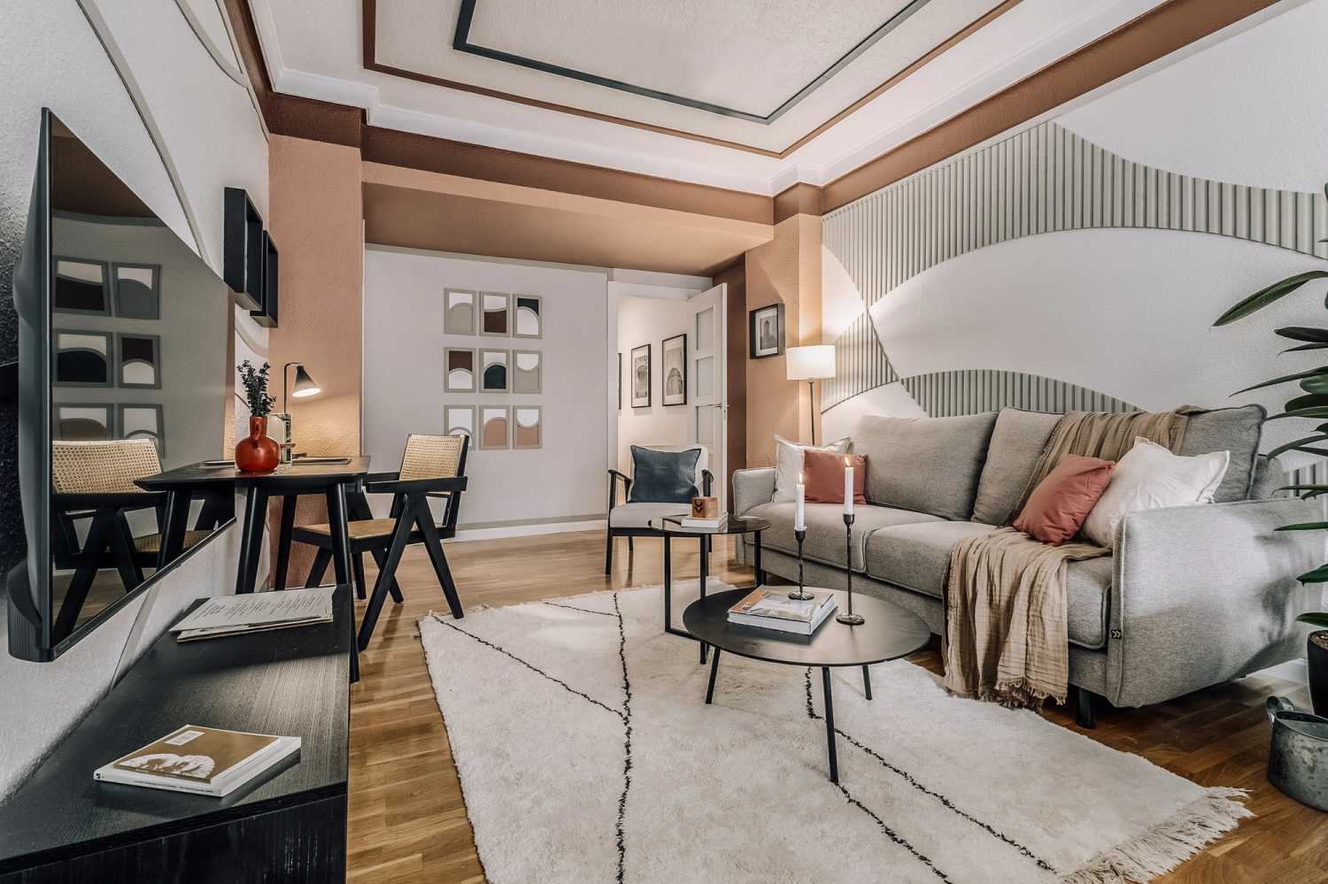 *Nuestro equipo de diseño interno selecciona de forma experta todos los muebles y la decoración de los apartamentos para garantizar el máximo nivel de calidad y comodidad. Como parte del mantenimiento constante de la casa, las mejoras de diseño y la puesta en escena fotográfica, puede haber pequeñas diferencias entre el mobiliario que se ve en las fotos y el que encontrará en el apartamento. Consulte con un agente de ventas para cualquier pregunta o duda.