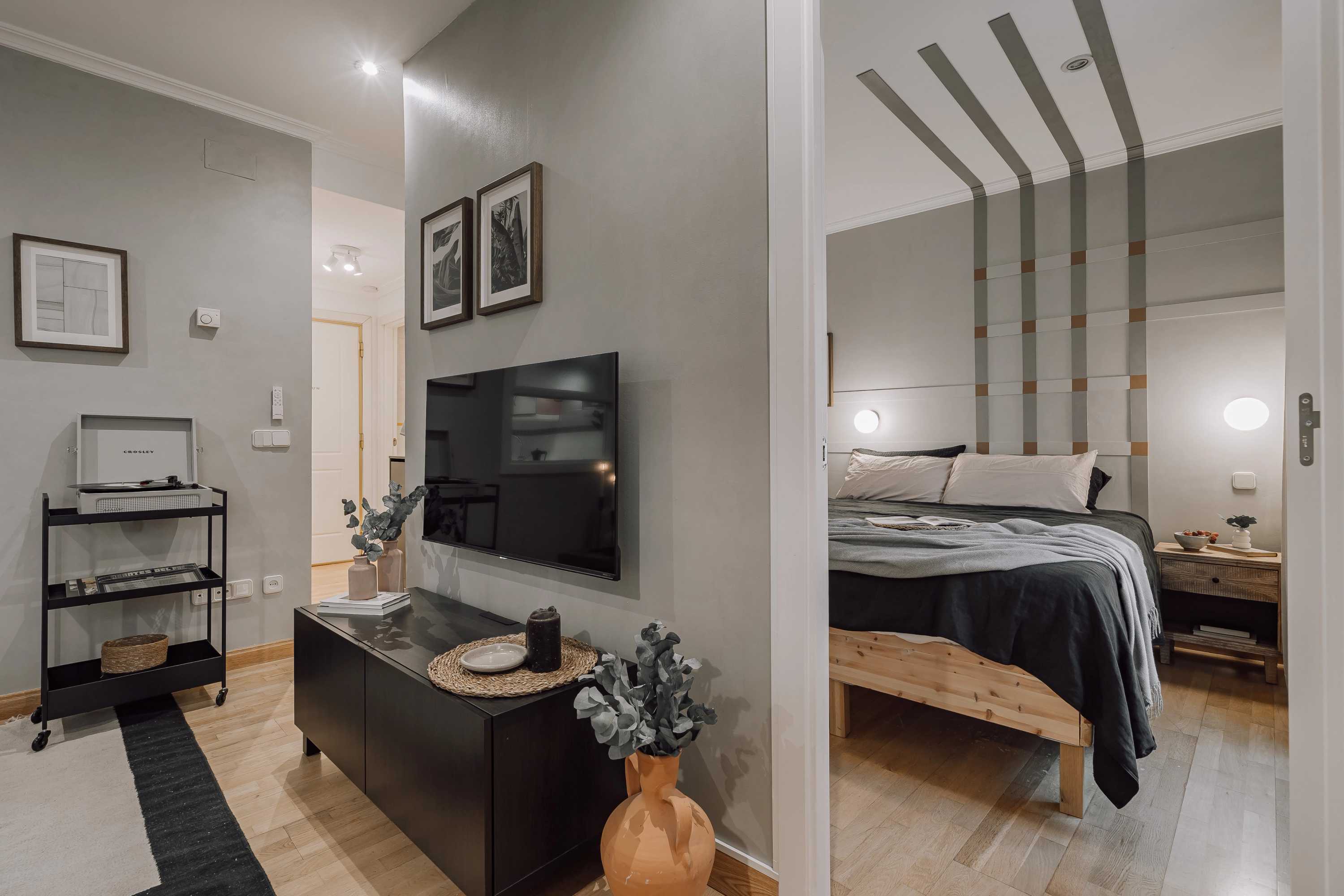 *Nuestro equipo de diseño interno selecciona de forma experta todos los muebles y la decoración de los apartamentos para garantizar el máximo nivel de calidad y comodidad. Como parte del mantenimiento constante de la casa, las mejoras de diseño y la puesta en escena fotográfica, puede haber pequeñas diferencias entre el mobiliario que se ve en las fotos y el que encontrará en el apartamento. Consulte con un agente de ventas para cualquier pregunta o duda.