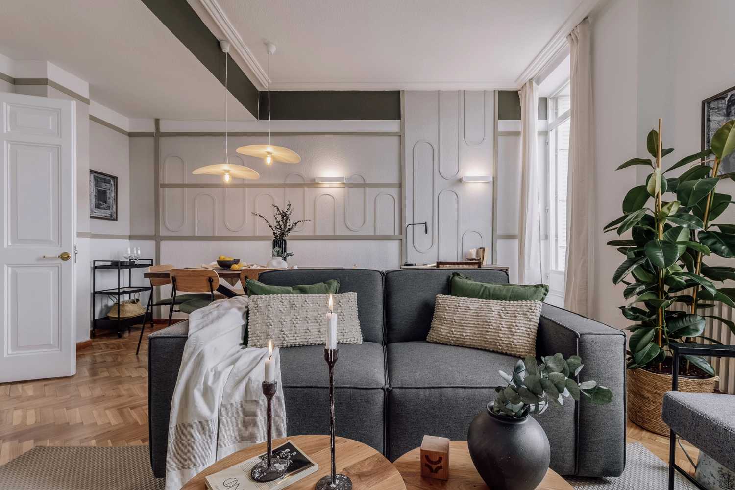 *Nuestro equipo de diseño interno selecciona de forma experta todos los muebles y la decoración de los apartamentos para garantizar el máximo nivel de calidad y comodidad. Como parte del mantenimiento constante de la casa, las mejoras de diseño y la puesta en escena fotográfica, puede haber pequeñas diferencias entre el mobiliario que se ve en las fotos y el que encontrará en el apartamento. Consulte con un agente de ventas para cualquier pregunta o duda.