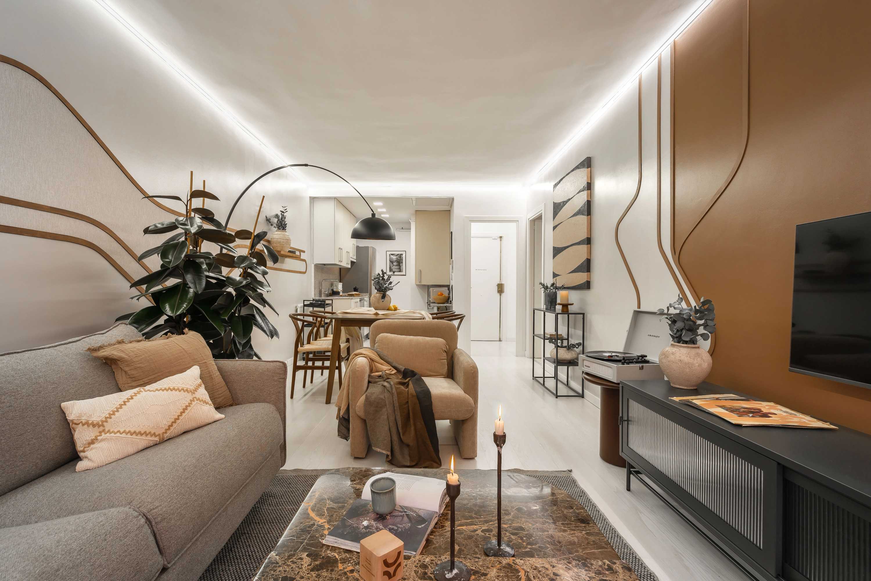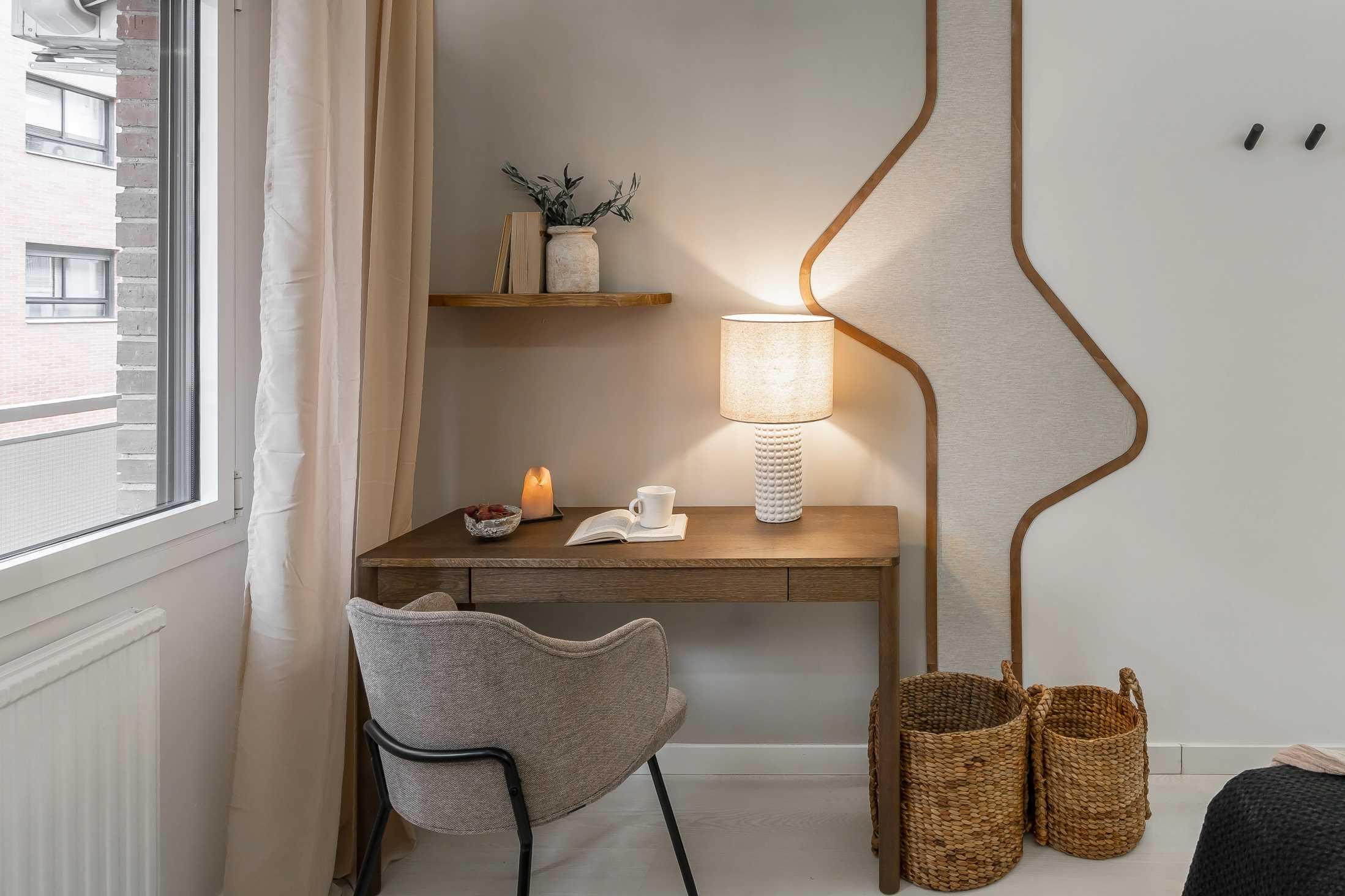 *Nuestro equipo de diseño interno selecciona de forma experta todos los muebles y la decoración de los apartamentos para garantizar el máximo nivel de calidad y comodidad. Como parte del mantenimiento constante de la casa, las mejoras de diseño y la puesta en escena fotográfica, puede haber pequeñas diferencias entre el mobiliario que se ve en las fotos y el que encontrará en el apartamento. Consulte con un agente de ventas para cualquier pregunta o duda.