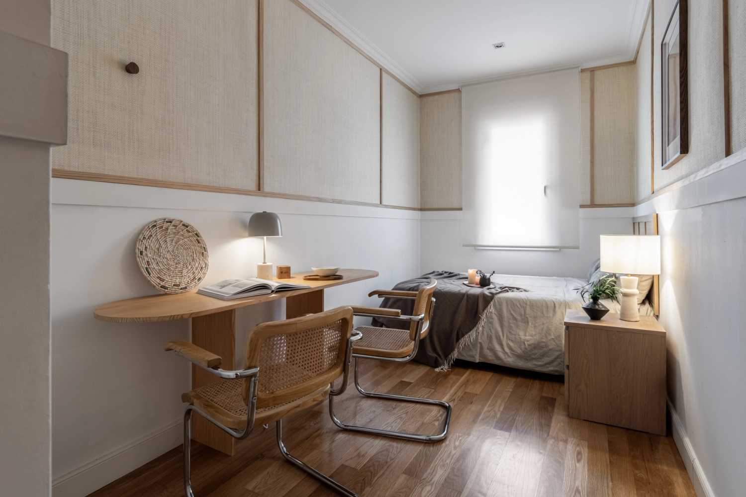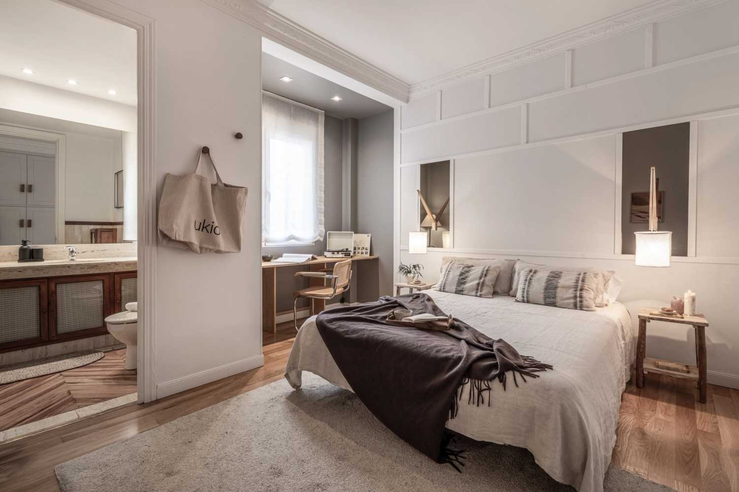 Según ingresa en Betawi, encontrará, a su izquierda, un imponente y elegante vestidor con generoso espacio de almacenamiento en sus armarios. En el pasillo se ubican dos dormitorios, diseñados con una decoración única que evoca las playas de Austronesia que inspiraron este apartamento. El primero incluye cama de matrimonio, en tanto que el segundo hace lo propio con una cama individual y un área con escritorio dedicada para cubrir todas las necesidades de teletrabajo. El primer cuarto de baño dispone de bañera con ducha.