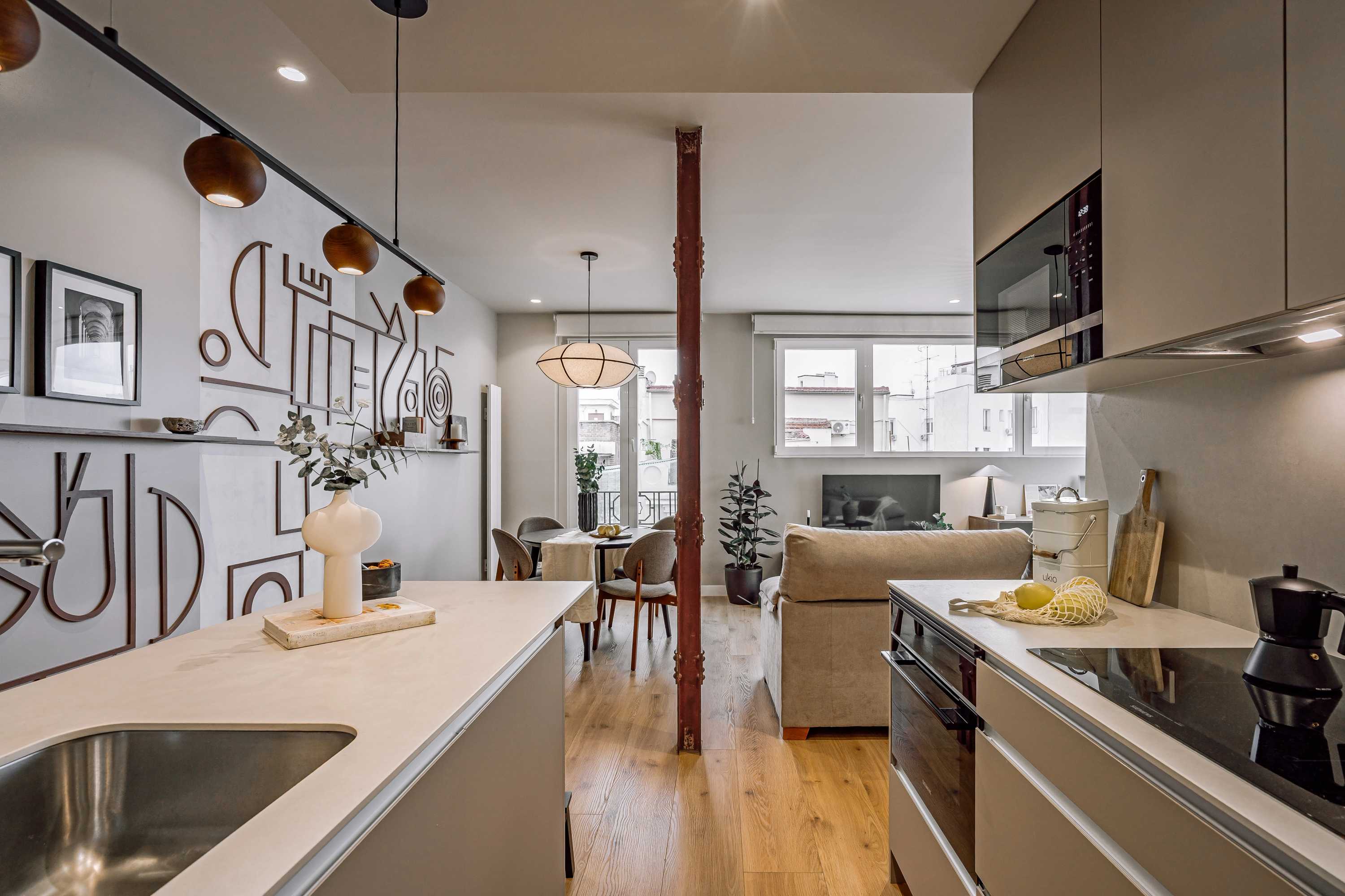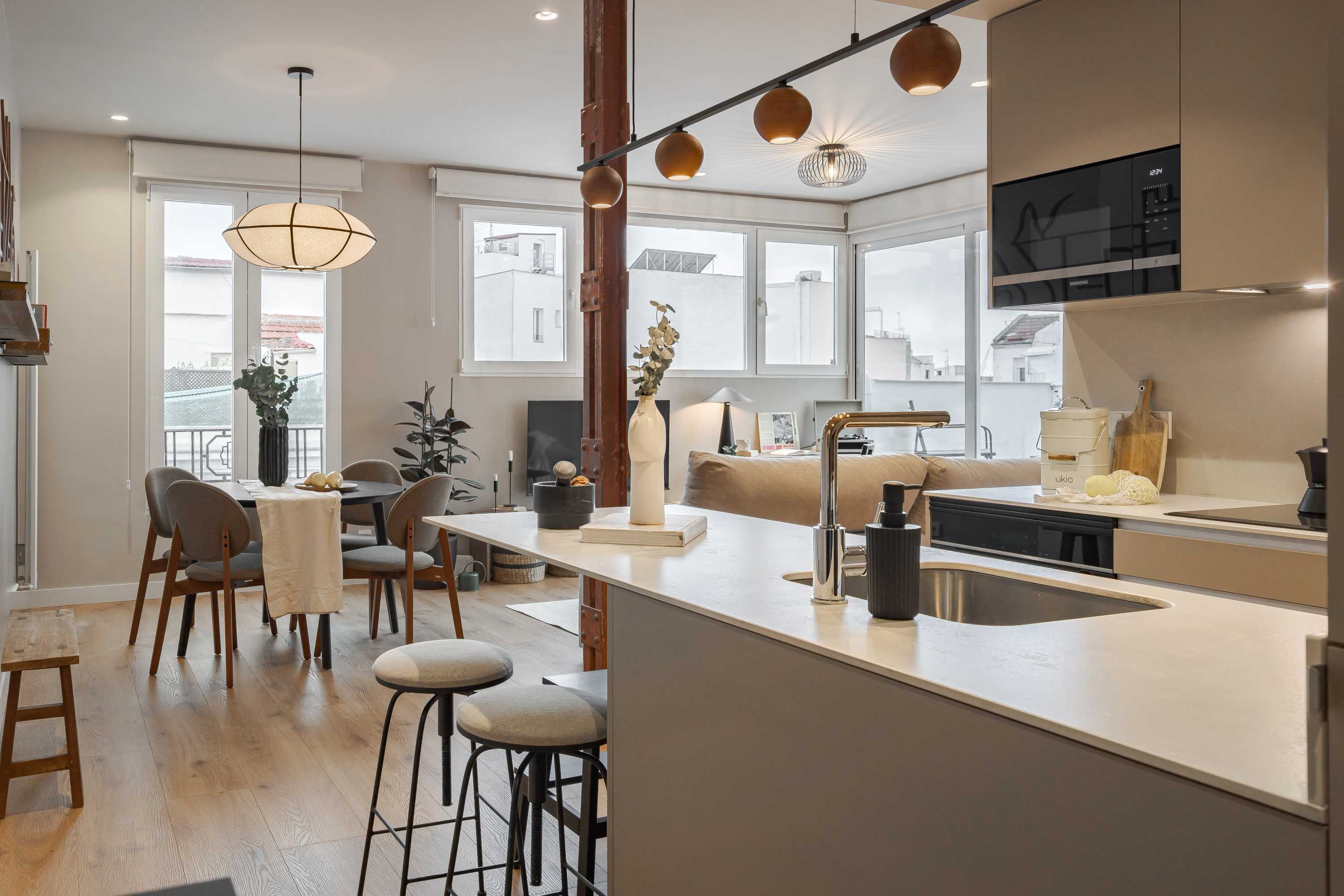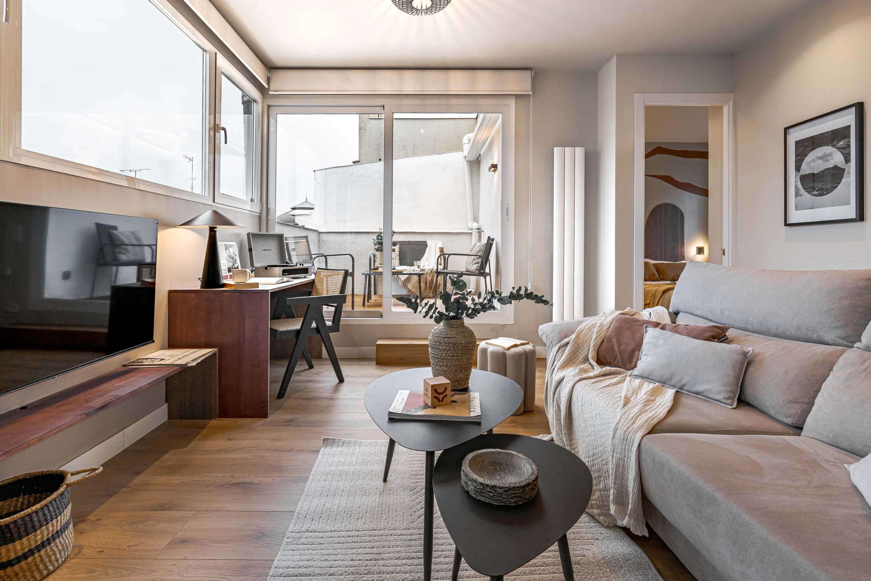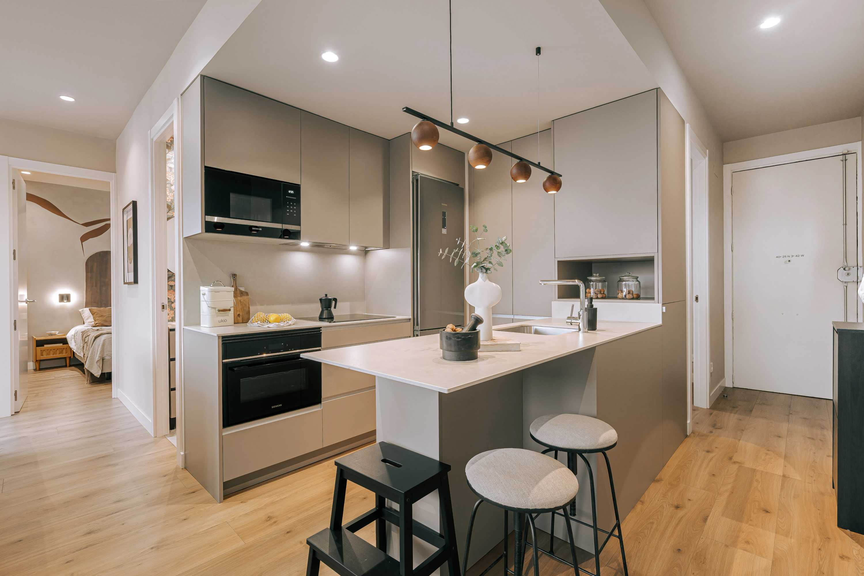 *Nuestro equipo de diseño interno selecciona cuidadosamente todos los muebles y la decoración de los apartamentos para garantizar el máximo nivel de calidad y comodidad. Como parte del mantenimiento constante de las viviendas, las mejoras de diseño y la puesta en escena fotográfica, puede haber pequeñas diferencias entre el mobiliario que se ve en las fotos y el que se encuentra en el apartamento. Si tiene alguna pregunta o duda, consulte con un agente de ventas.