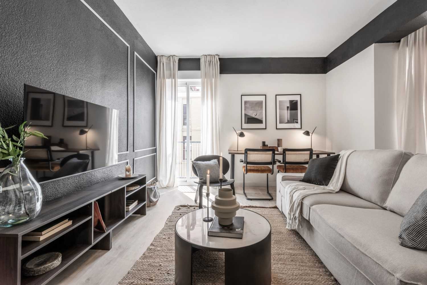 *Nuestro equipo de diseño interno selecciona de forma experta todos los muebles y la decoración de los apartamentos para garantizar el máximo nivel de calidad y comodidad. Como parte del mantenimiento constante de la casa, las mejoras de diseño y la puesta en escena fotográfica, puede haber pequeñas diferencias entre el mobiliario que se ve en las fotos y el que encontrará en el apartamento. Consulte con un agente de ventas para cualquier pregunta o duda.