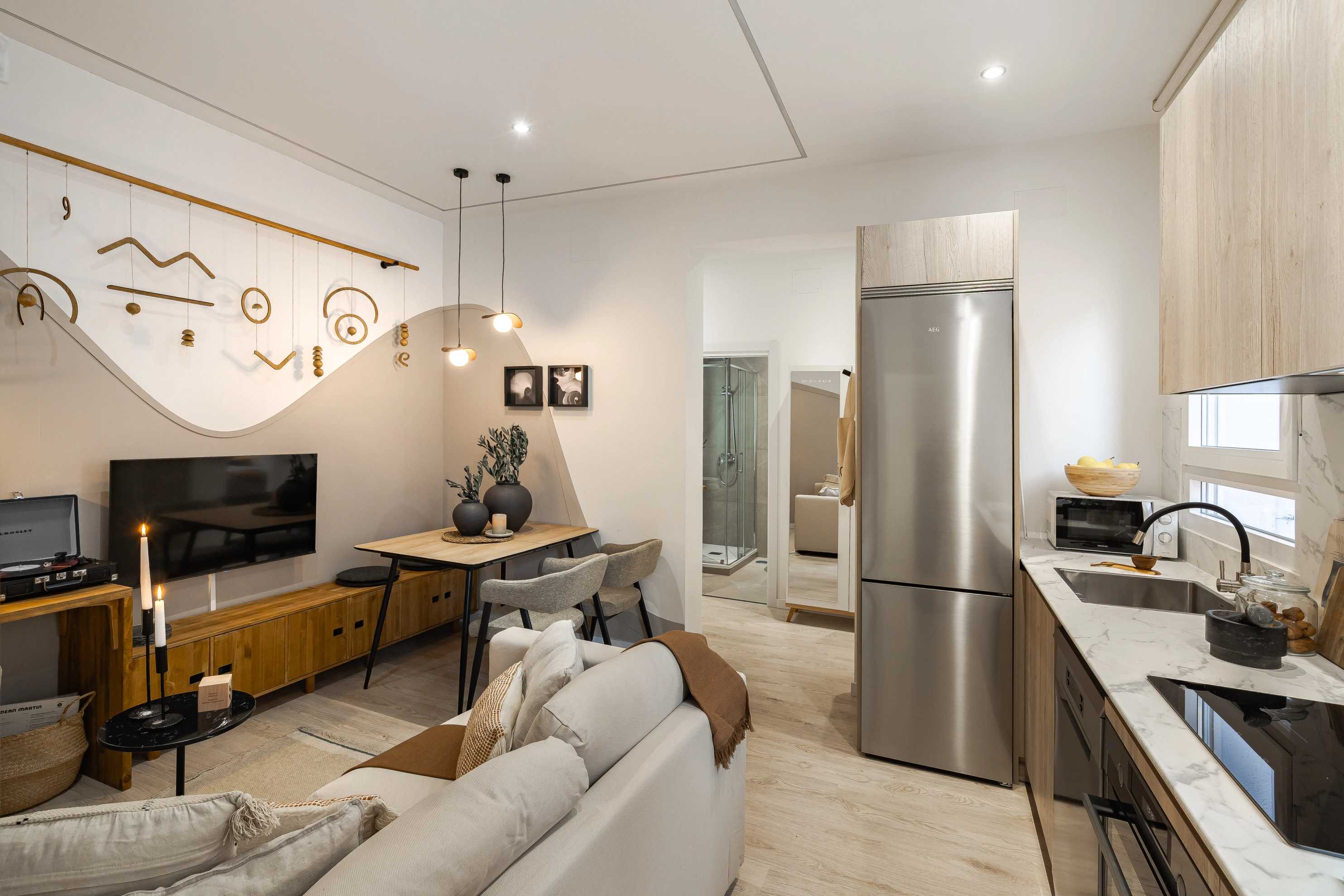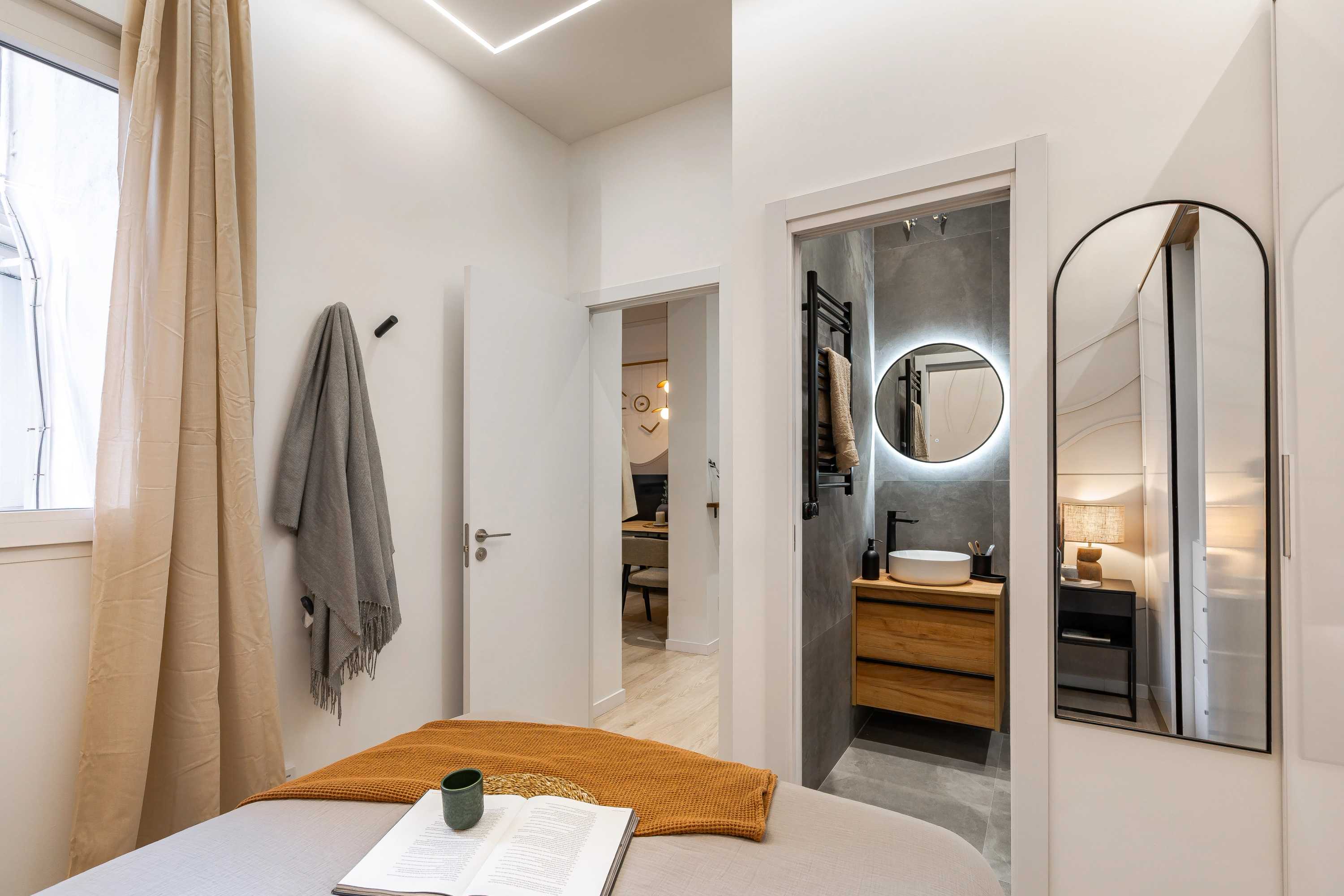 *Nuestro equipo de diseño interno selecciona de forma experta todos los muebles y la decoración de los apartamentos para garantizar el máximo nivel de cadad y comodidad. Como parte del mantenimiento constante de la casa, las mejoras de diseño y la puesta en escena fotográfica, puede haber pequeñas diferencias entre el mobiliario que se ve en las fotos y el que encontrará en el apartliamento. Consulte con un agente de ventas para cualquier pregunta o duda.