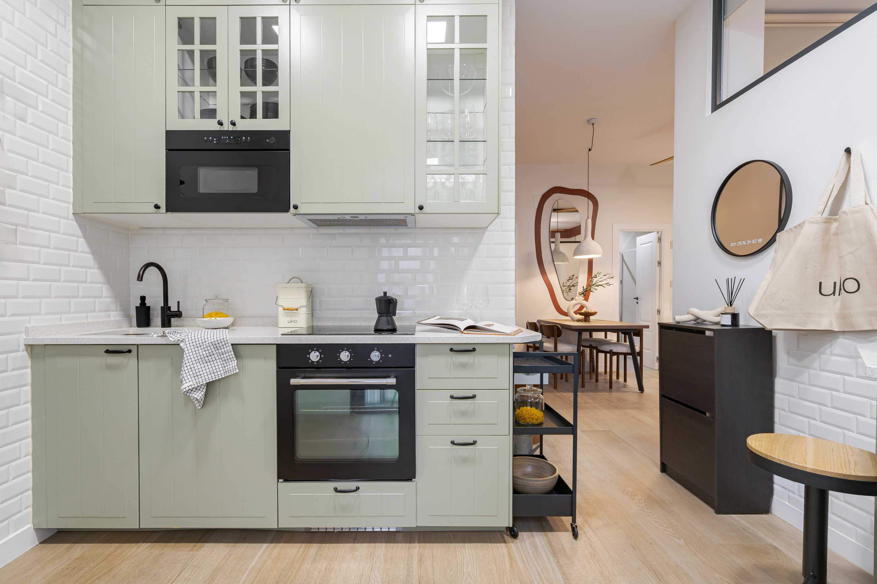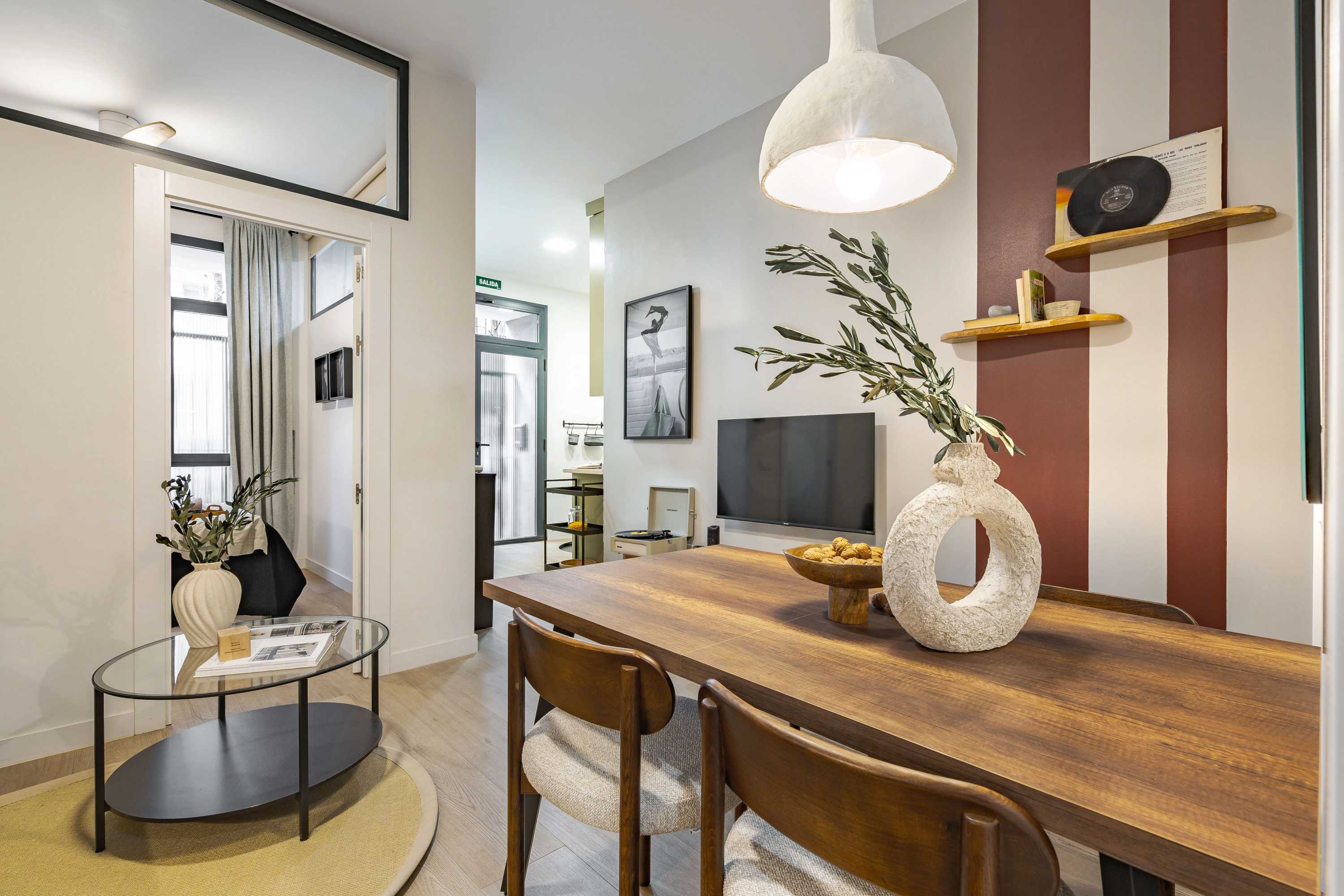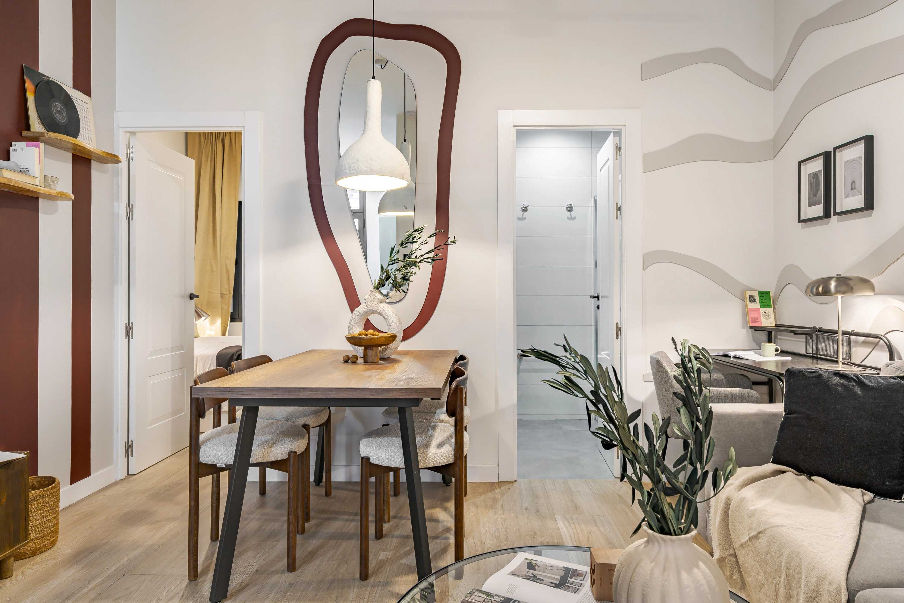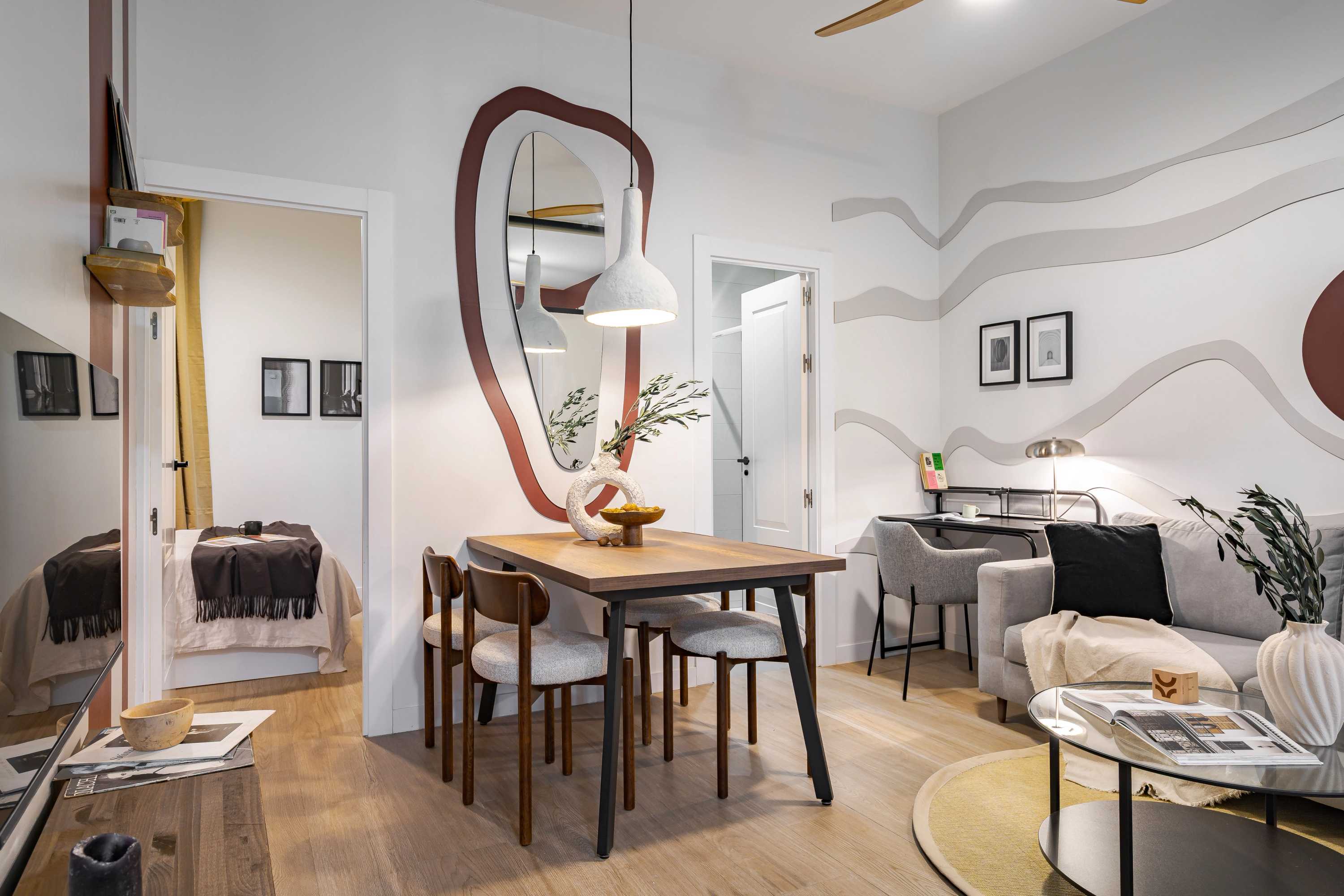 *Nuestro equipo de diseño interno selecciona de forma experta todos los muebles y la decoración de los apartamentos para garantizar el máximo nivel de cadad y comodidad. Como parte del mantenimiento constante de la casa, las mejoras de diseño y la puesta en escena fotográfica, puede haber pequeñas diferencias entre el mobiliario que se ve en las fotos y el que encontrará en el apartliamento. Consulte con un agente de ventas para cualquier pregunta o duda.