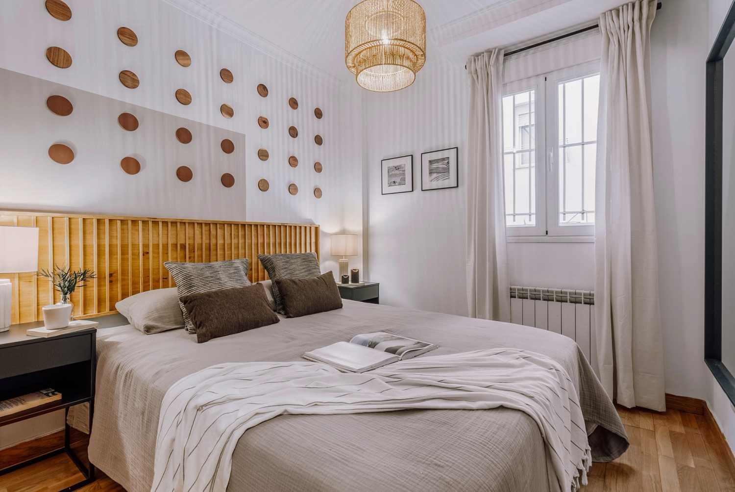 Espectacular apartamento en la calle Sandoval, con 2 dormitorios, un despacho y 1 baño. La cocina está equipada con electrodomésticos y menaje de última generación. Las camas están equipadas con ropa de cama suave, ideal para un buen descanso nocturno. El apartamento dispone de 1 baño equipado con bañera completa y toallas. Además, el apartamento está equipado con WiFi de alta velocidad y SmartTV.