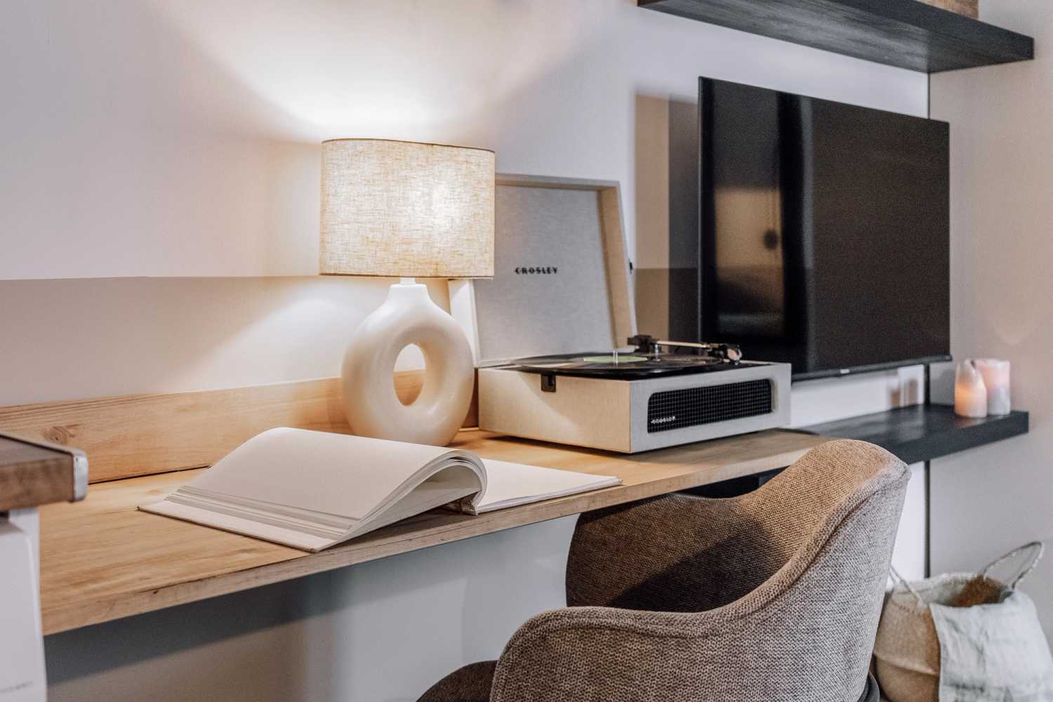 *Nuestro equipo de diseño interno selecciona de forma experta todos los muebles y la decoración de los apartamentos para garantizar el máximo nivel de calidad y comodidad. Como parte del mantenimiento constante de la casa, las mejoras de diseño y la puesta en escena fotográfica, puede haber pequeñas diferencias entre el mobiliario que se ve en las fotos y el que encontrará en el apartamento. Consulte con un agente de ventas para cualquier pregunta o duda.