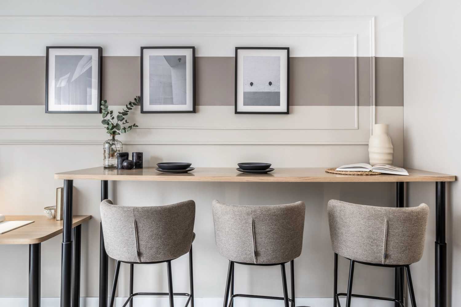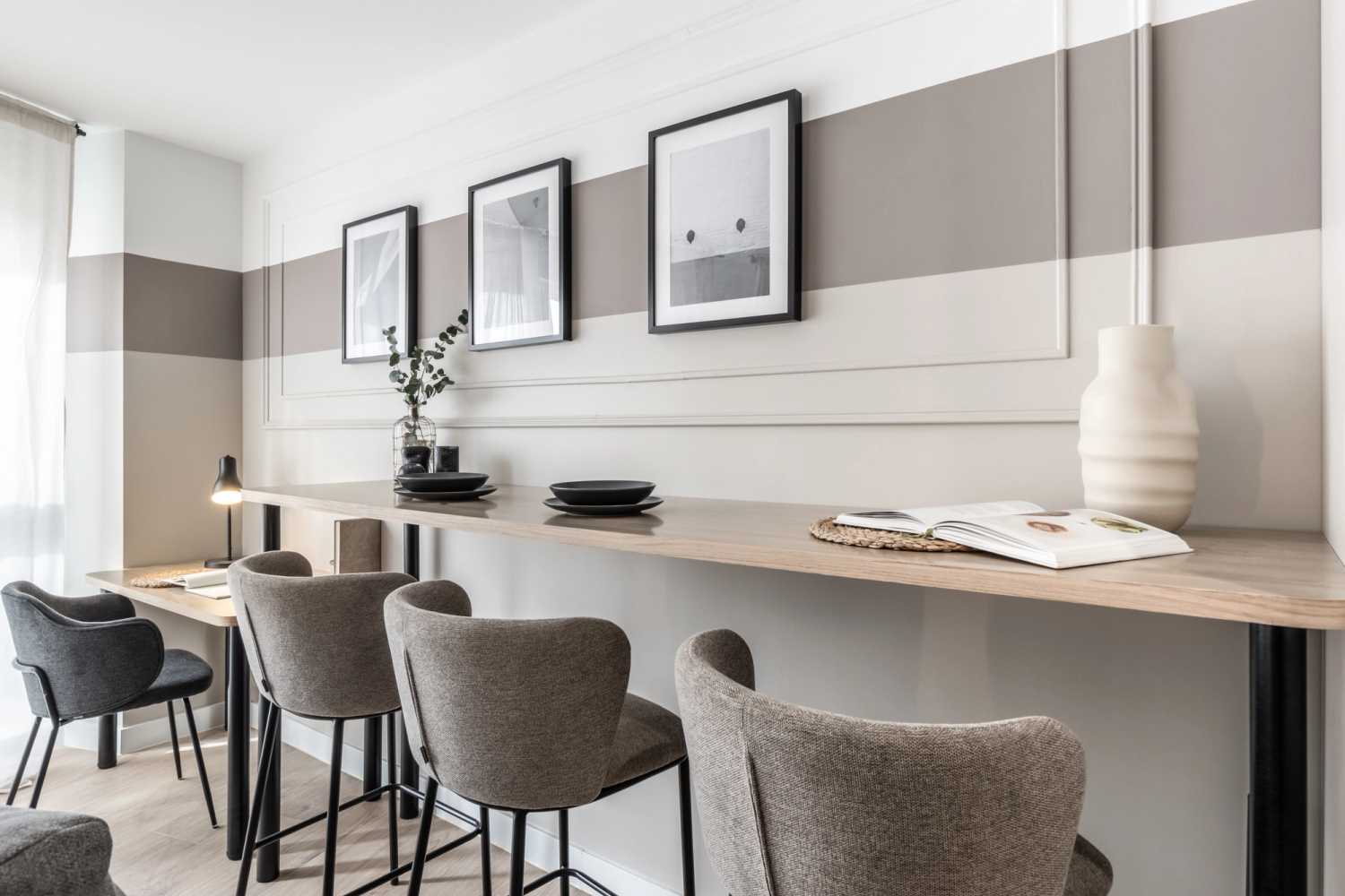 *Nuestro equipo de diseño interno selecciona de forma experta todos los muebles y la decoración de los apartamentos para garantizar el máximo nivel de calidad y comodidad. Como parte del mantenimiento constante de la casa, las mejoras de diseño y la puesta en escena fotográfica, puede haber pequeñas diferencias entre el mobiliario que se ve en las fotos y el que encontrará en el apartamento. Consulte con un agente de ventas para cualquier pregunta o duda.
