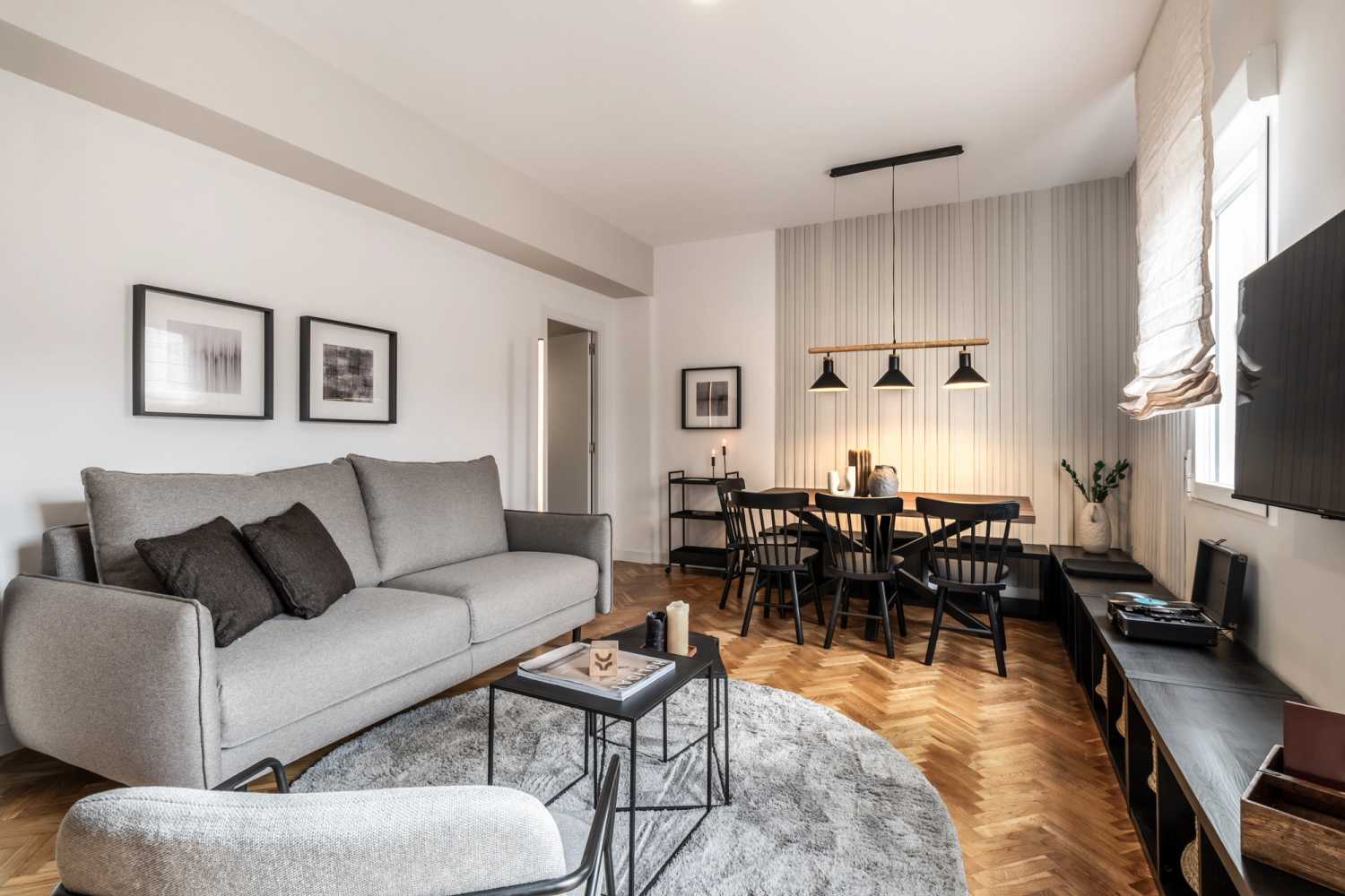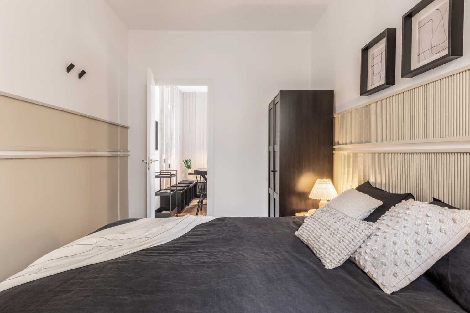 *Nuestro equipo de diseño interno selecciona de forma experta todos los muebles y la decoración de los apartamentos para garantizar el máximo nivel de calidad y comodidad. Como parte del mantenimiento constante de la casa, las mejoras de diseño y la puesta en escena fotográfica, puede haber pequeñas diferencias entre el mobiliario que se ve en las fotos y el que encontrará en el apartamento. Consulte con un agente de ventas para cualquier pregunta o duda.