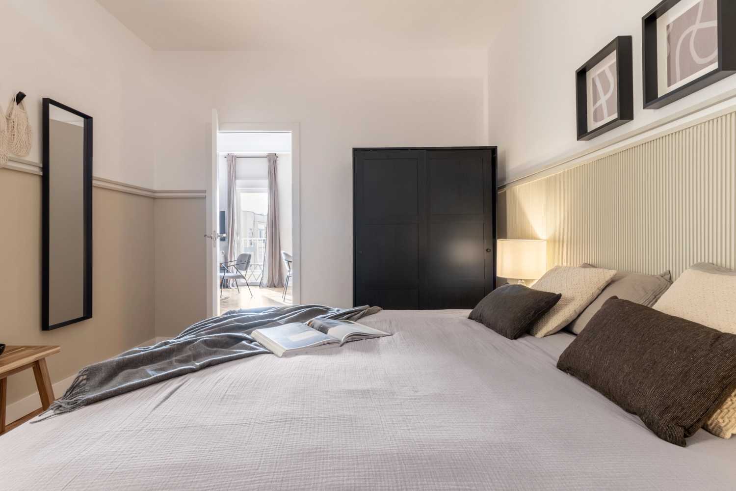 Espectacular piso en O'Donell, con 4 dormitorios y 3 baños. La cocina está equipada con electrodomésticos y menaje de última generación. Las camas están equipadas con ropa de cama suave, ideal para un buen descanso nocturno. El apartamento dispone de 3 cuartos de baño equipados con ducha completa y toallas. El apartamento tiene un balcón de 3 m2. Además, el apartamento está equipado con WiFi de alta velocidad y SmartTV. El apartamento dispone de lavadora, lavavajillas y aire acondicionado para su máximo confort.