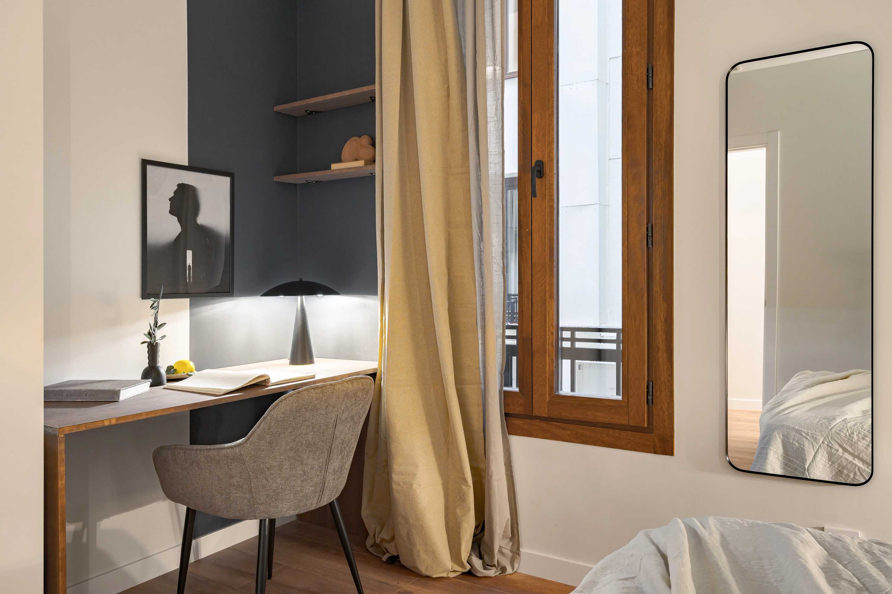 *Nuestro equipo de diseño interno selecciona de forma experta todos los muebles y la decoración de los apartamentos para garantizar el máximo nivel de calidad y comodidad. Como parte del mantenimiento constante de la casa, las mejoras de diseño y la puesta en escena fotográfica, puede haber pequeñas differences entre el mobiliario que se ve en las fotos y el que encontrará en el apartamento. Consulte con un agente de ventas para cualquier pregunta o duda.