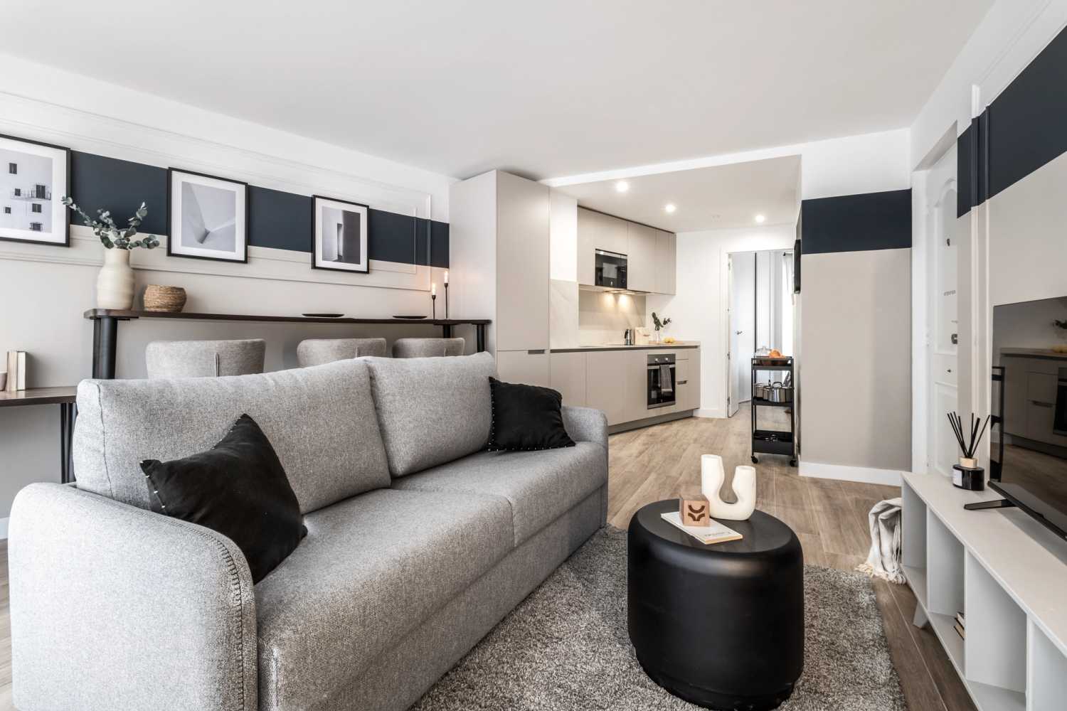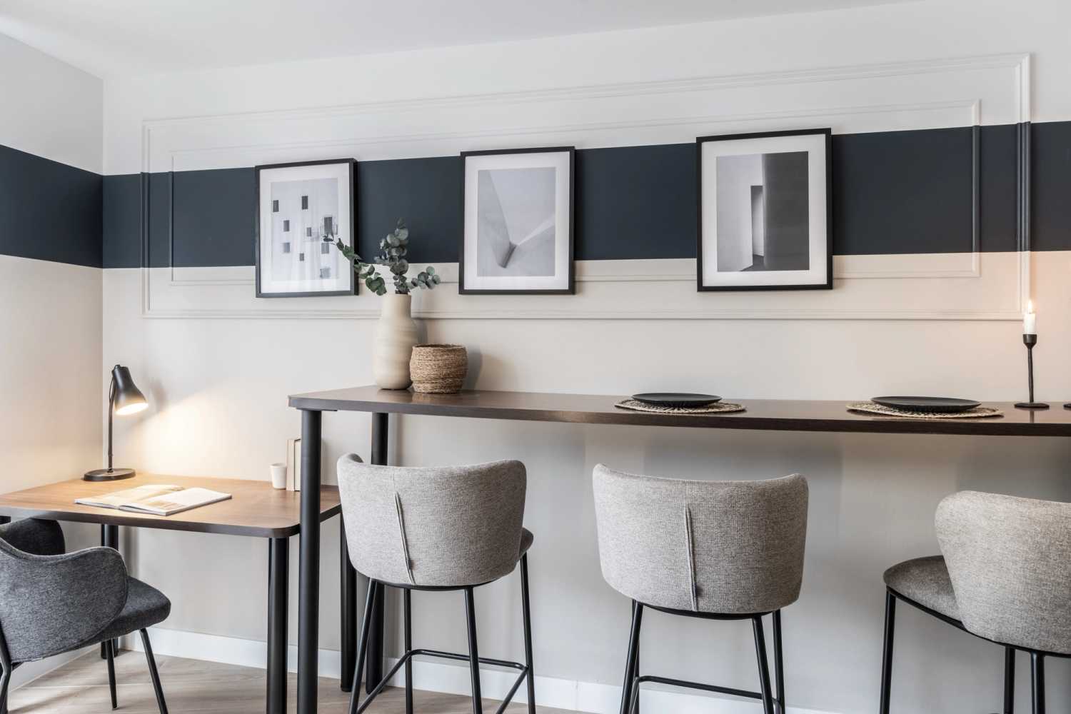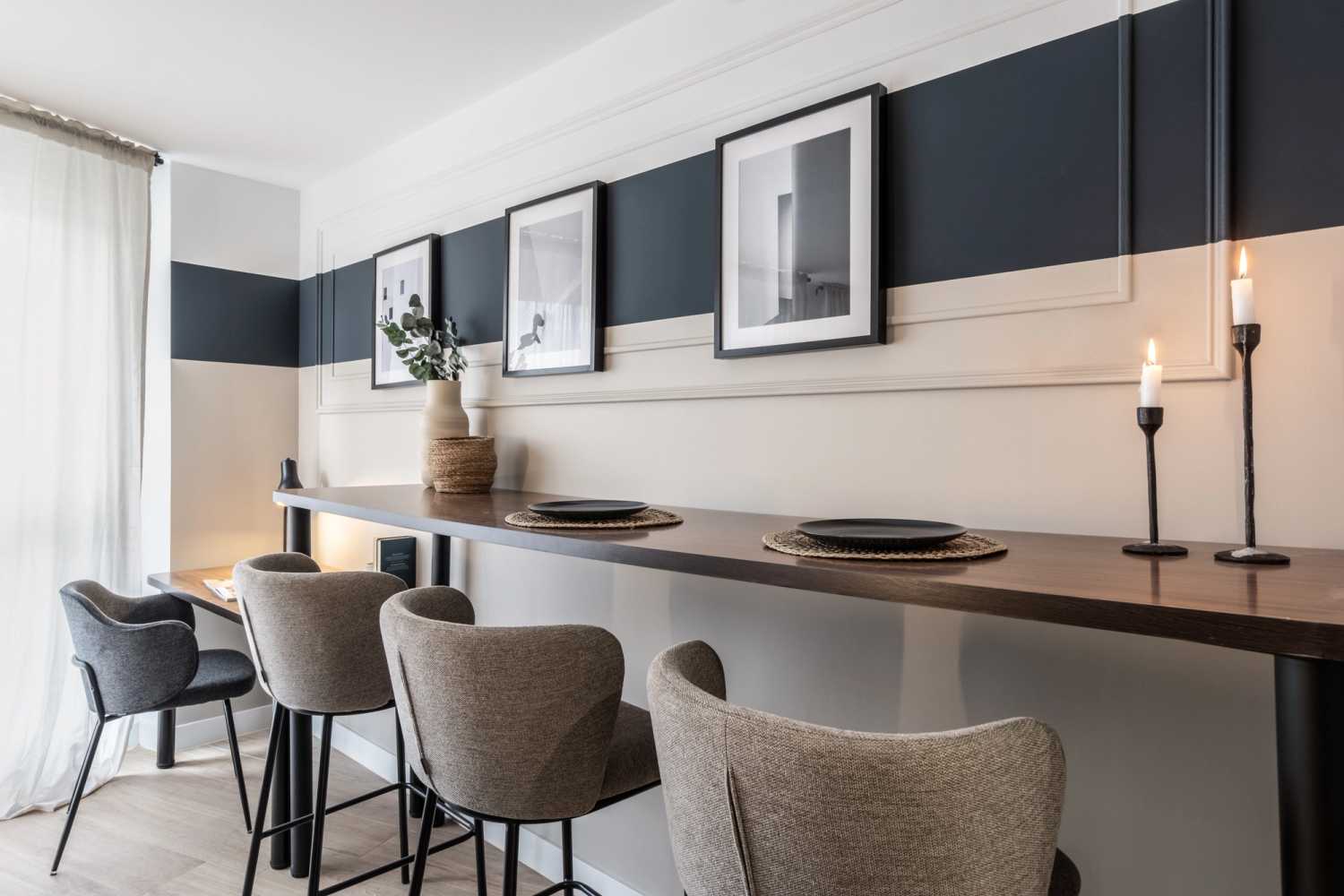 *Nuestro equipo de diseño interno selecciona de forma experta todos los muebles y la decoración de los apartamentos para garantizar el máximo nivel de calidad y comodidad. Como parte del mantenimiento constante de la casa, las mejoras de diseño y la puesta en escena fotográfica, puede haber pequeñas diferencias entre el mobiliario que se ve en las fotos y el que encontrará en el apartamento. Consulte con un agente de ventas para cualquier pregunta o duda.