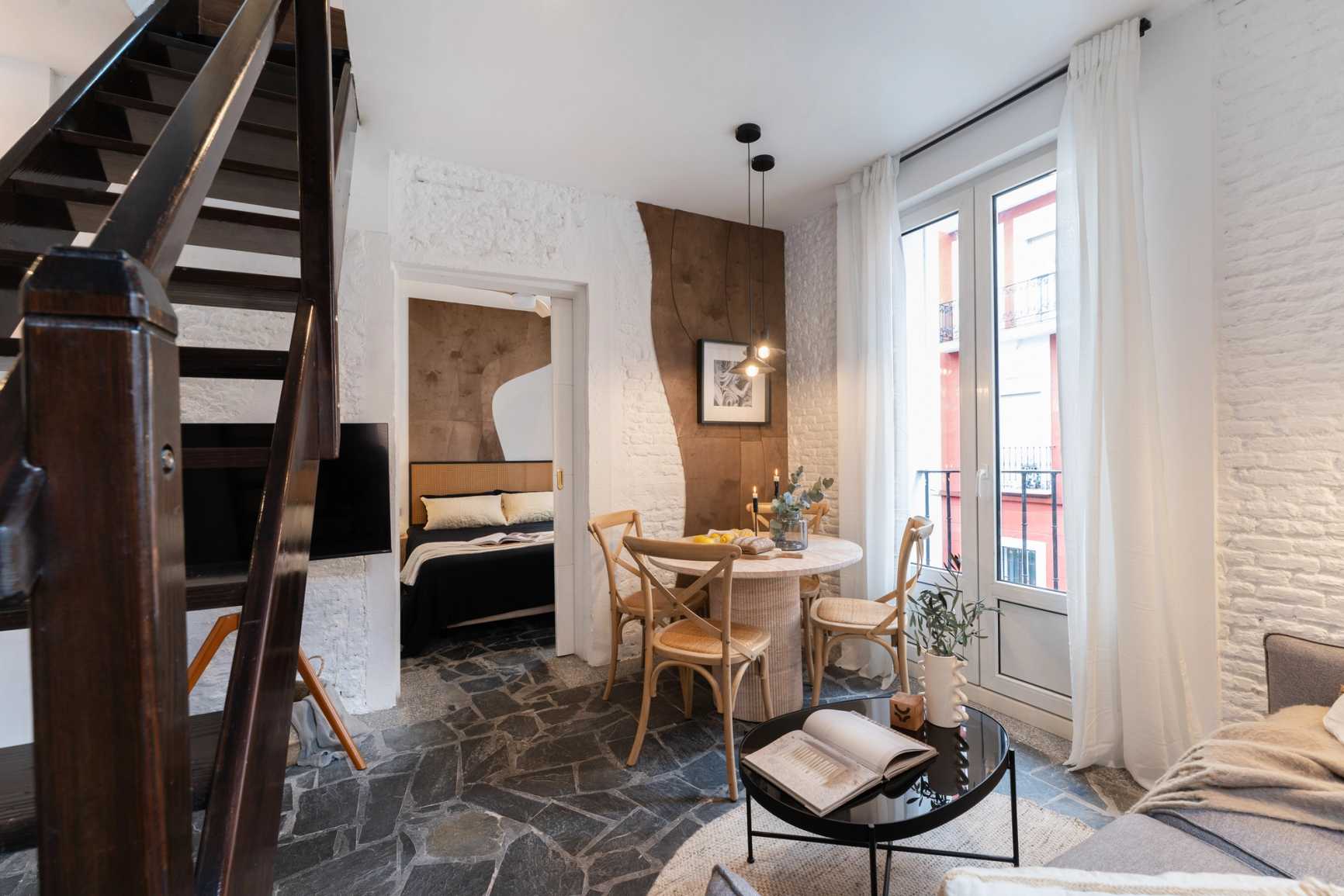 Espectacular apartamento en la calle Artistas, con 1 dormitorio, un despacho, un salón con sofá cama y 1 baño. La cocina está equipada con electrodomésticos y menaje. Las camas están equipadas con ropa de cama suave, ideal para un buen descanso nocturno. El apartamento dispone de 1 baño equipado con ducha completa y toallas. Además, el apartamento está equipado con WiFi de alta velocidad y SmartTV.