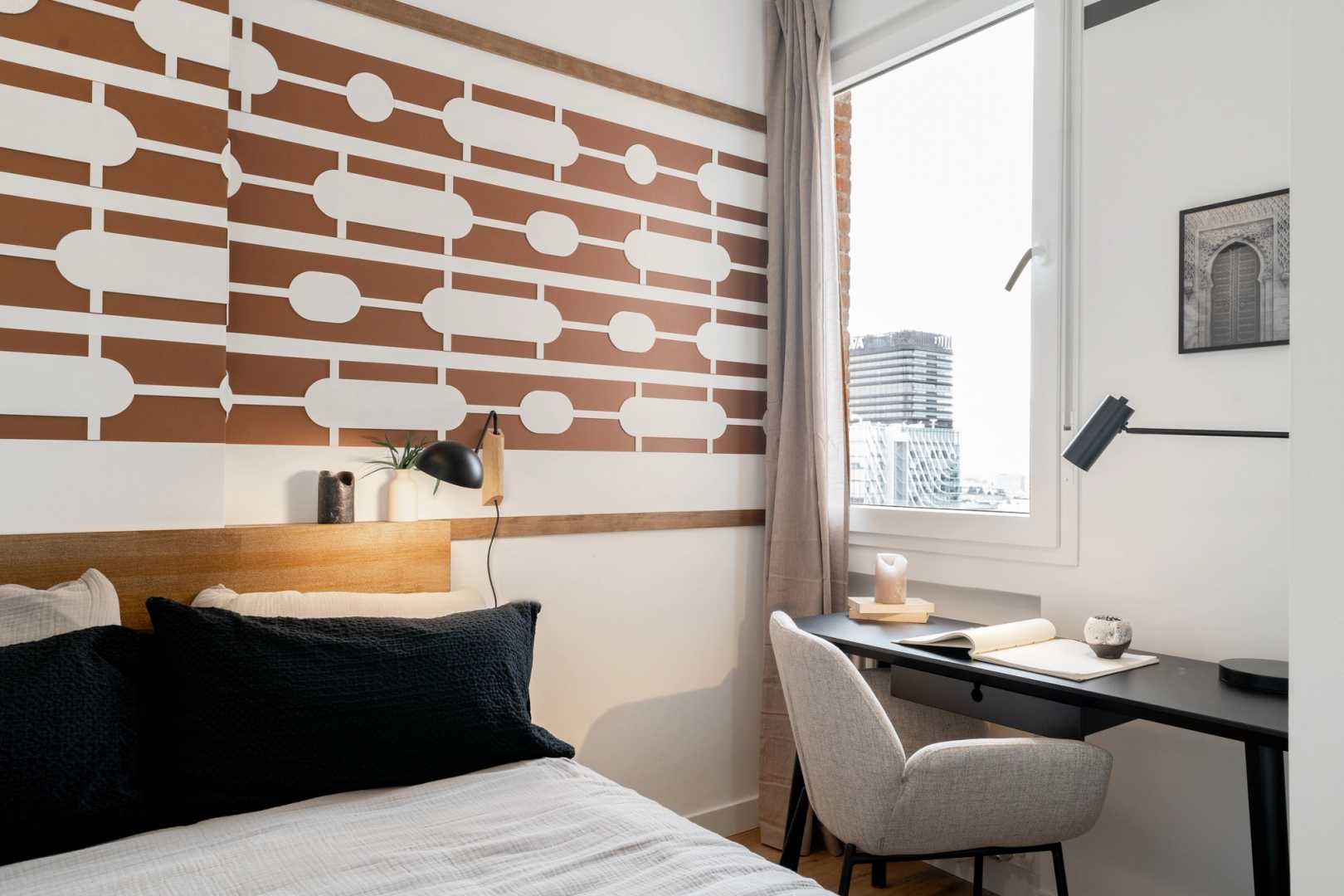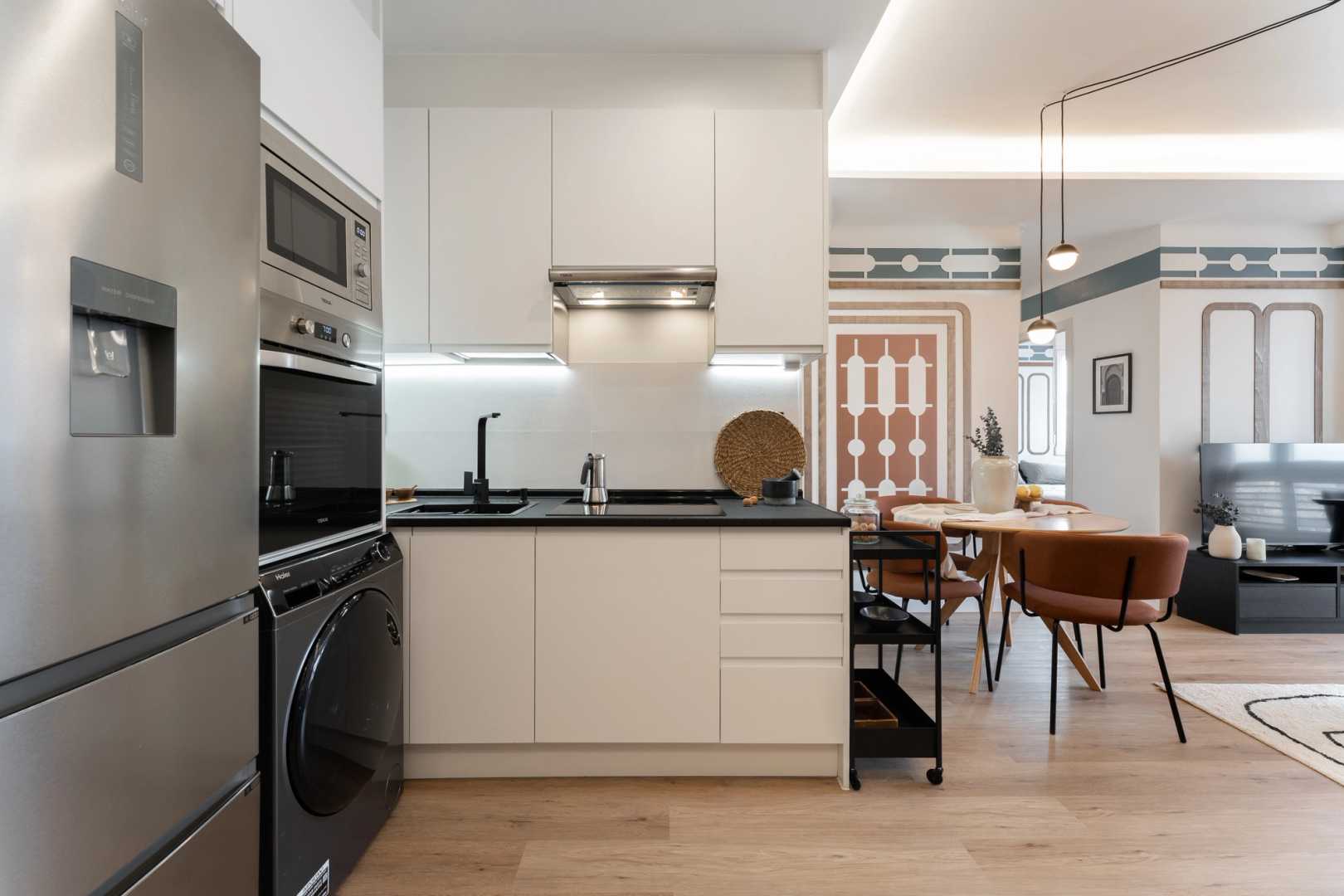 *Nuestro equipo de diseño interno selecciona de forma experta todos los muebles y la decoración de los apartamentos para garantizar el máximo nivel de calidad y comodidad. Como parte del mantenimiento constante de la casa, las mejoras de diseño y la puesta en escena fotográfica, puede haber pequeñas diferencias entre el mobiliario que se ve en las fotos y el que encontrará en el apartamento. Consulte con un agente de ventas para cualquier pregunta o duda.