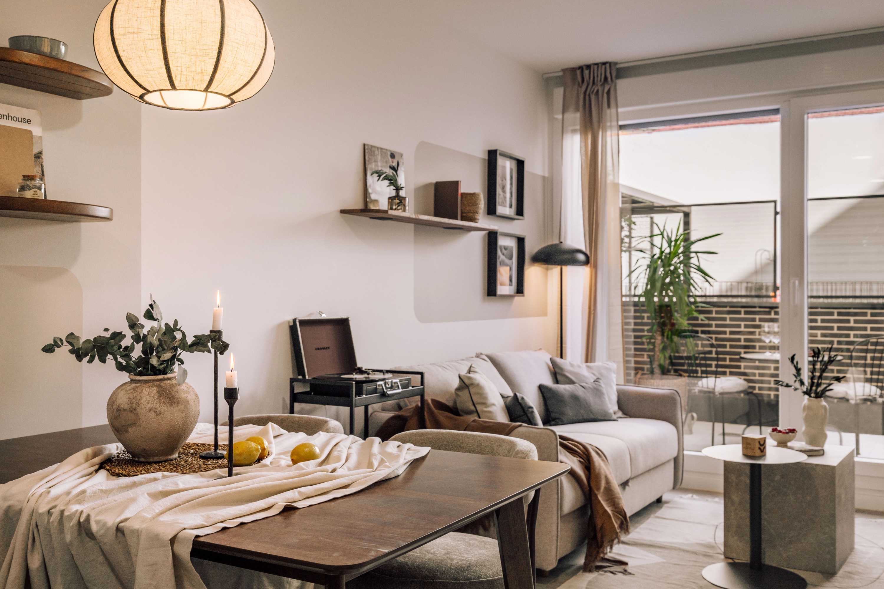 *Nuestro equipo de diseño interno selecciona cuidadosamente todos los muebles y la decoración de los apartamentos para garantizar el máximo nivel de calidad y comodidad. Como parte del mantenimiento constante de las viviendas, las mejoras de diseño y la puesta en escena fotográfica, puede haber pequeñas diferencias entre el mobiliario que se ve en las fotos y el que se encuentra en el apartamento. Si tiene alguna pregunta o duda, consulte con un agente de ventas.