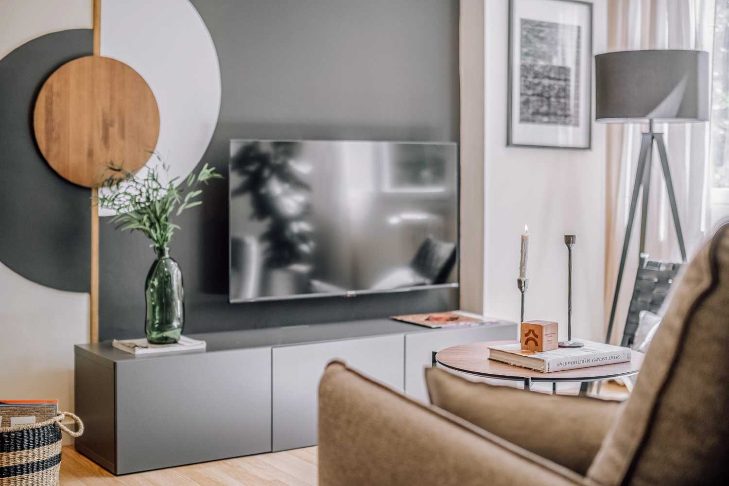 *Nuestro equipo de diseño interno selecciona de forma experta todos los muebles y la decoración de los apartamentos para garantizar el máximo nivel de calidad y comodidad. Como parte del mantenimiento constante de la casa, las mejoras de diseño y la puesta en escena fotográfica, puede haber pequeñas diferencias entre el mobiliario que se ve en las fotos y el que encontrará en el apartamento. Consulte con un agente de ventas para cualquier pregunta o duda.